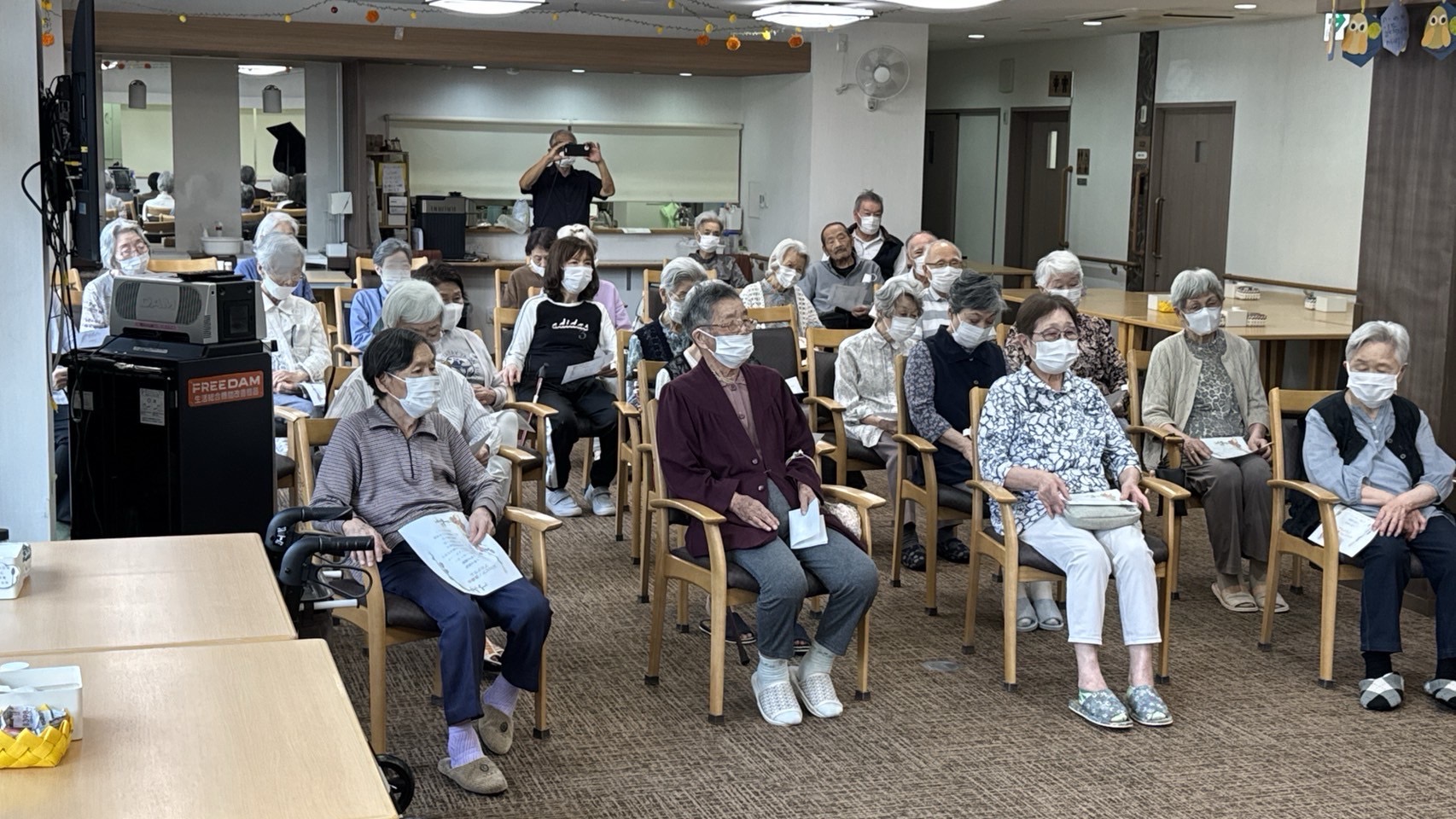 ボランティアの方によるピアノ演奏会です。 入居者様よりリクエストのあった曲を弾いてくださいました。「とても素敵な演奏で感動しました。また聞きたい」と大好評でした。