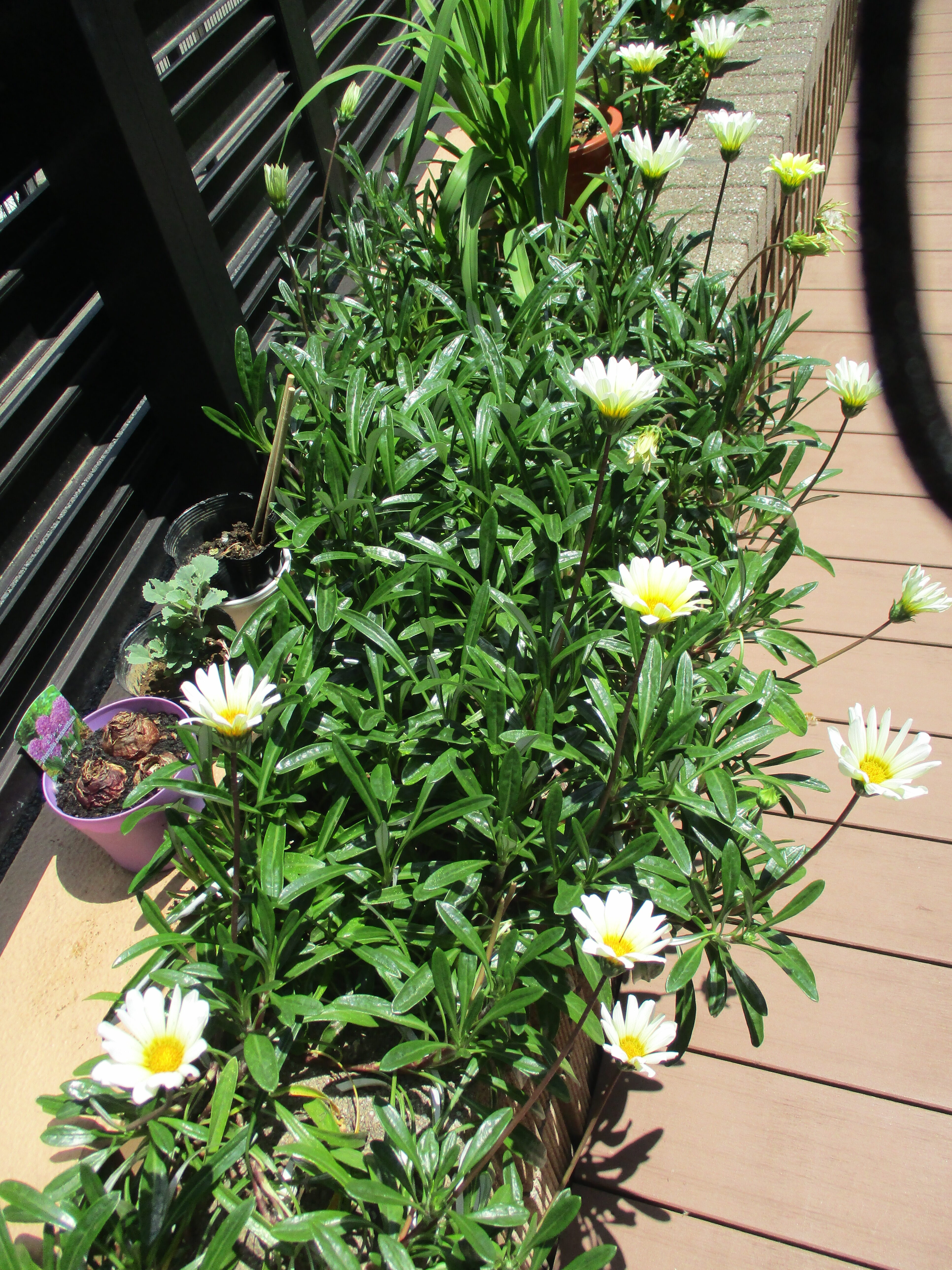 壱番館のテラスの花壇にタチアオイの花が立派に咲きました。蕾がたくさんついているのでまだまだ楽しませてくれそうです♪ 他にもアマリリス、ゼラニウム、ガザニアなどたくさんの花が咲いています。ガザニアはご入居者が100円で購入し植えたところ増え咲きました