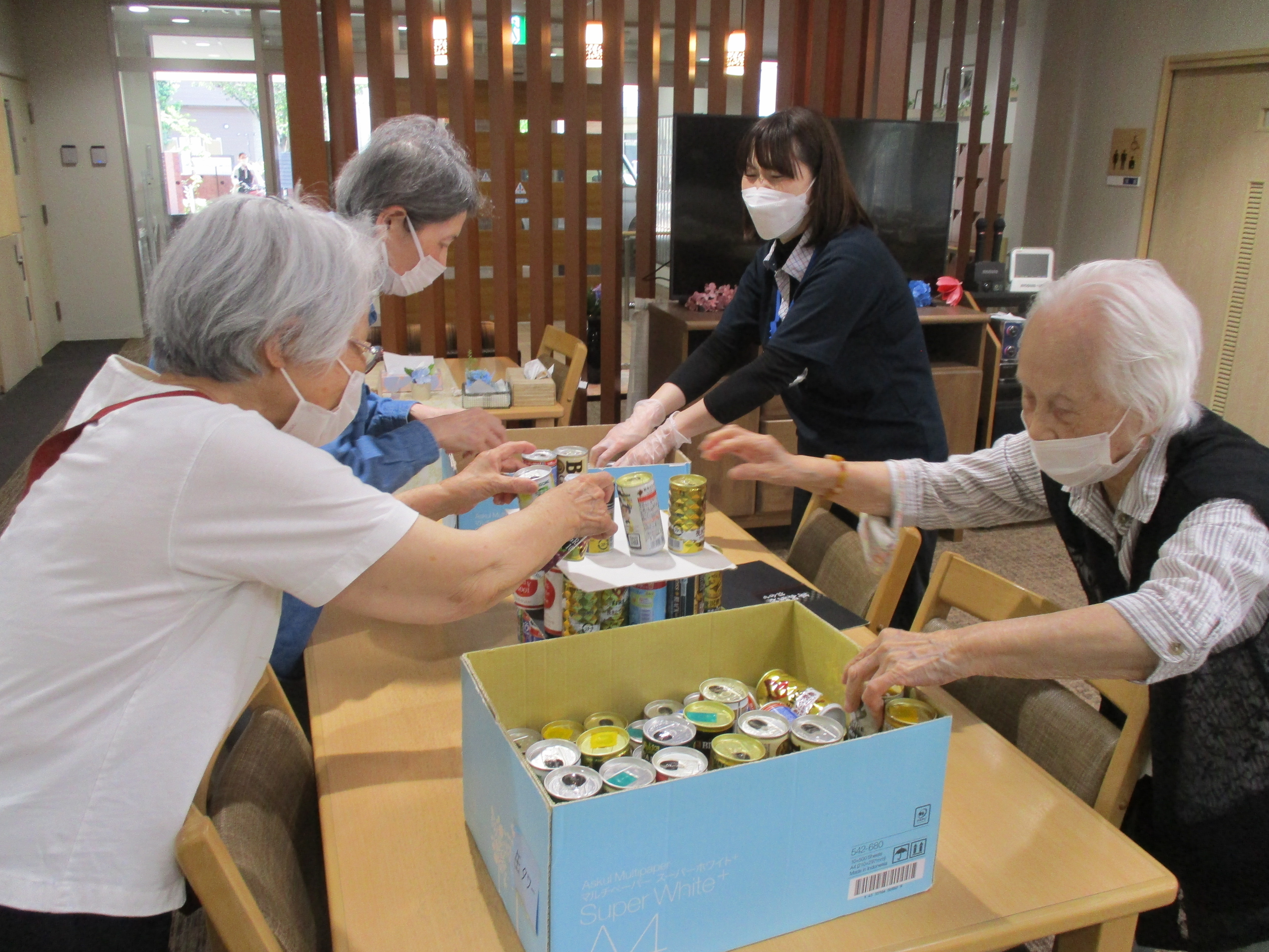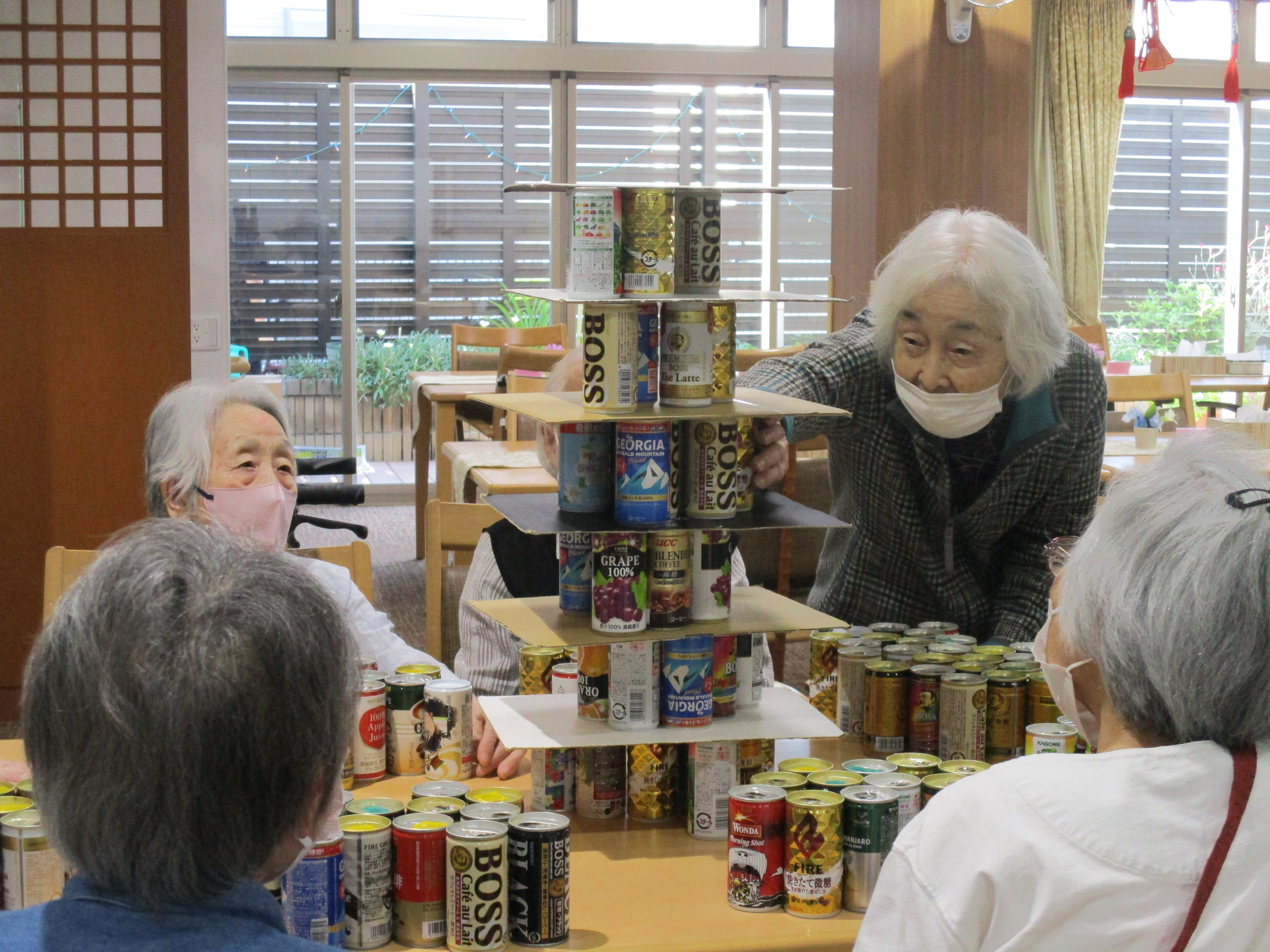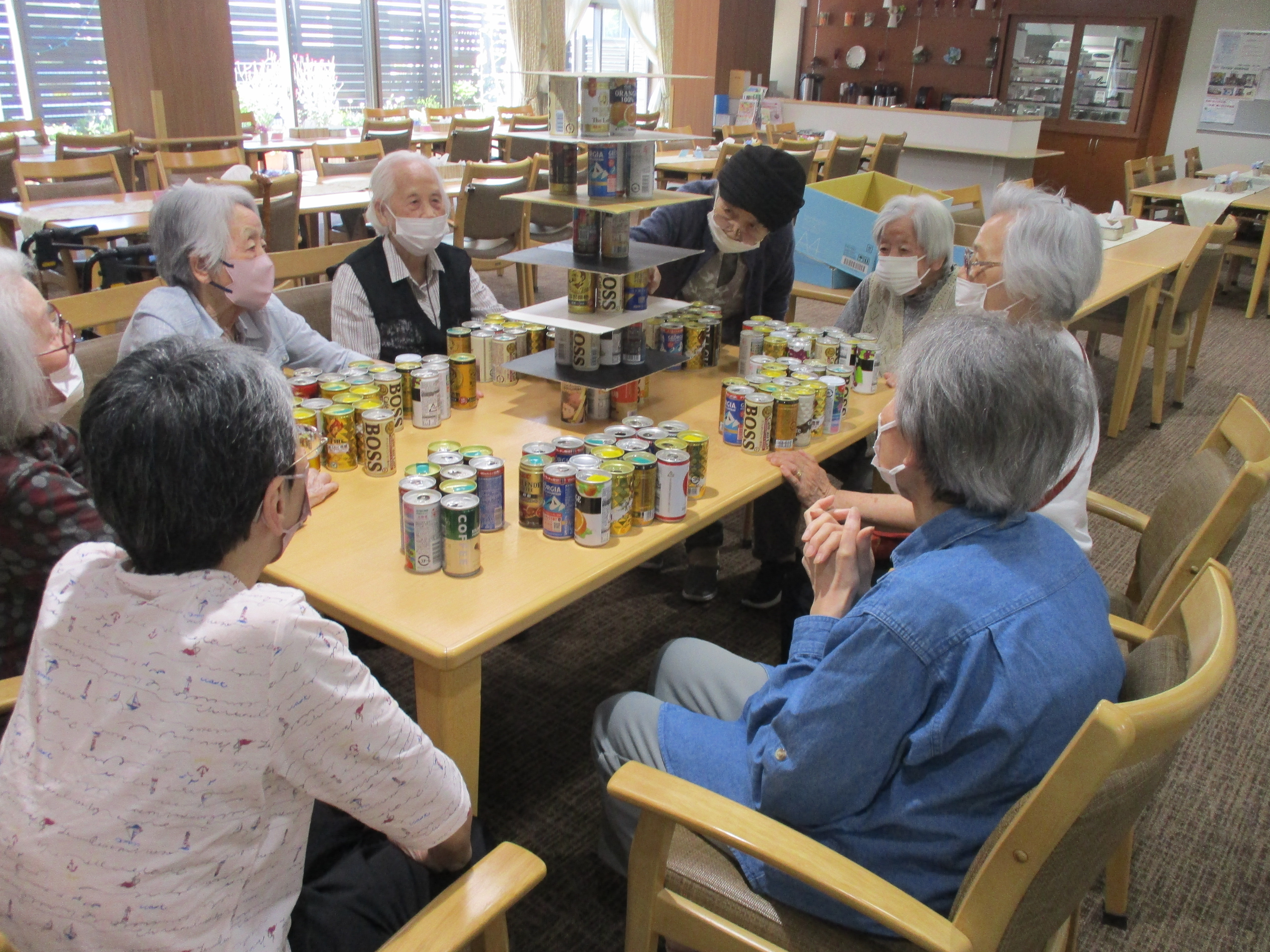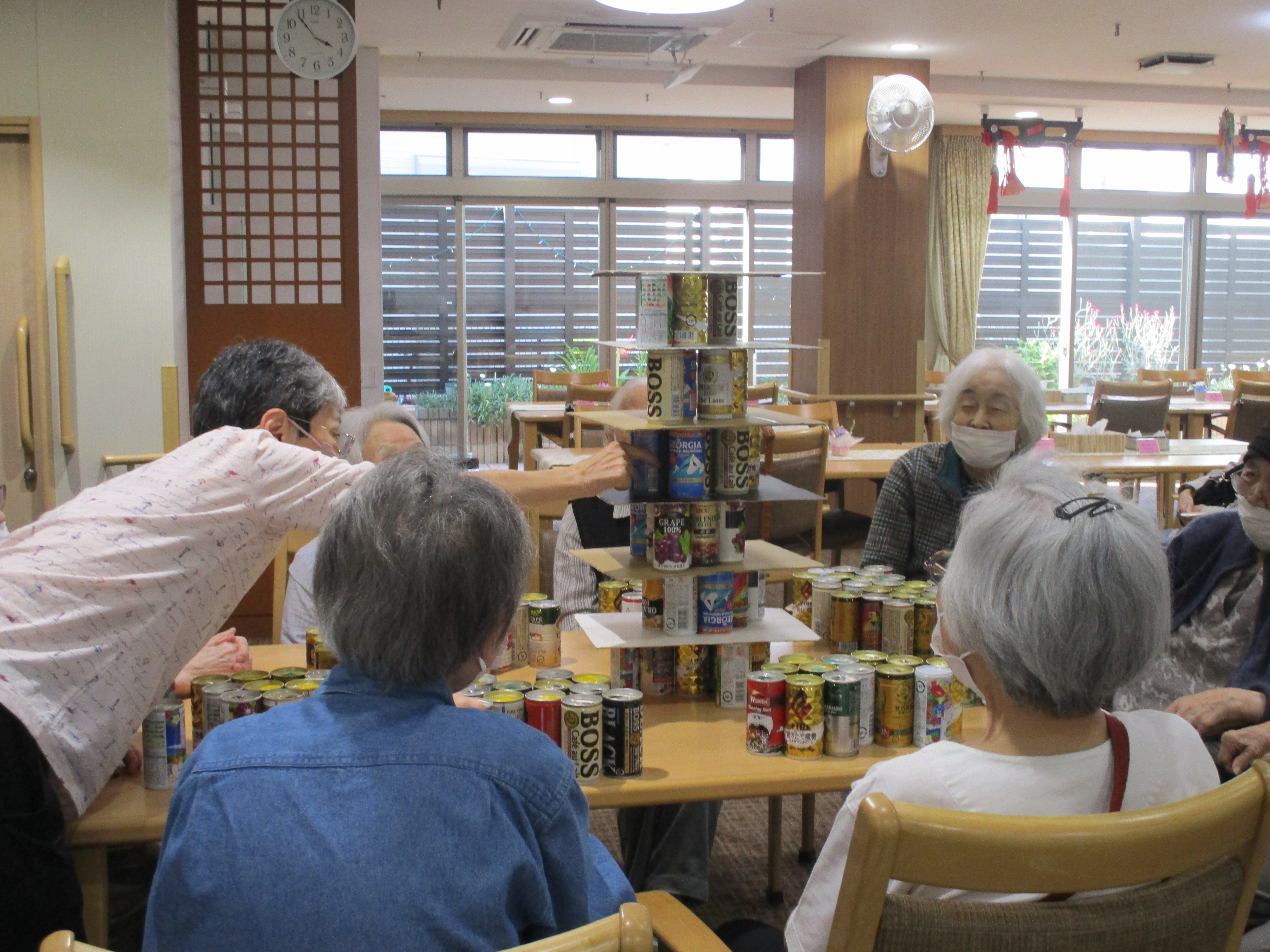 今日は缶タワーの日でした。 久々に参加者9名が集まり盛り上がりました。 缶タワーが倒れた時は物凄い缶の音と「わー!!」と思わず出てしまう皆様の大きな声が迫力満点です。 人数が多いほど迫力があり楽しいです♪