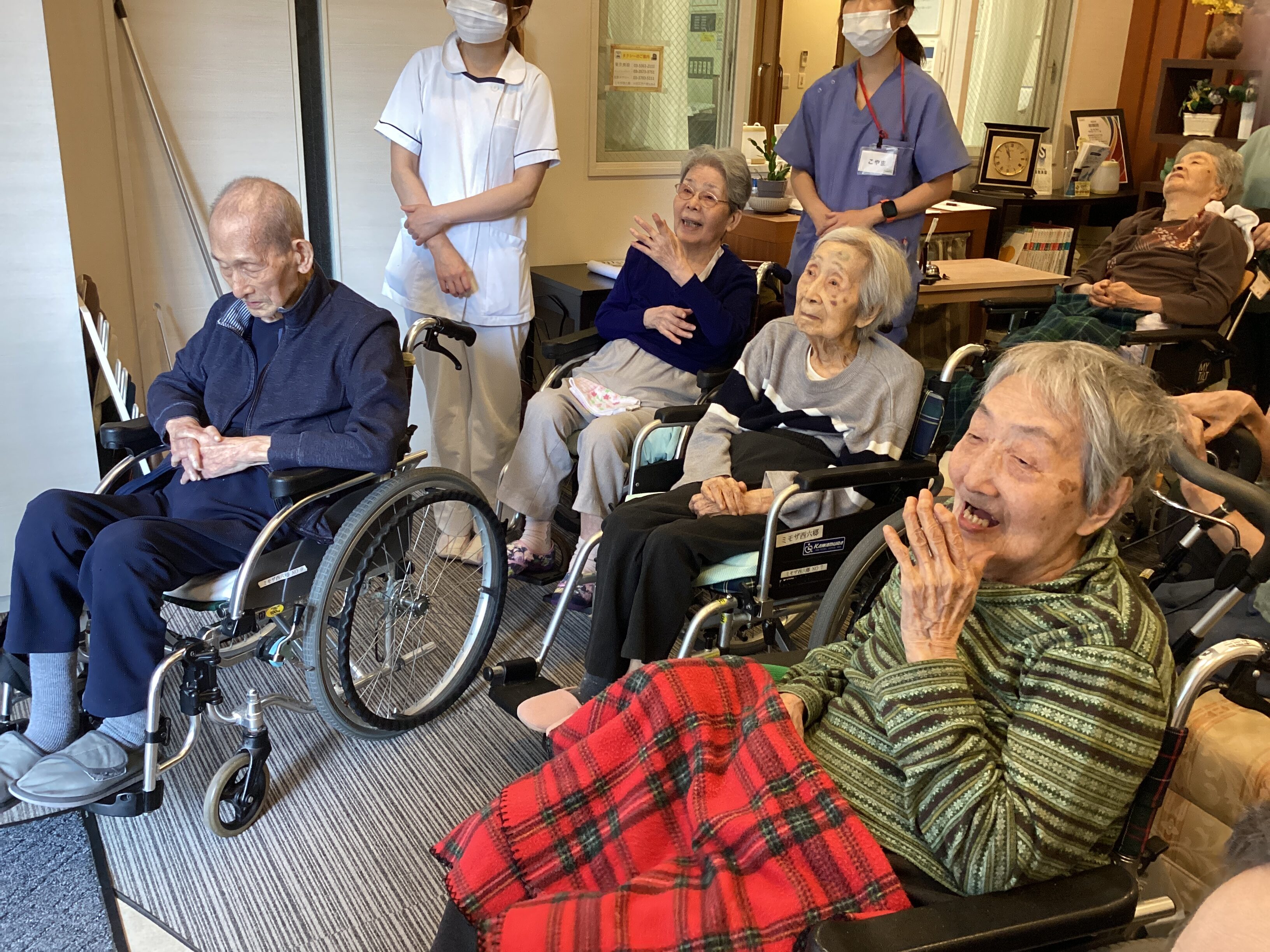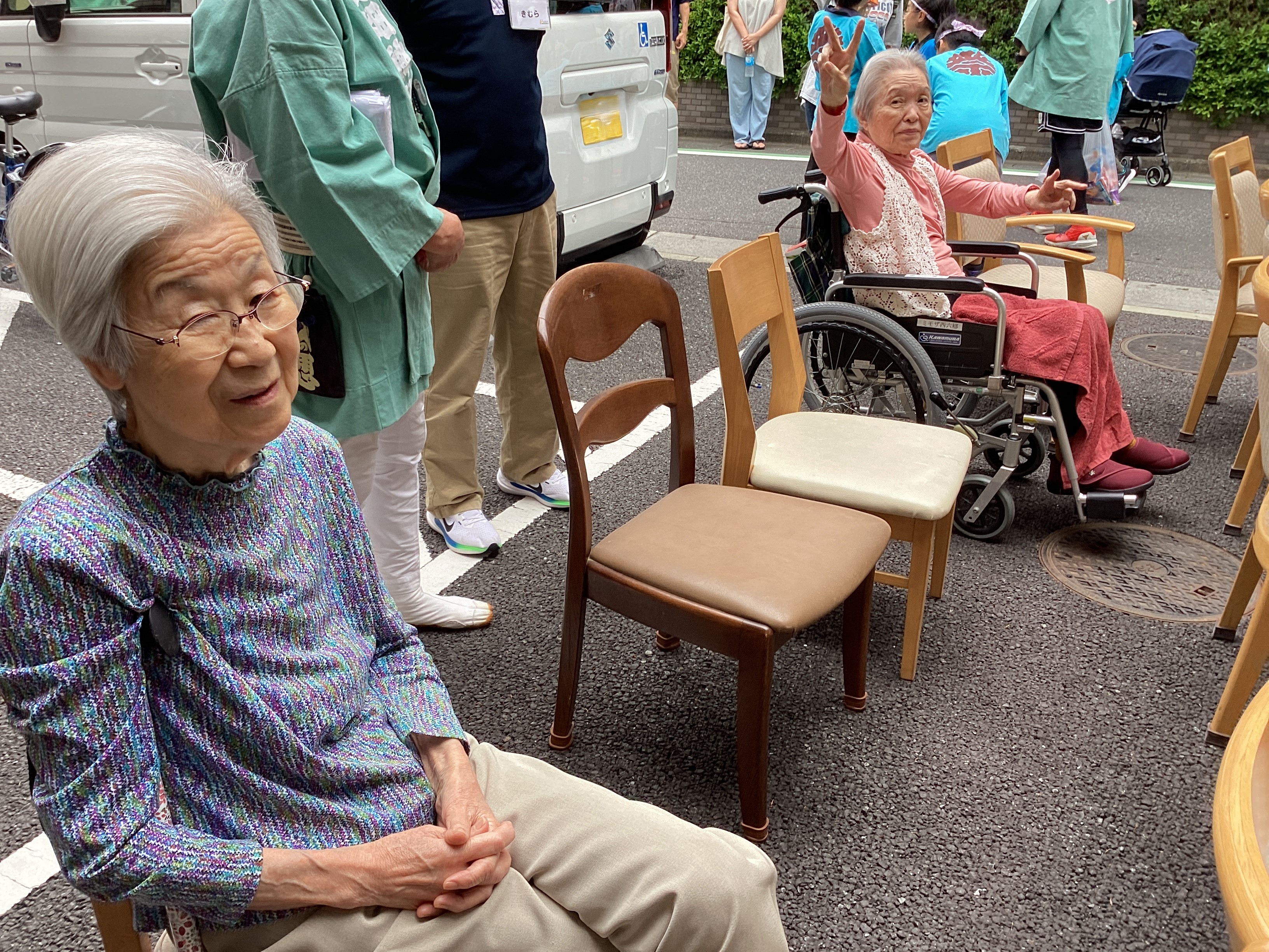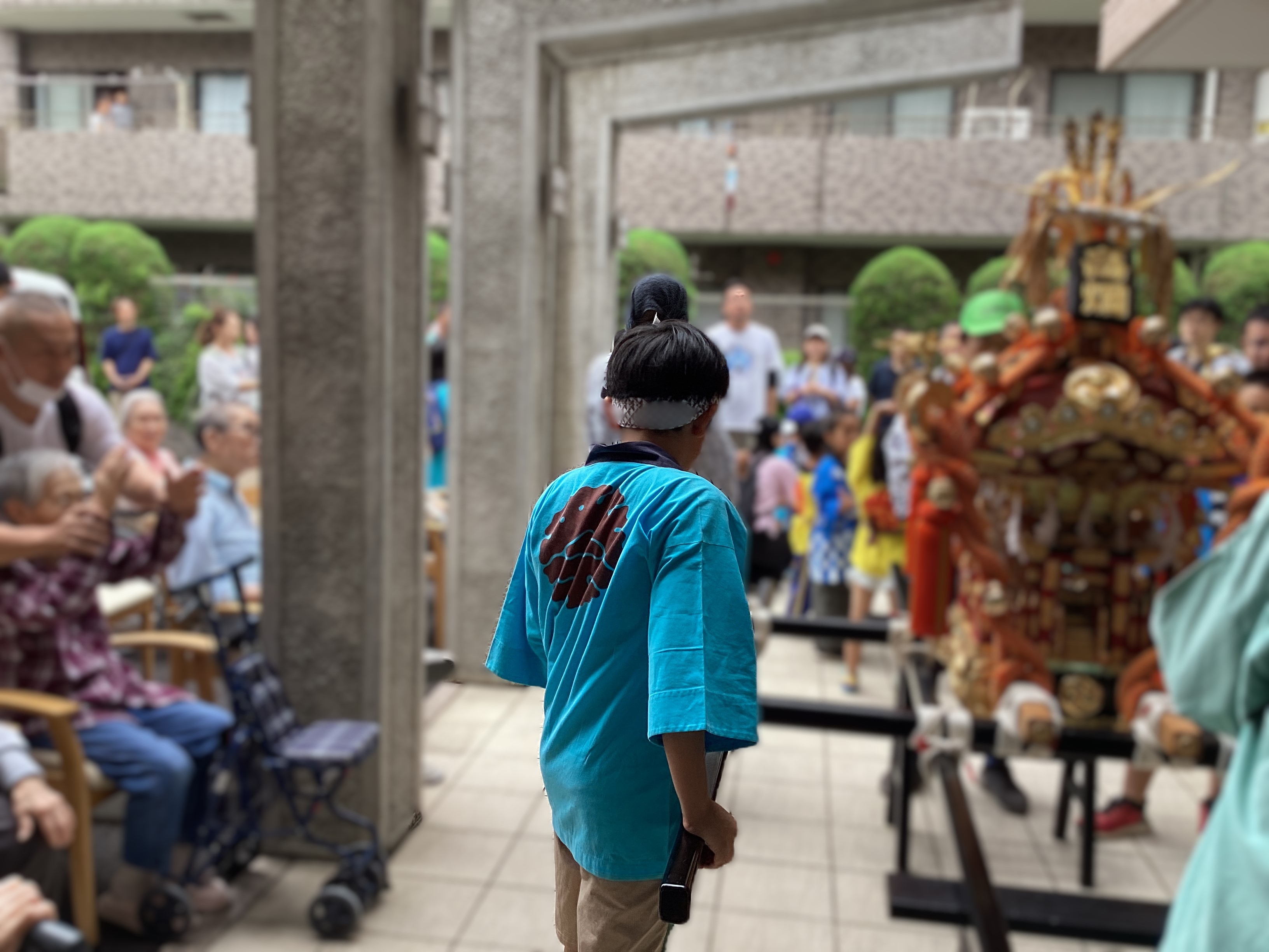 今日は六郷神社のお神輿巡行でした!施設の玄関先までお神輿と子供神輿が来てくれました!神輿の登場に皆さん目を輝かせて喜ばれていました!丁度面会に来られていたご家族と楽しそうに見ていたり、子供たちの元気な声に皆さん目いっぱい元気をもらっていました!