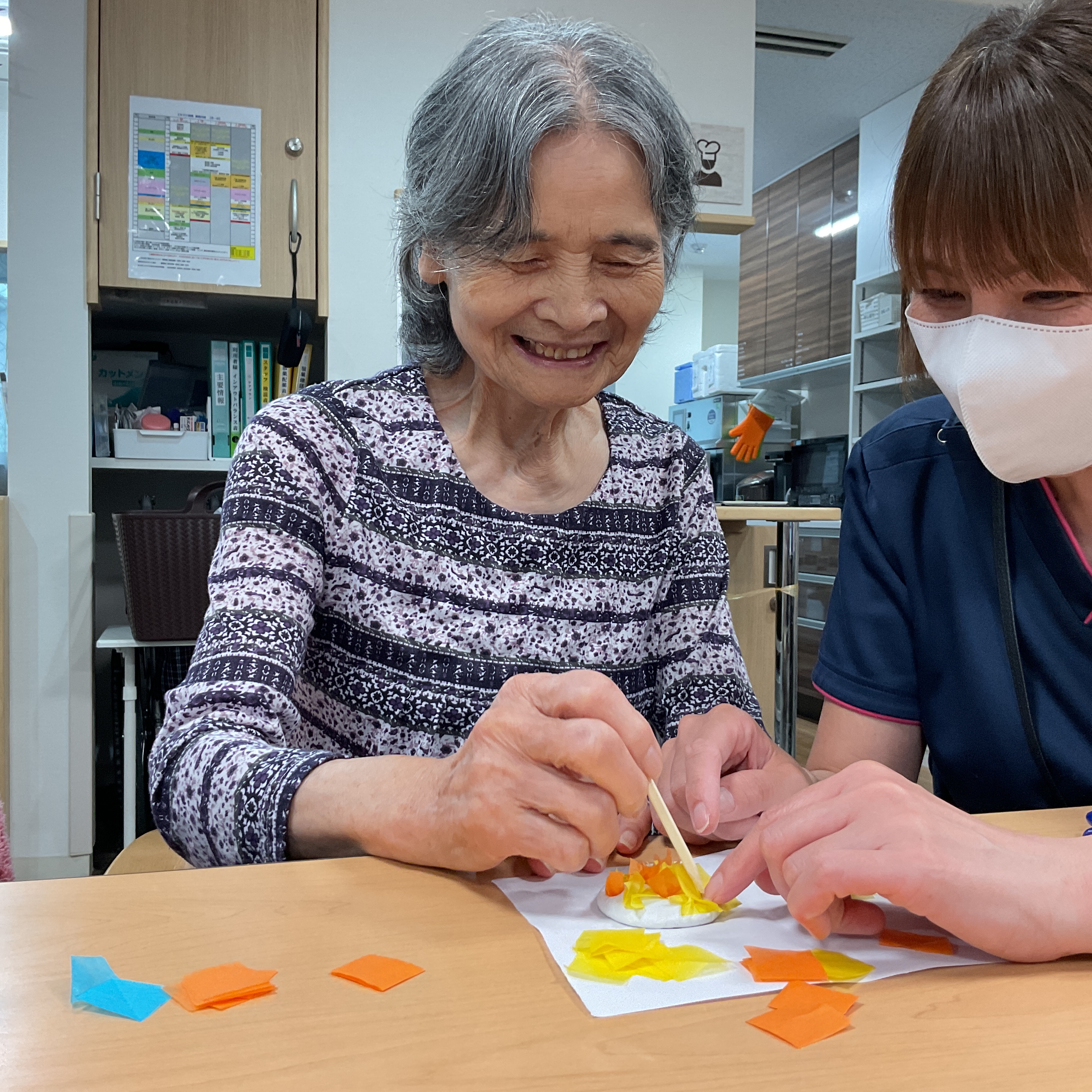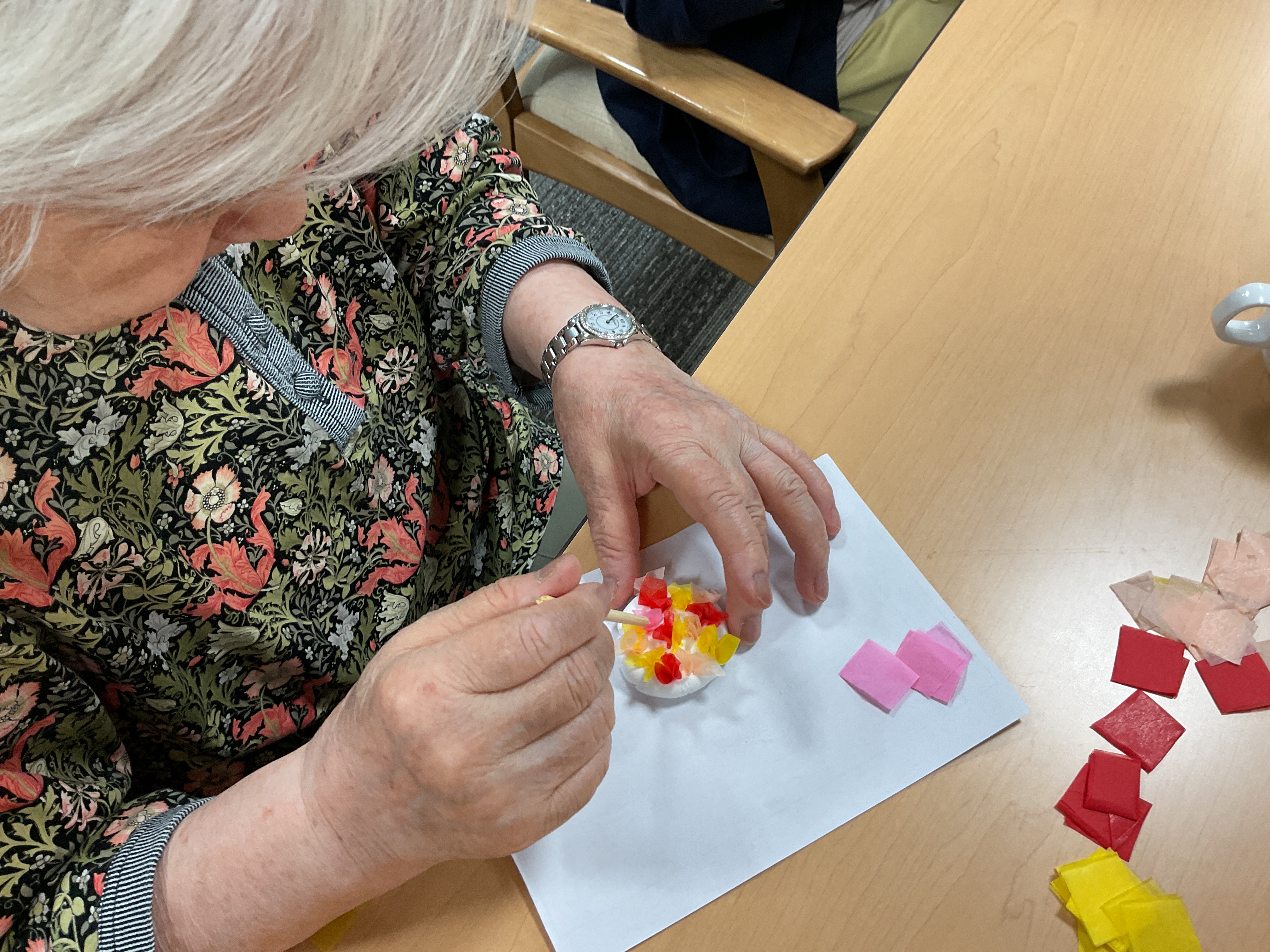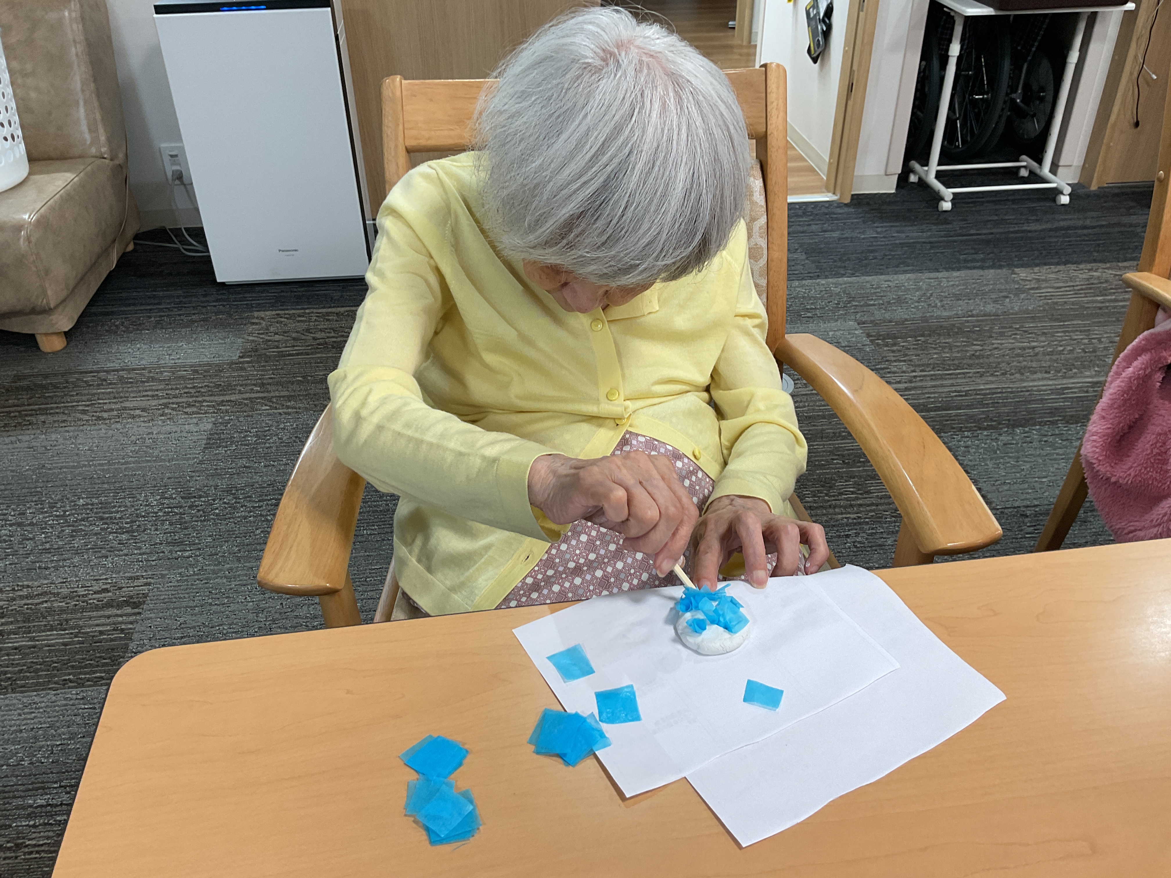 最近いろんな場所で紫陽花を見かけますね。本当に綺麗です!今日こちらで製作した紫陽花はお花紙を使いました。小さく四角に切って、丸めた紙粘土に棒で優しく挿していきます。力加減が難しいですが皆様上手に作業されてました!梅雨でも気分は明るく晴れやかに🌼