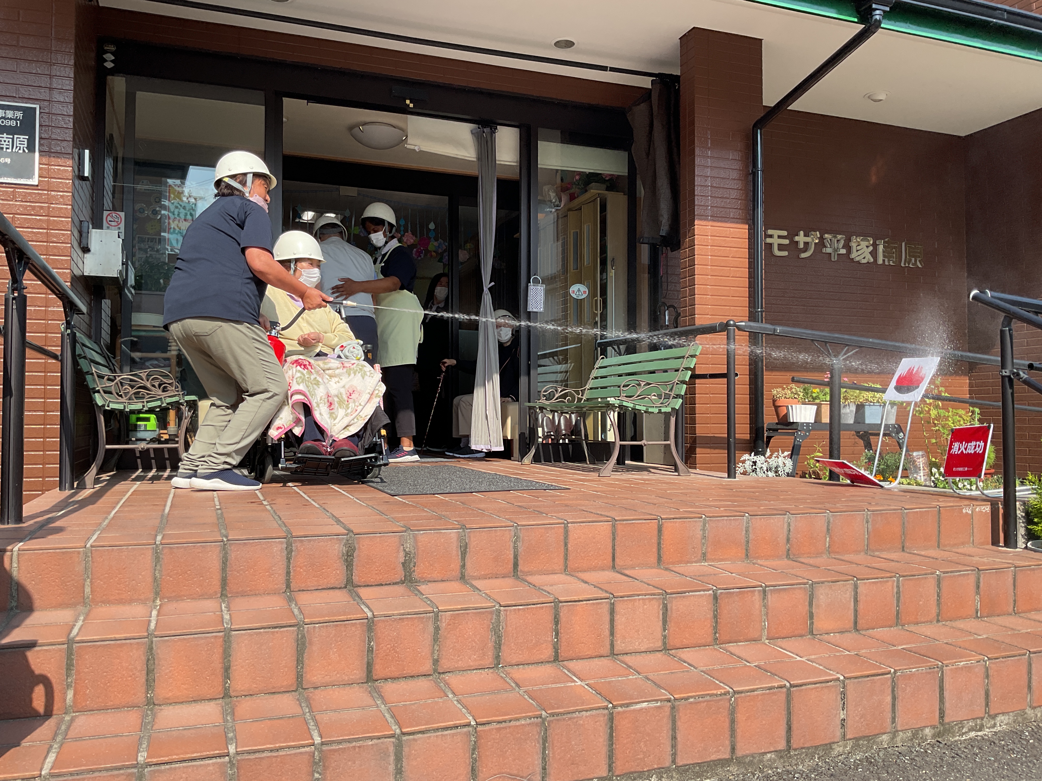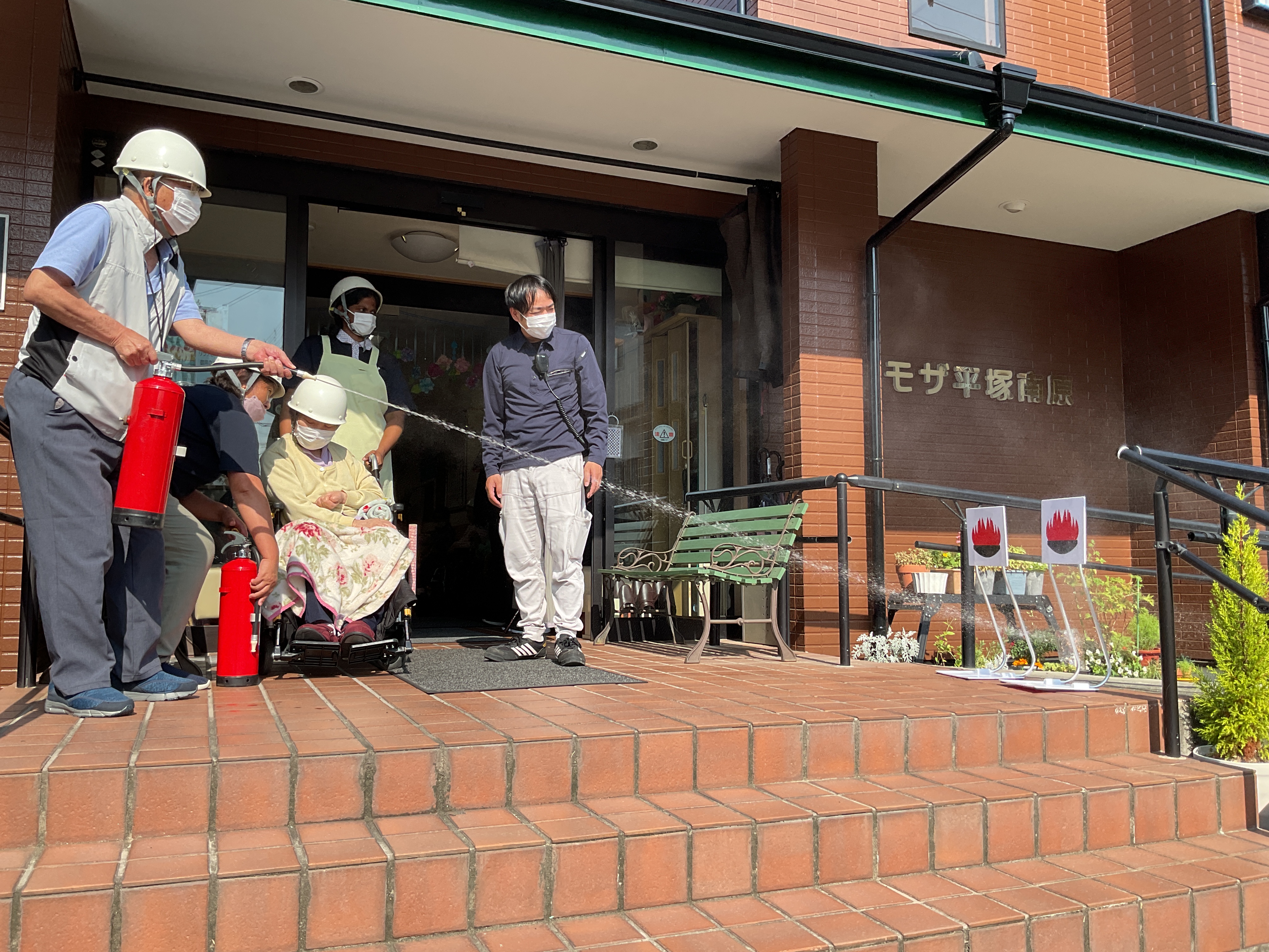 避難訓練と消火訓練をしました 水消火器を使用しての消火訓練 おっかなびっくりで消火器を持つ手が的外れになって訓練なのに笑っちゃたり。。 初めて体験の利用者さんもスタッフも暑い中お疲れ様でした。