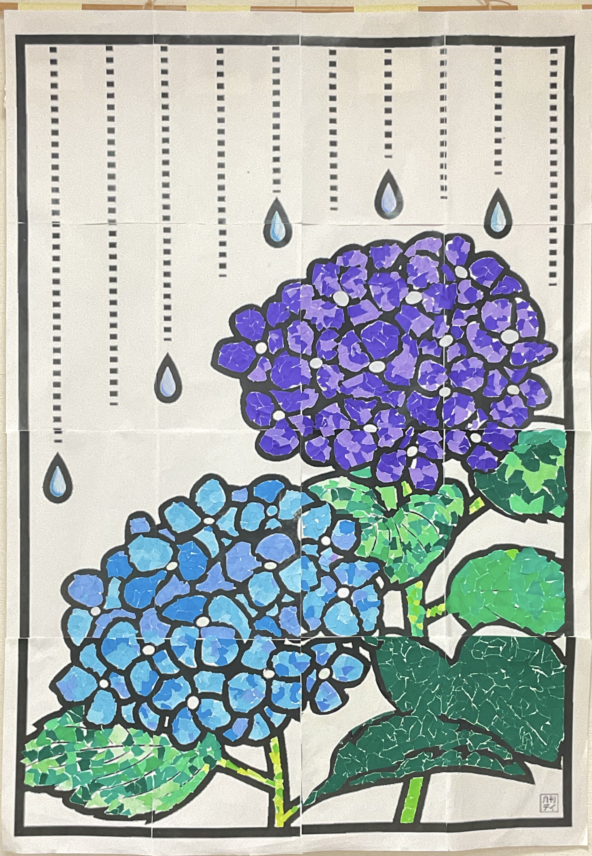今月の飾りは紫陽花です♪皆様の頑張りで素敵に仕上がりました♫