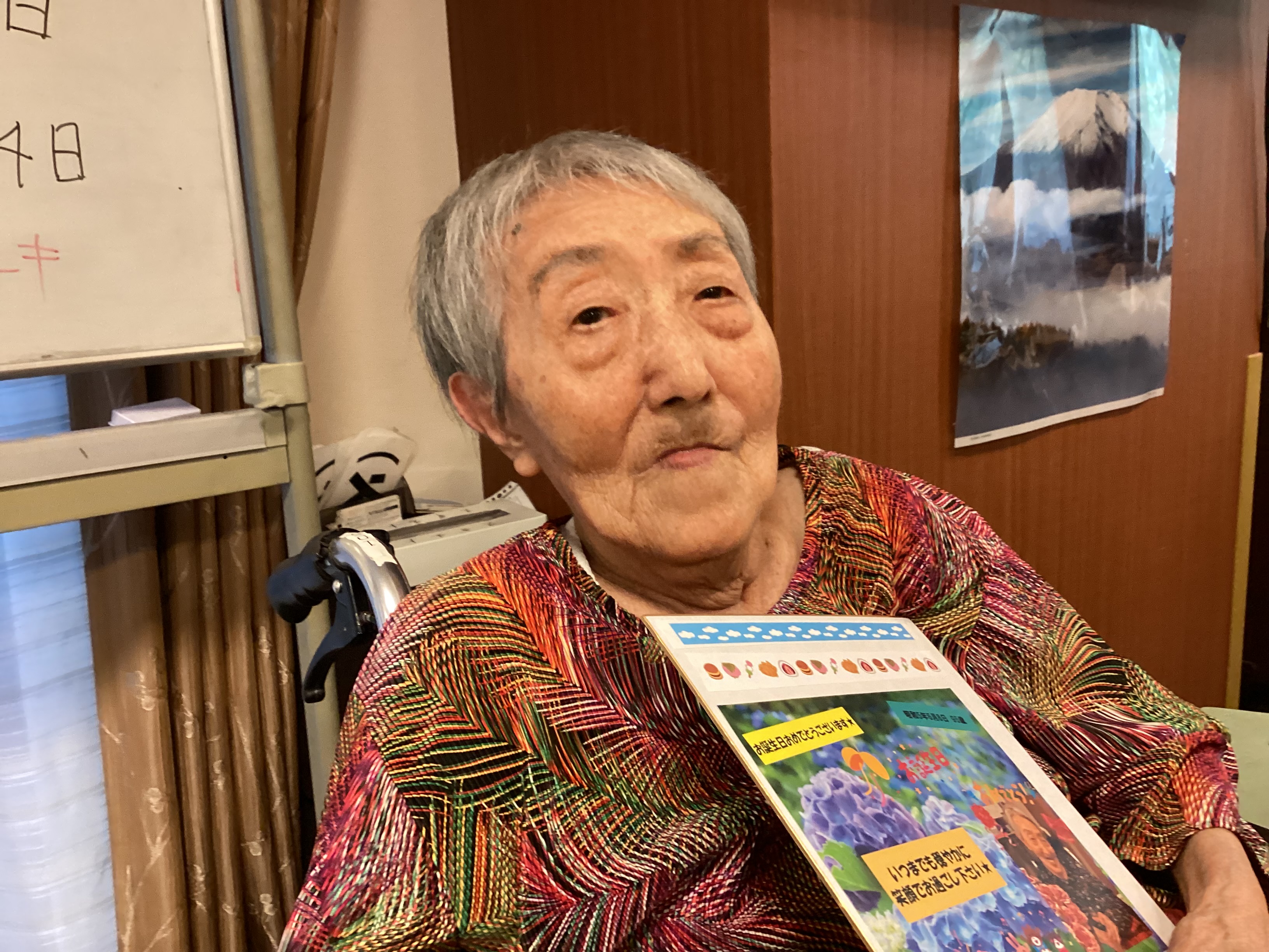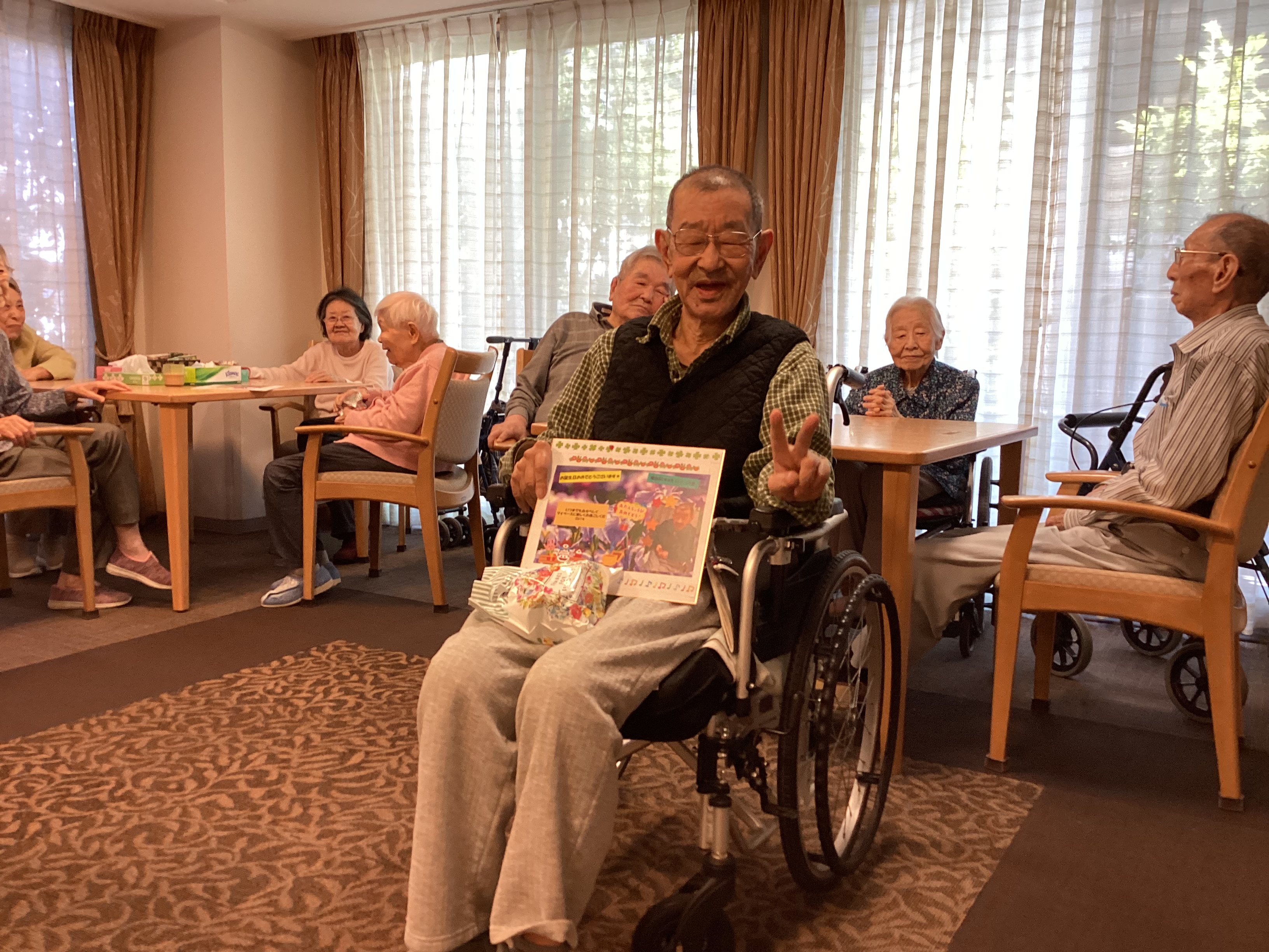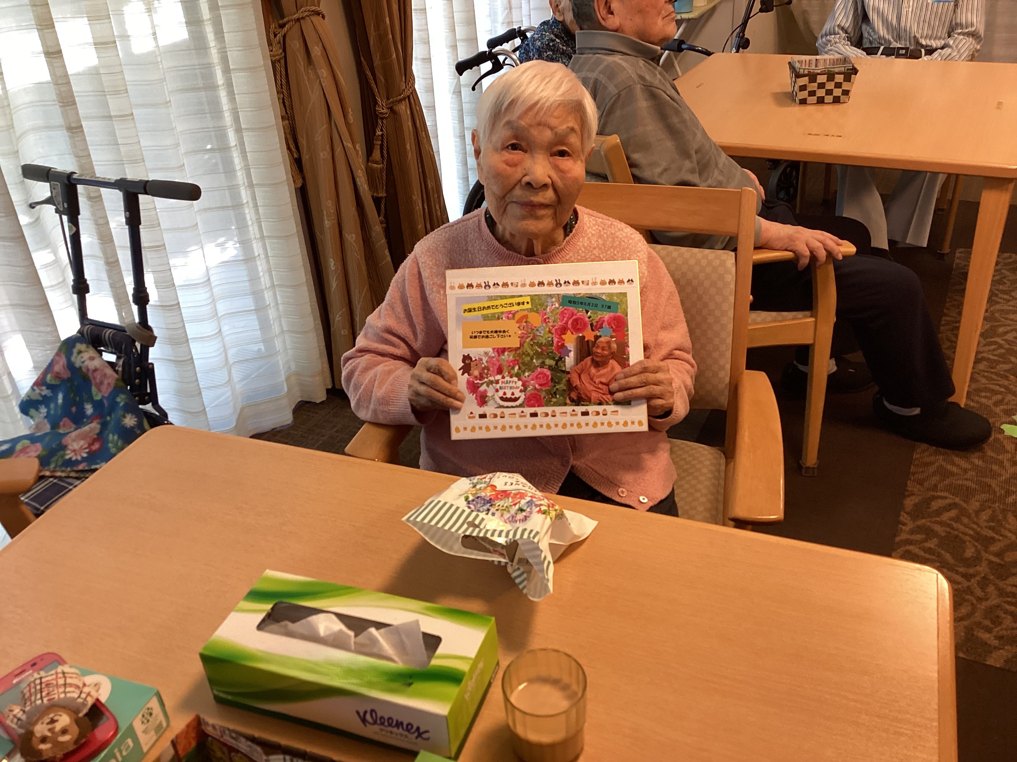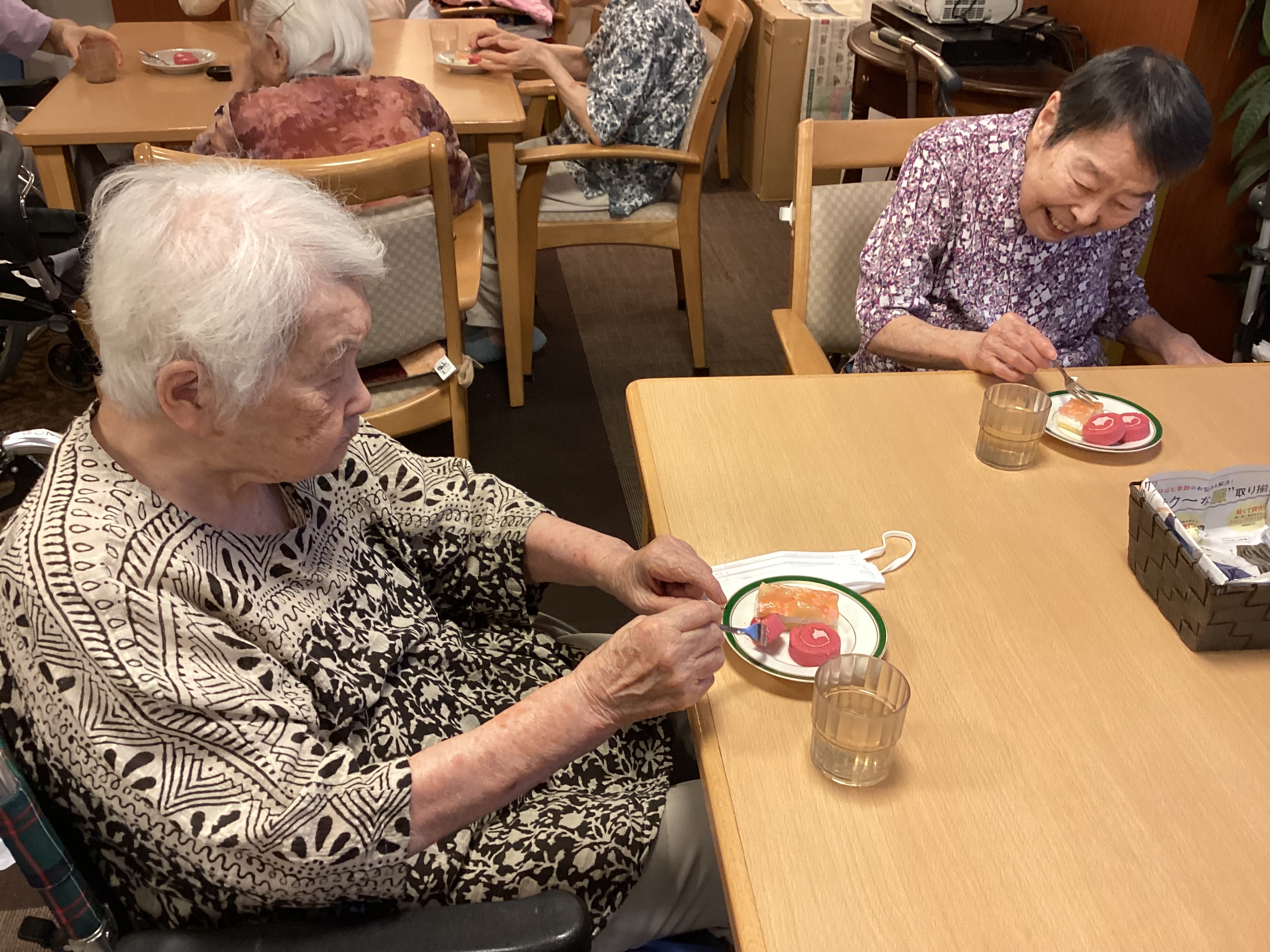 本日は6月の合同誕生日会。いつもとは飲み物を変えて皆様に楽しんでいただきました。青リンゴの酸っぱさが苦手な方もいましたが皆さんおいしそうに飲まれていてお代わりされる方も見られました。来月は違う味で楽しんでいただこうと思います。