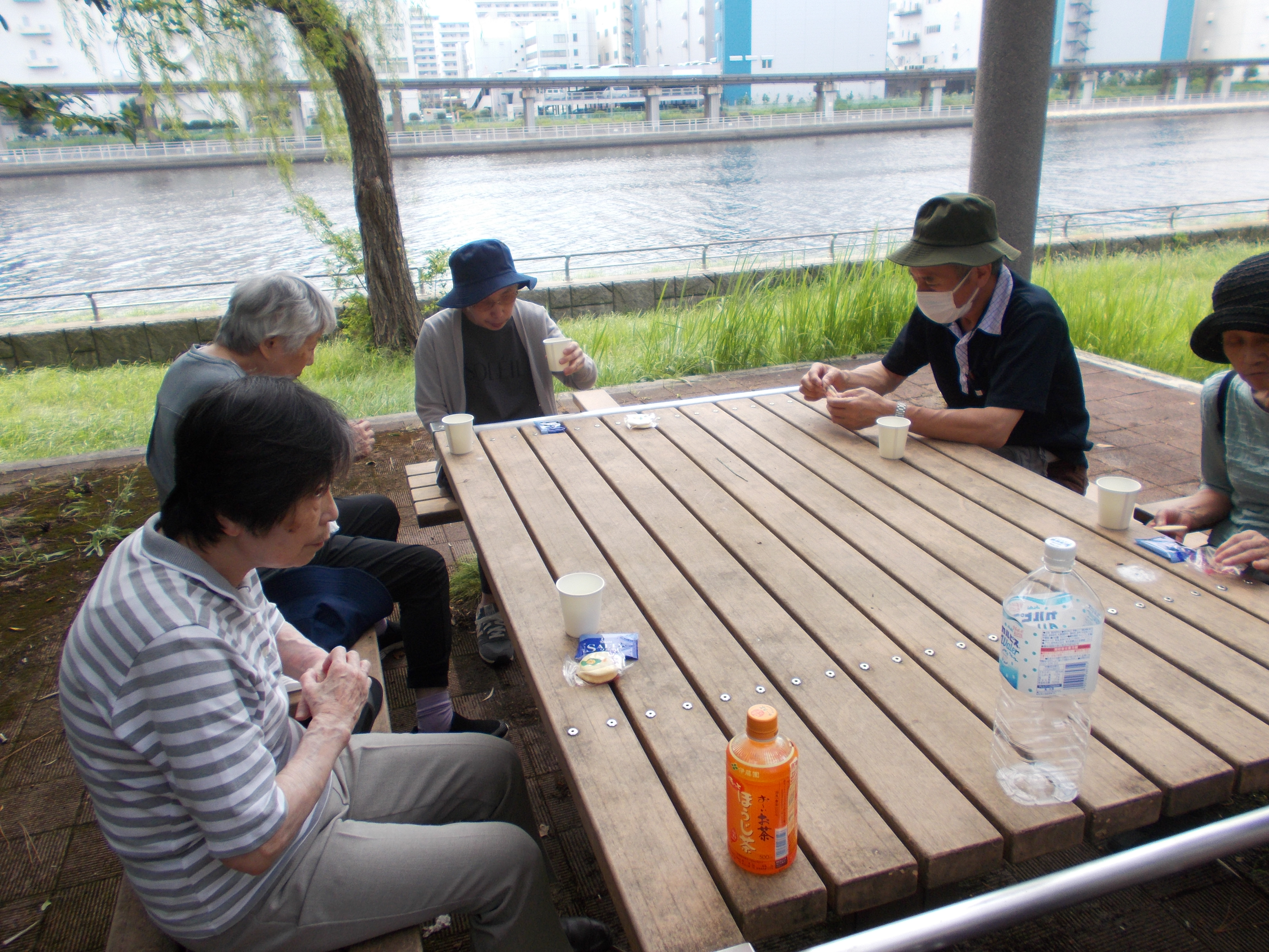 7月最初のレクはお散歩レクでした!八潮の運河沿い迄、散歩に出かけ皆でおやつを食べました。