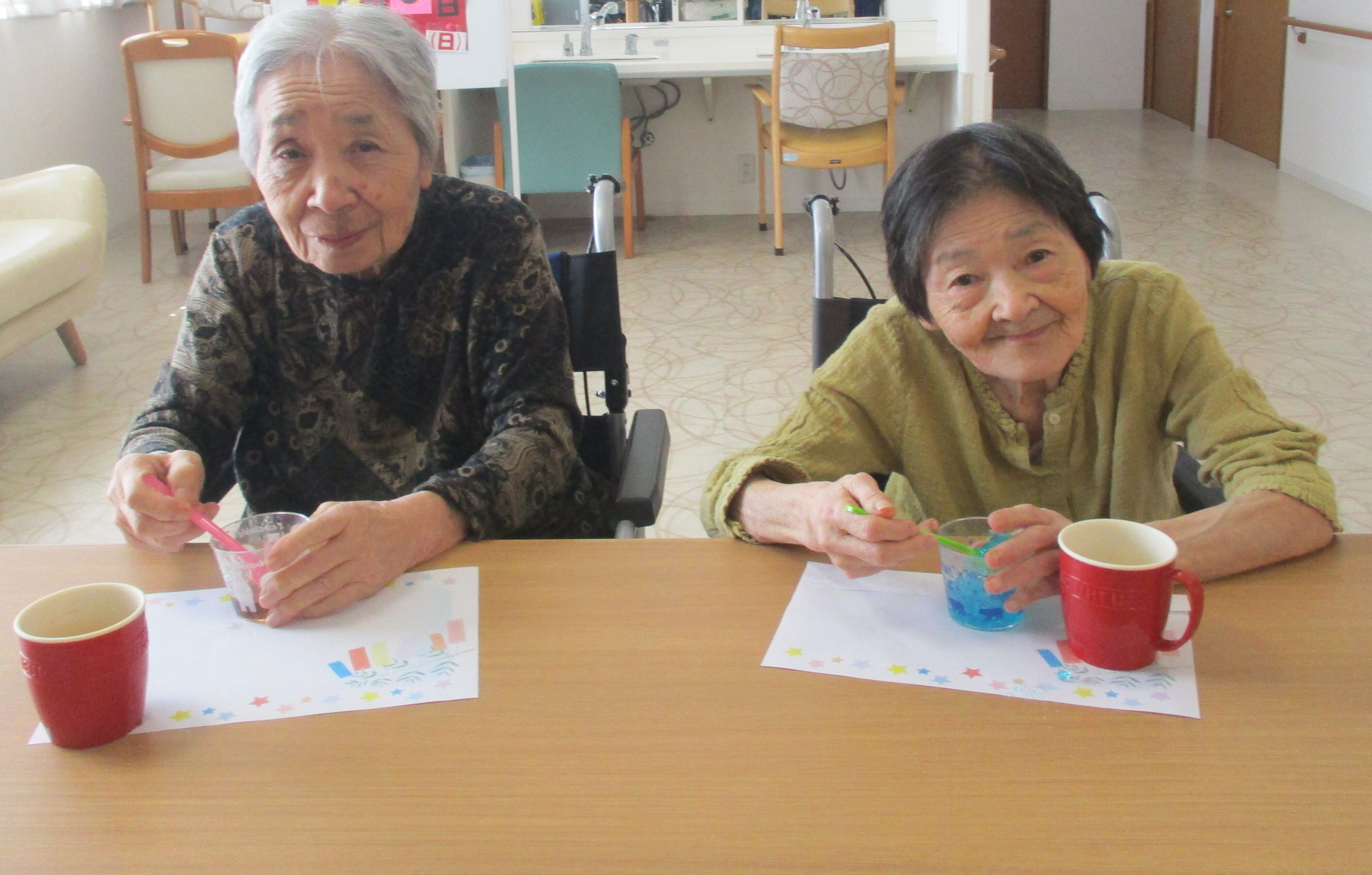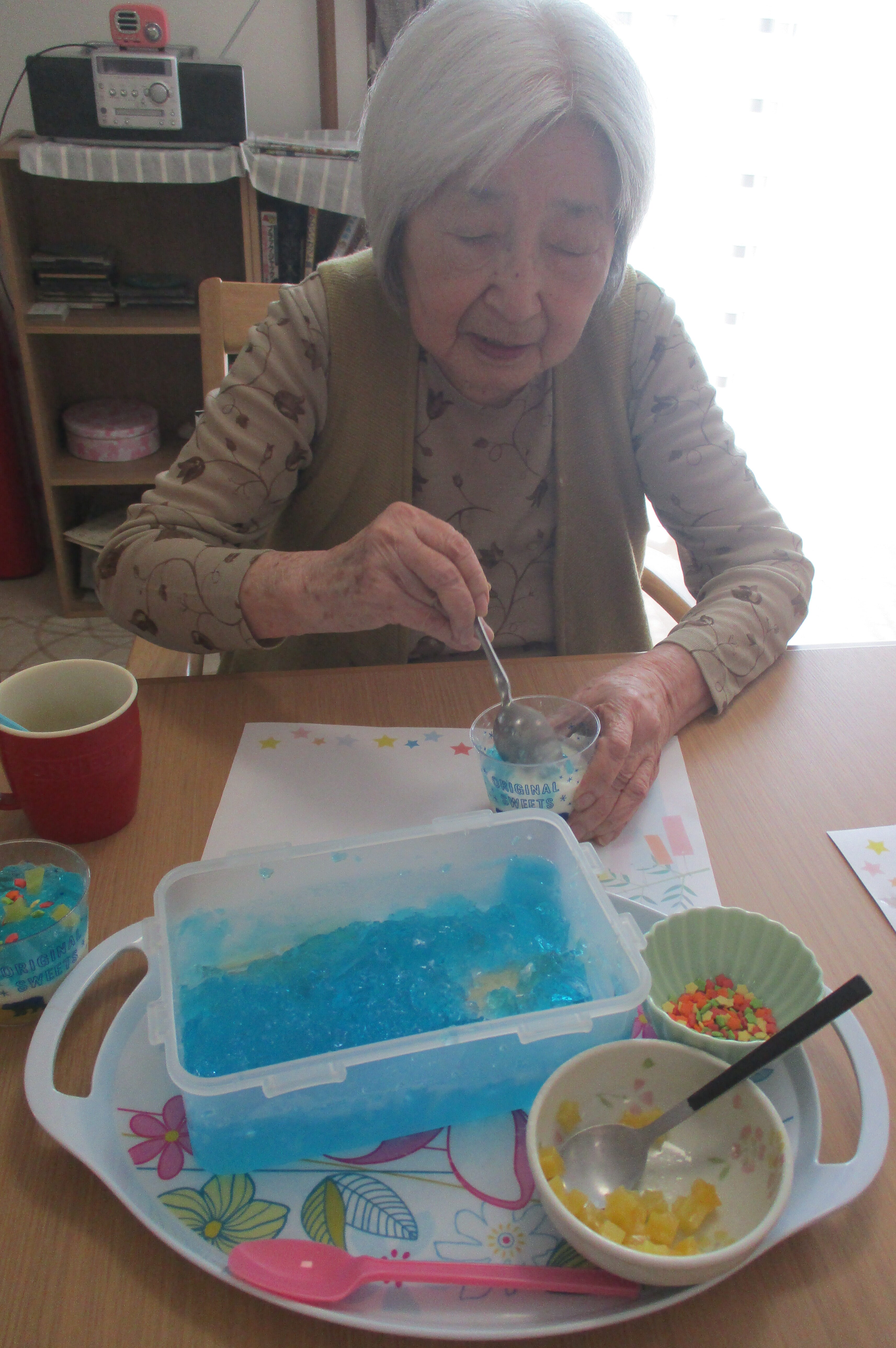 おやつレクでは、たなばたゼリーを作って召し上がって頂きました!