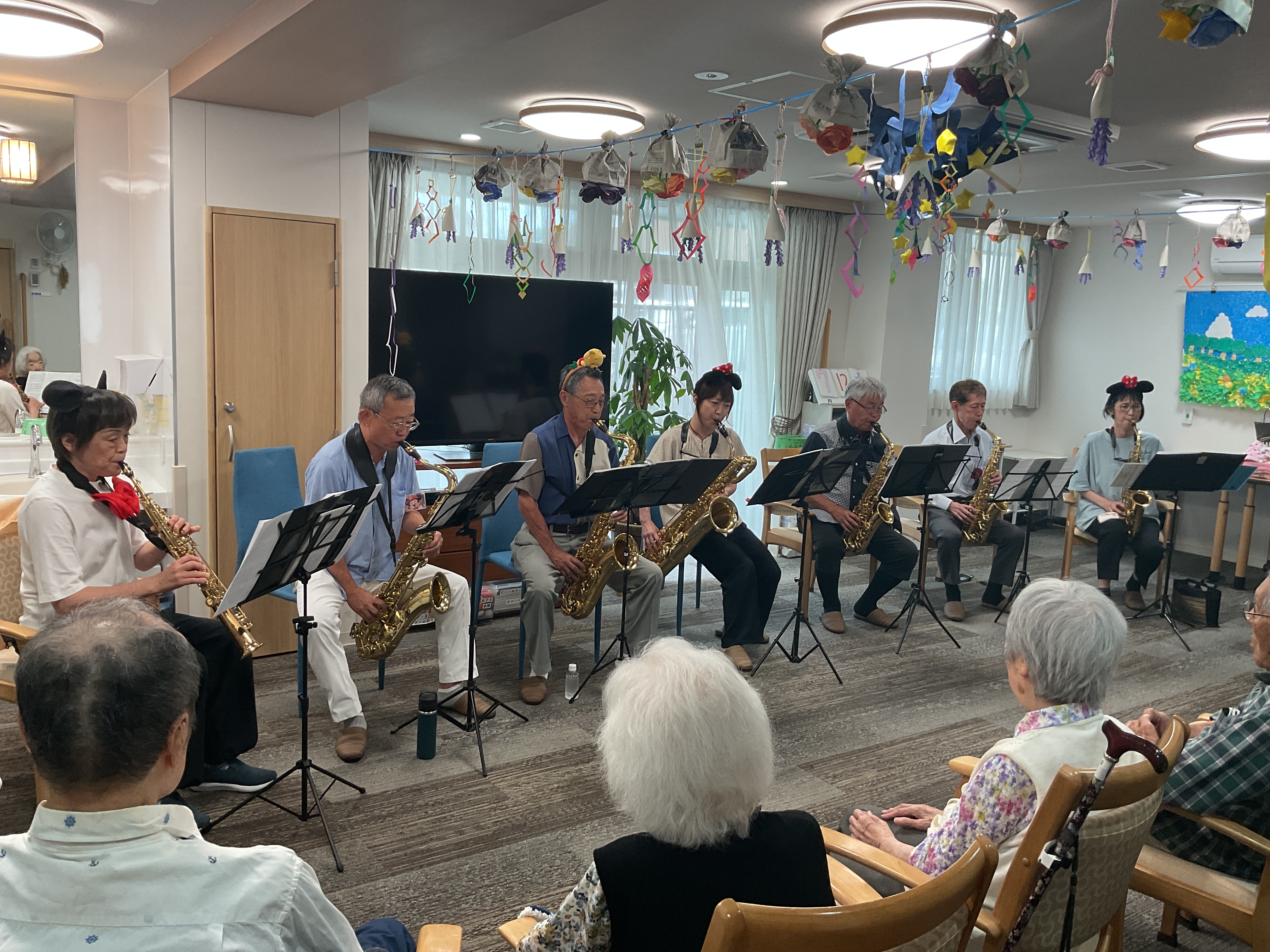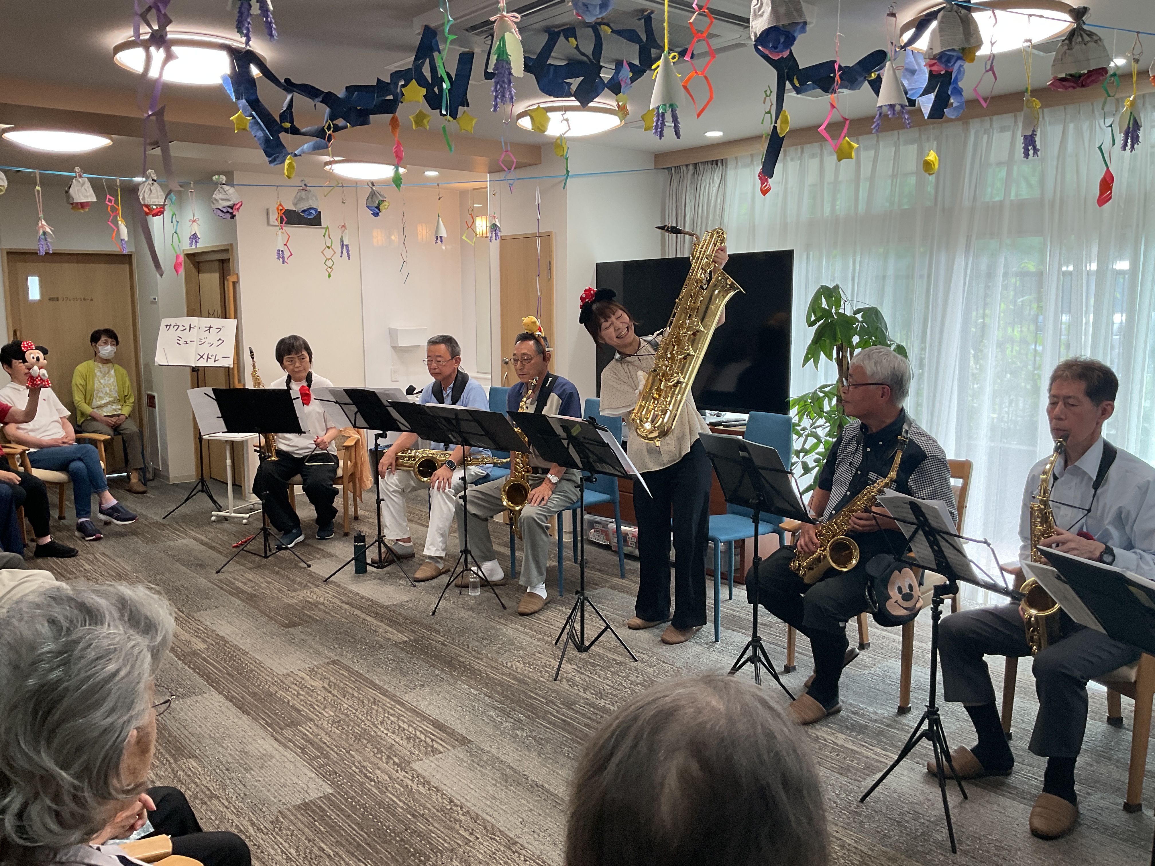 今年もサックス奏者のオレンジノートさんをお迎えし、素晴らしい演奏を披露していただきました!ディズニーサウンドや宇宙戦艦ヤマトの他、愛の賛歌や上を向いて歩こうなど皆様ご存知の楽曲を多く取り入れてくださり、手拍子や指揮をされるなど大変盛り上がりました!