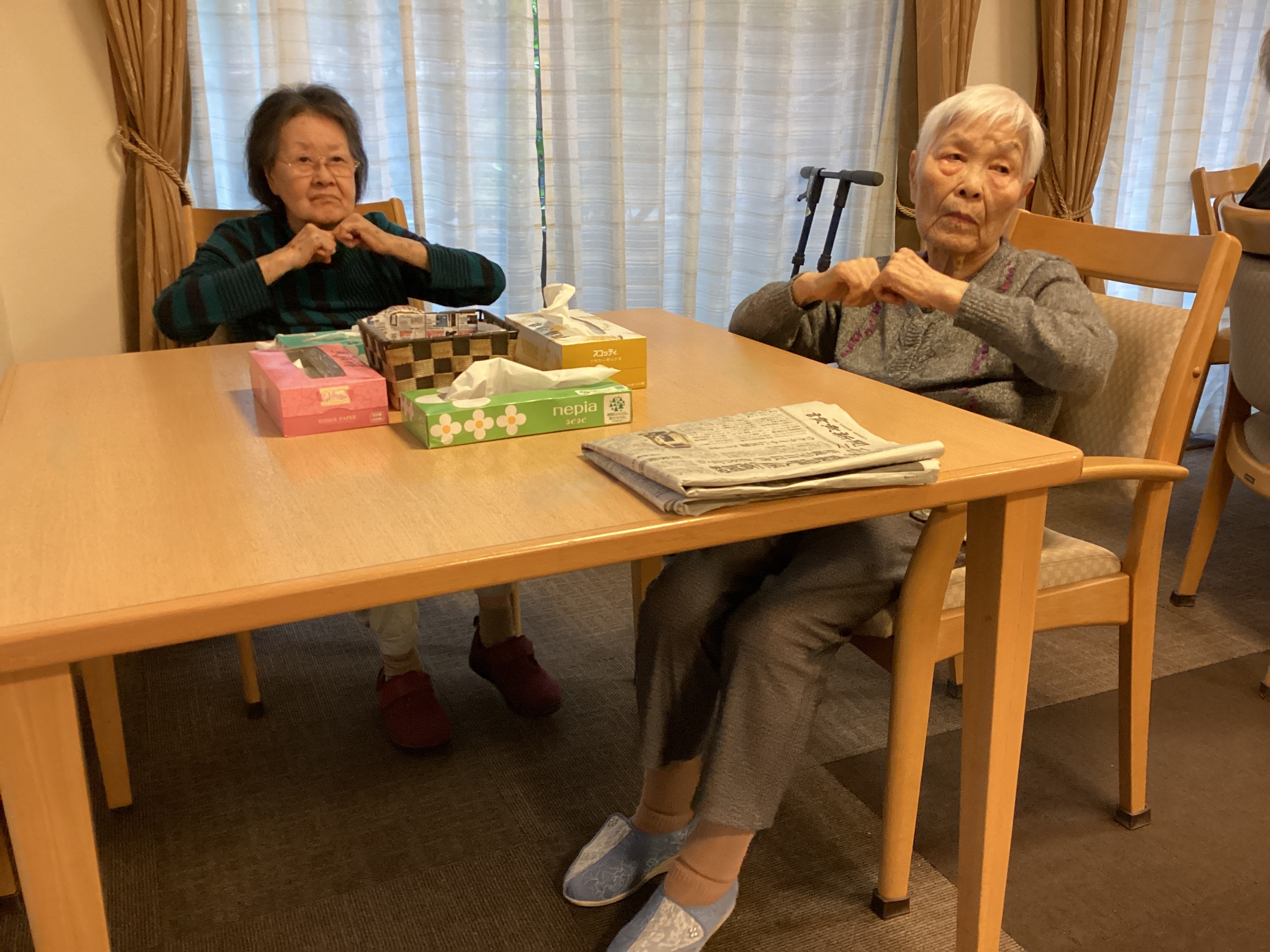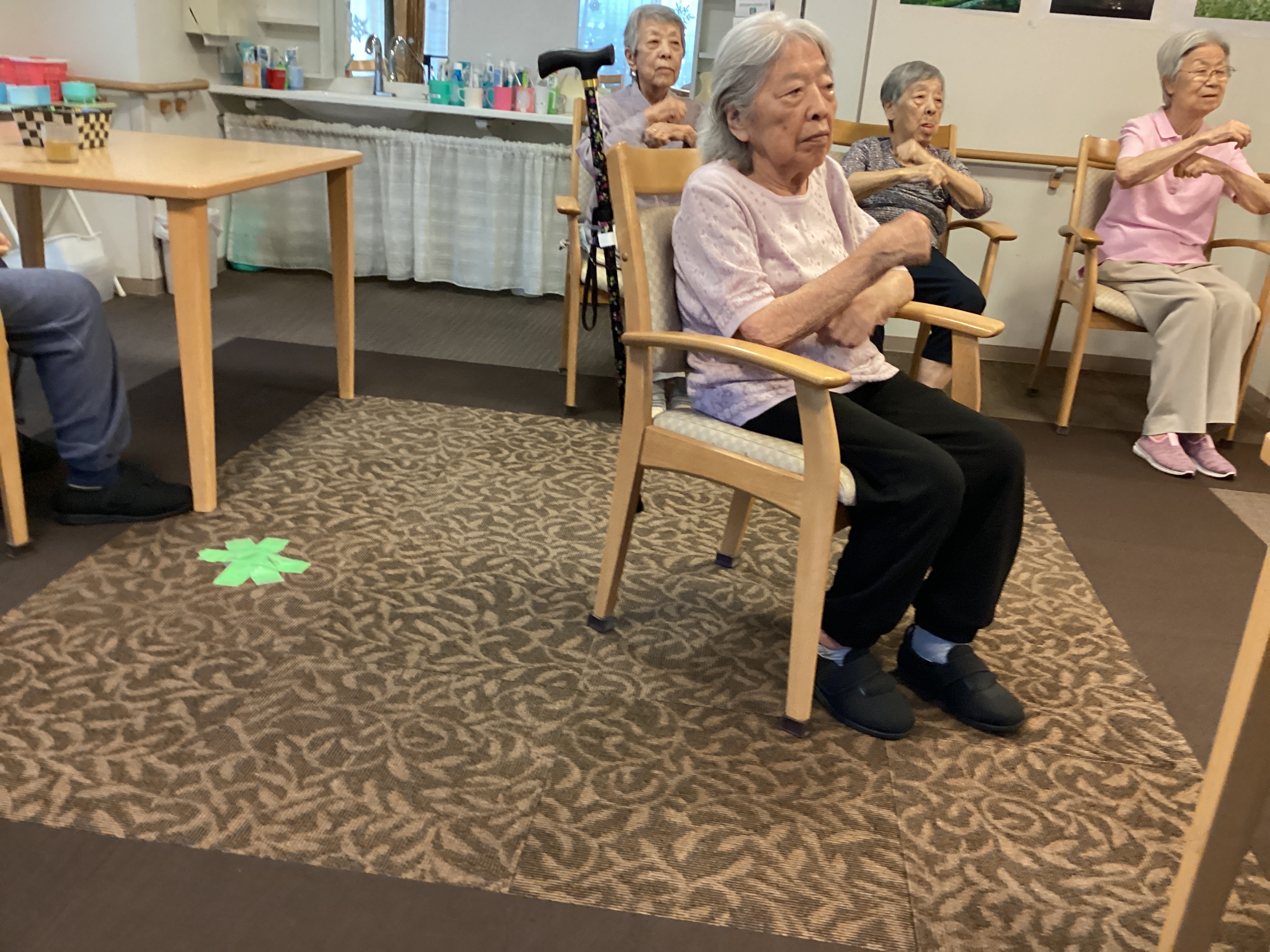 じめじめとした梅雨の時期は室内で楽しく体操をして体を動かしています。週二回のあげあげ体操もしっかり習慣になってきて皆さん真剣に、でも楽しく体操をされています。「やるとやらないとじゃ全然違うの」「やる日が楽しみ」と言っていただけます。