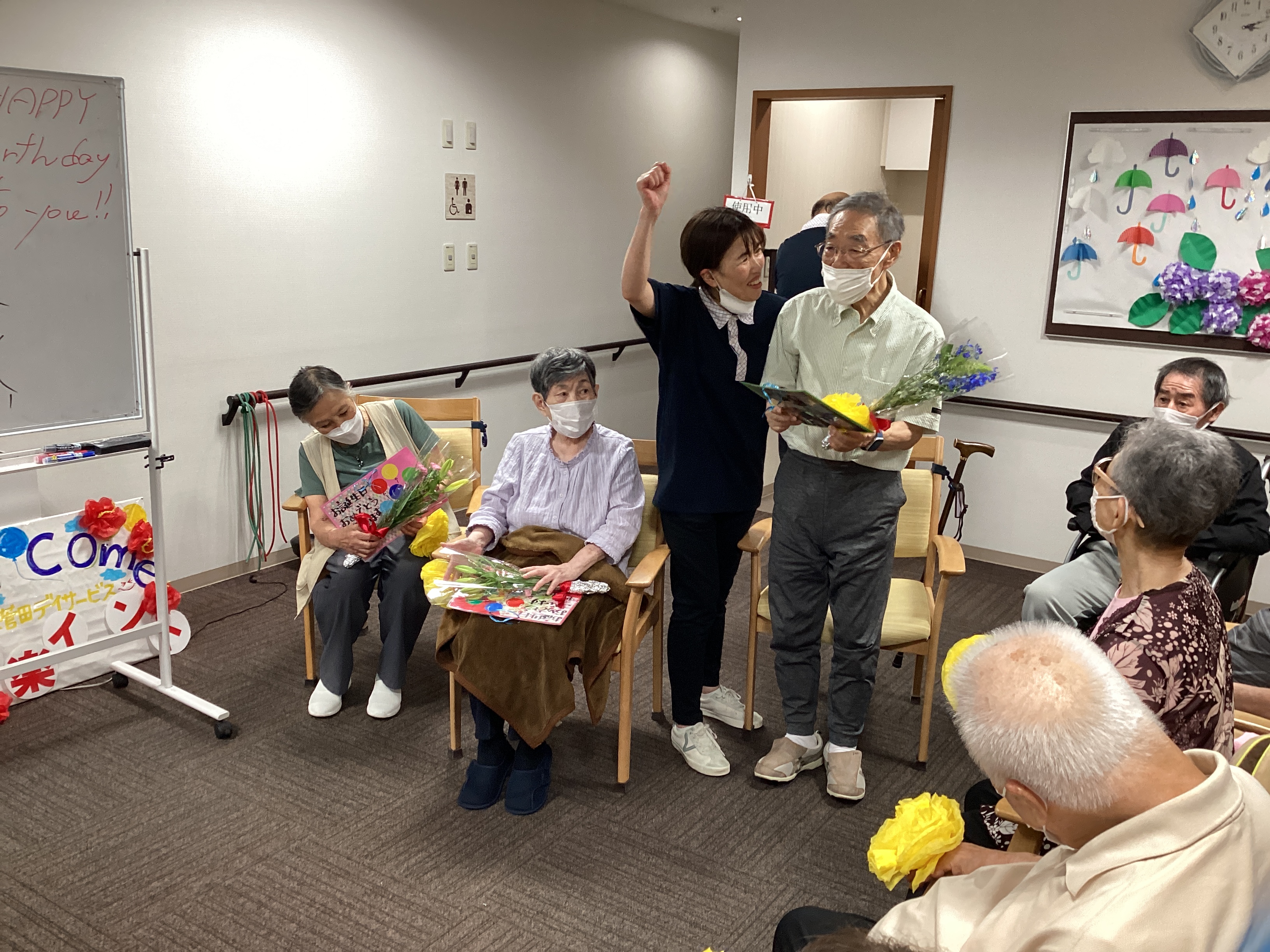 またまたギターおじさんが来てくださいました。 たくさんの曲を演奏して下さり、最後に今月誕生日を迎える利用者様に happy birthdayを送っていただきました。 楽しいひとときでした。