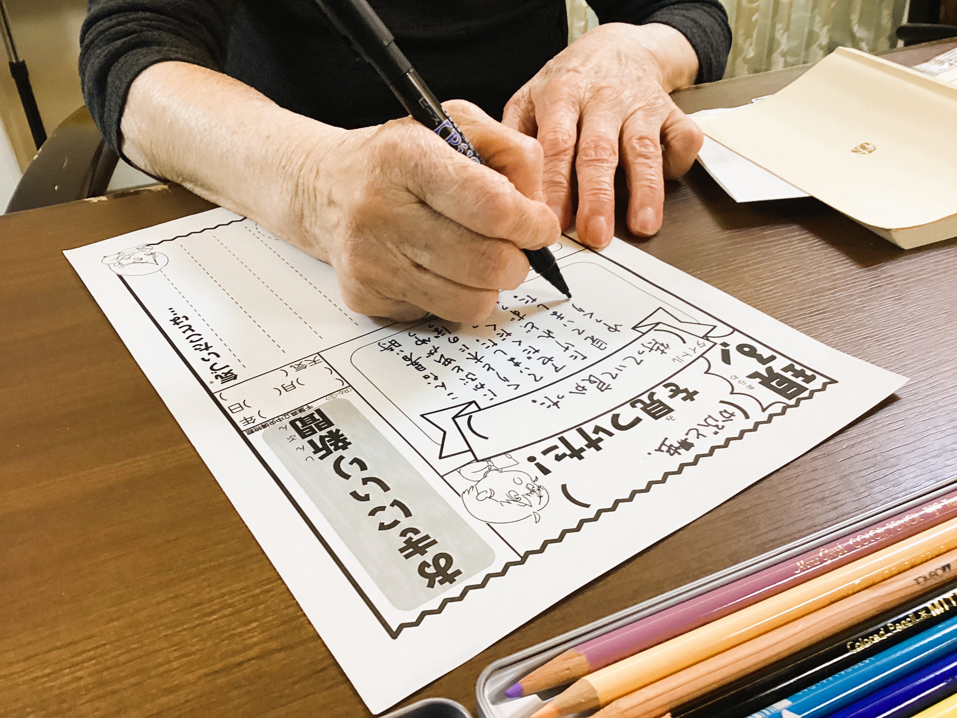 新聞や文章のお仕事をされていたご利用者様に新聞を執筆して頂きました! ペンの持ち方や手の添え方からお仕事をされていた当時が見えてきます🎶 「郊外新聞として地域にお配りしたいな」と職員。 「恥ずかしいからやめなさいな笑」とのことでした( ´∀` )