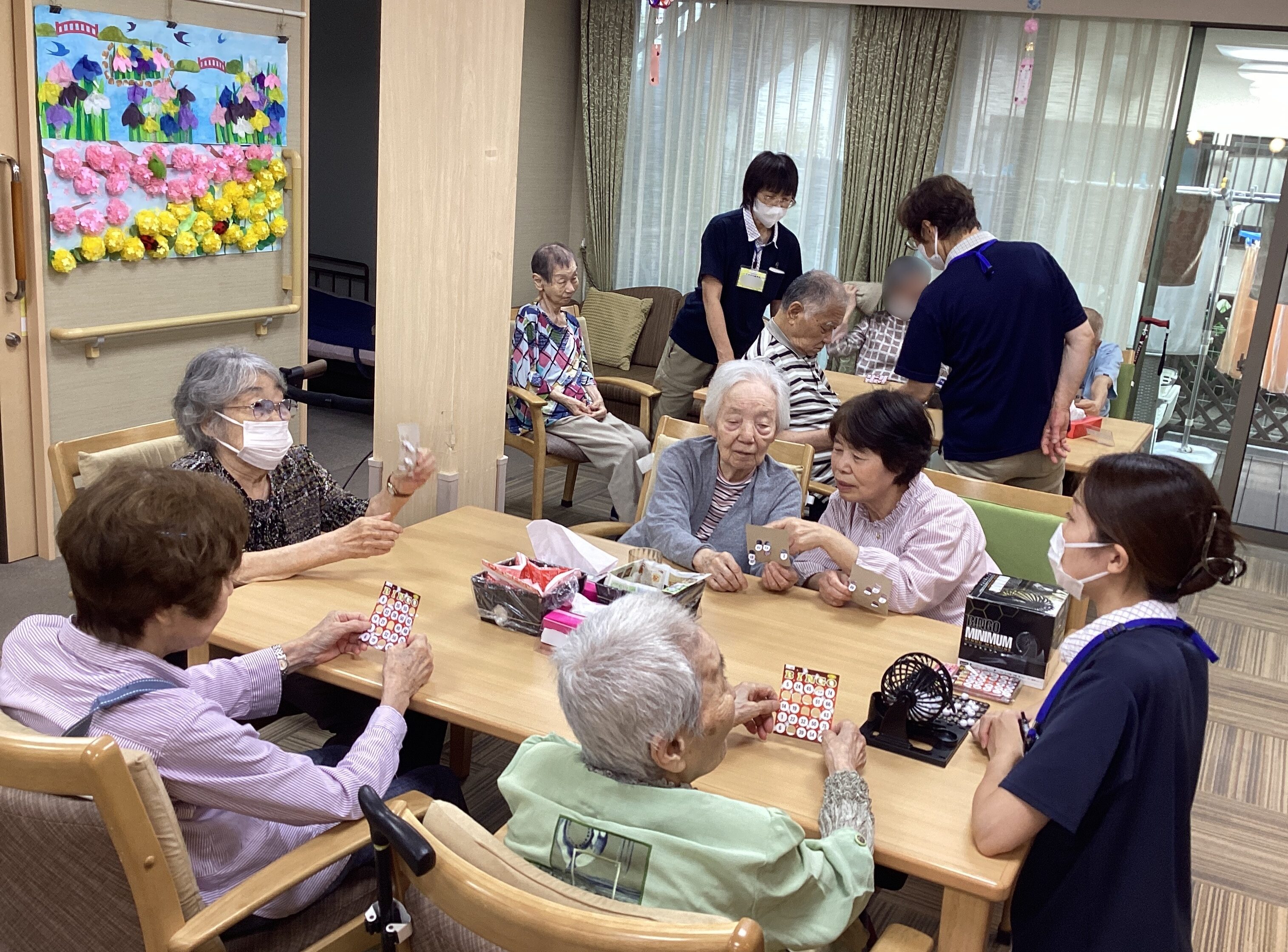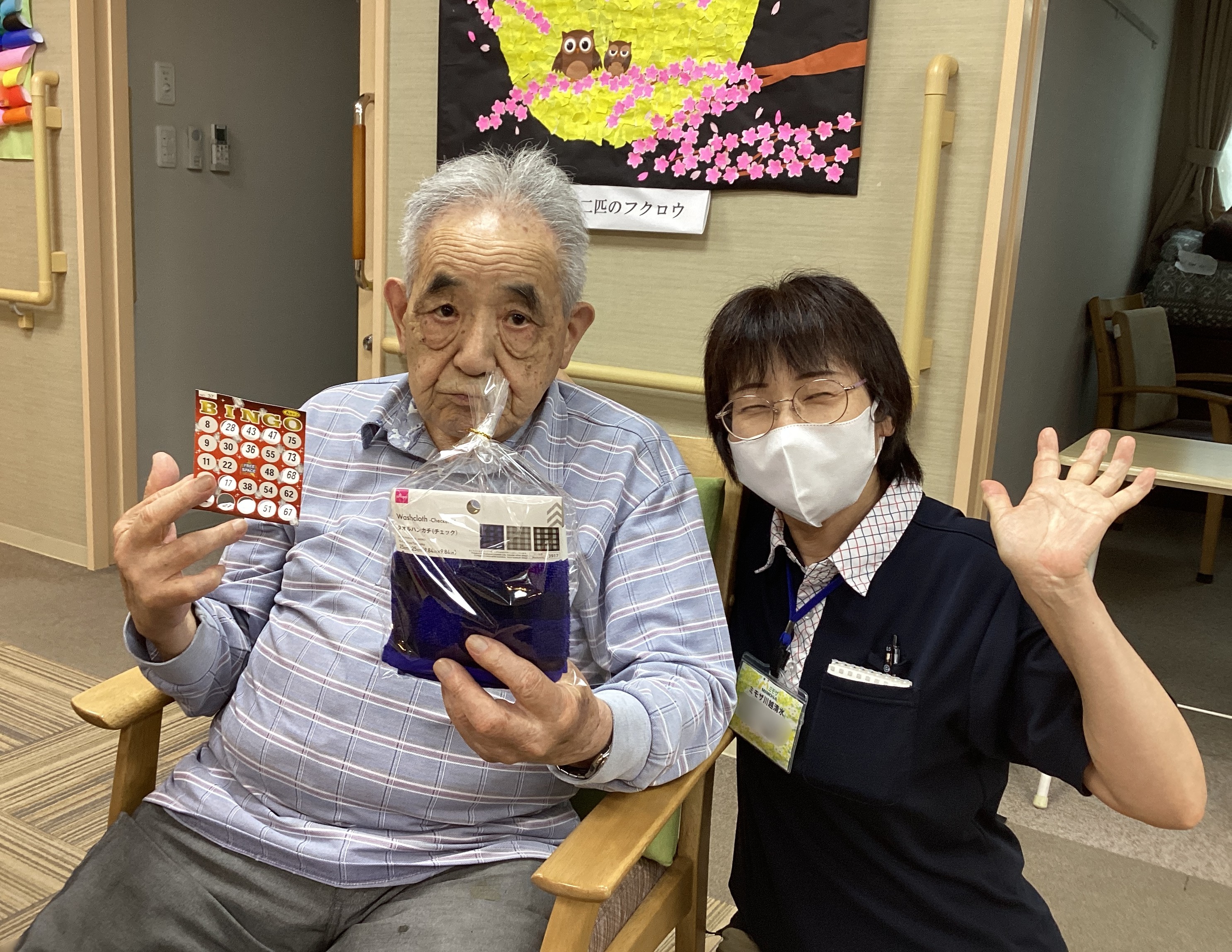 ビンゴ大会を開催しました🥇✨リーチやビンゴが出ると拍手や笑い声があふれ終始にぎやか😊見事ビンゴになった方にはハンカチ・靴下・センスの中からお好きな景品を選んでいただきました🎁迷いながらも嬉しそうに選ばれる姿が印象的でした🤭♪