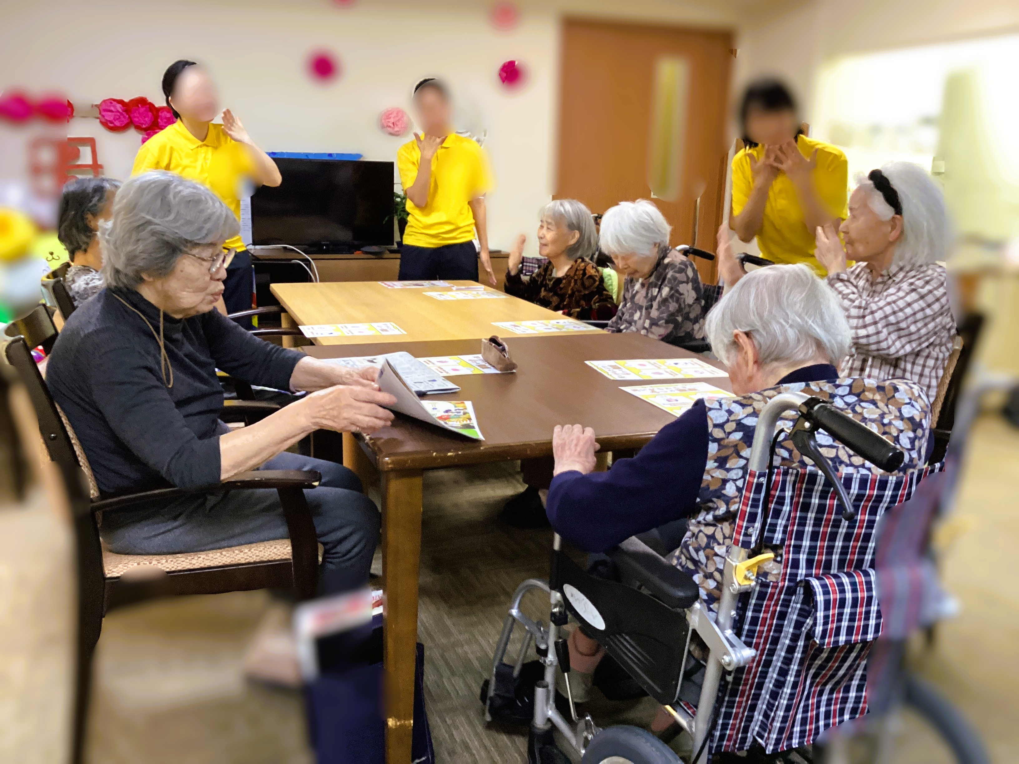 今日は看護学生さんが地域包括センターさんと一緒に訪問実習に来てくれました!!🎶 学生さんに”笑顔の力”ということでお口の体操をしてもらったんです♡♡ いつでもまた来てね!! ありがとうございました♡