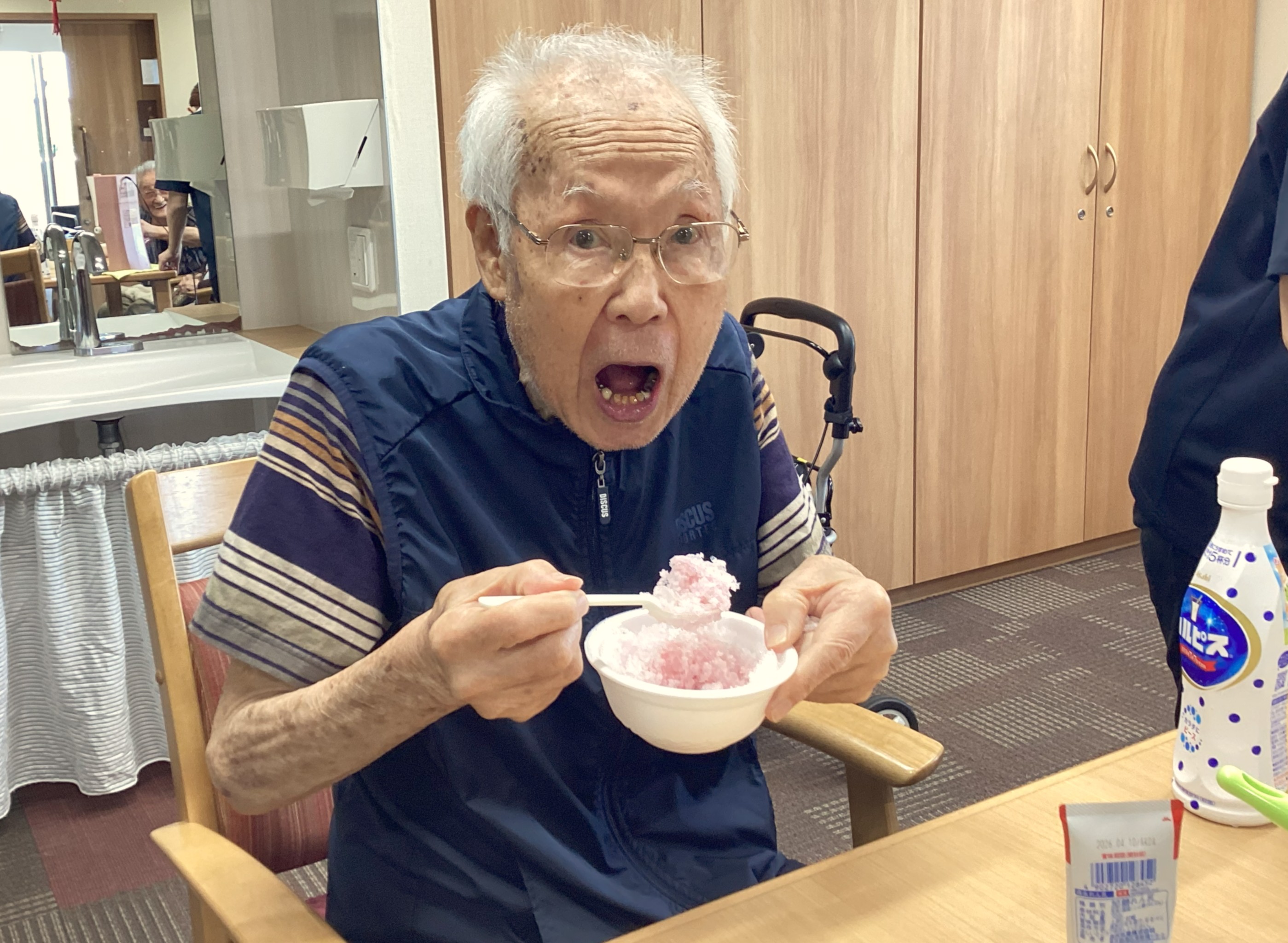 テーブル囲んで皆でかき氷を食べました。季節限定イベントに皆様テンション上がります。夏はやっぱりかき氷😊外はとてつもない暑さですが💦涼を取れました