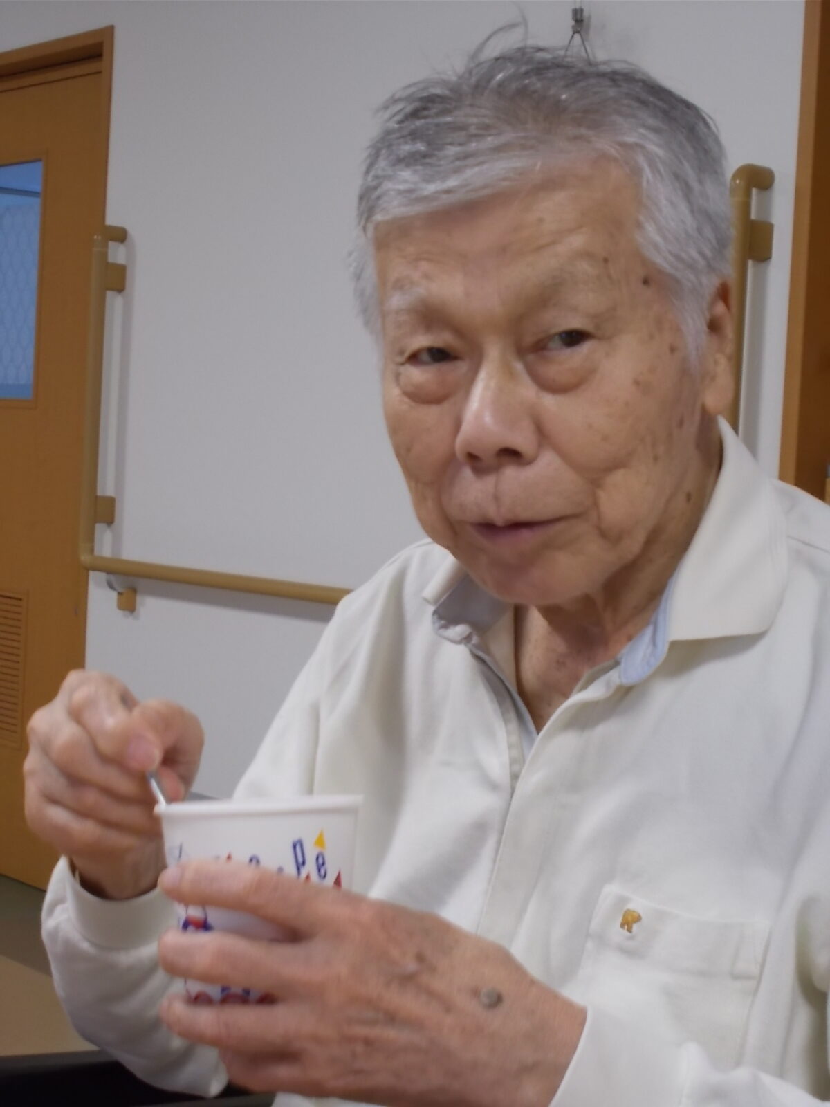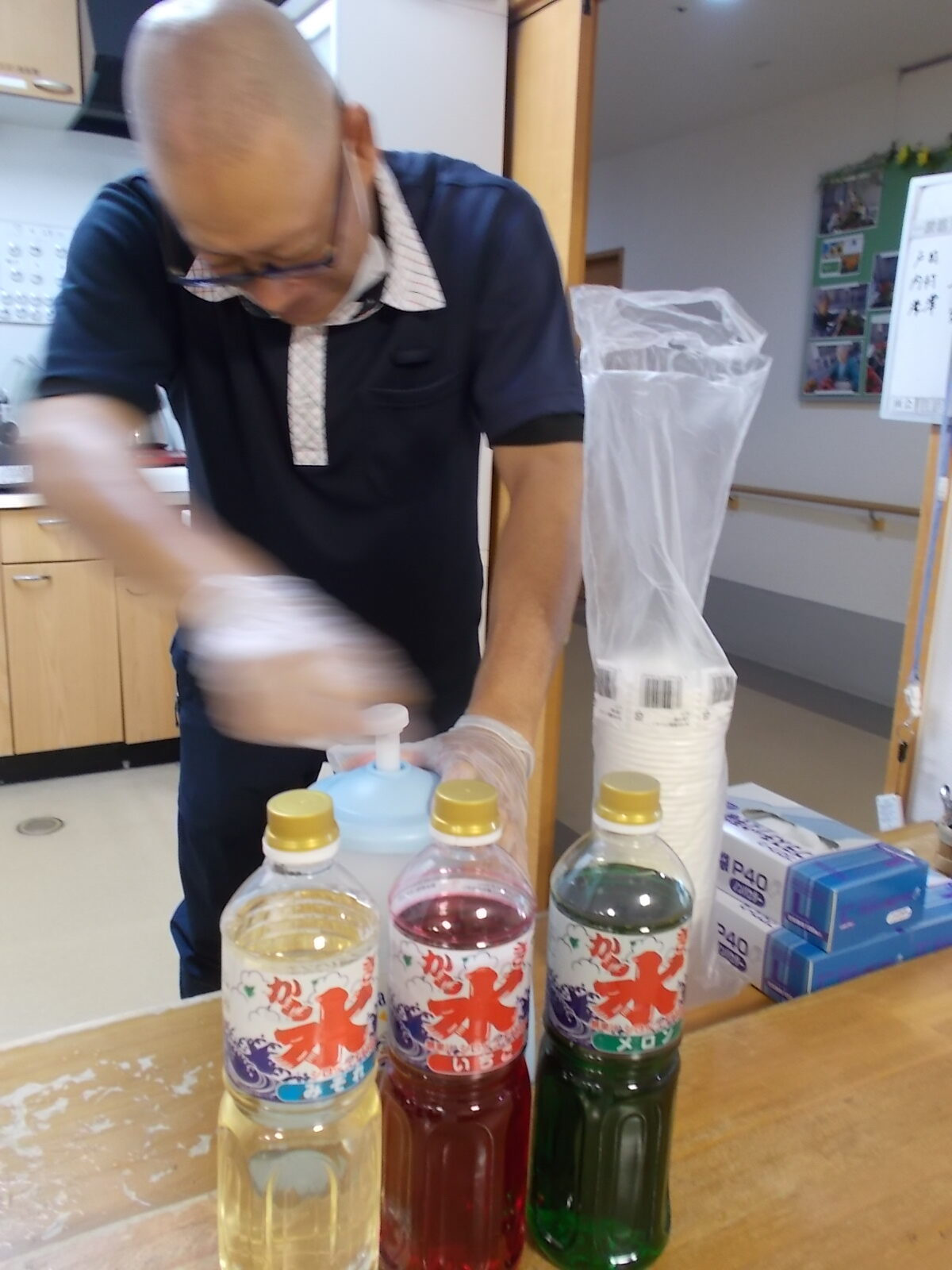 いやあ凄まじい気候ですね。40℃って・・・。当施設ではそんな中皆様に”涼を取ってもらう企画第二弾”としてかき氷の提供をいたしました。数人の方はキーンと頭がなっていたかと思いますが(笑)、冷たくて美味しいねえと絶賛でした(職員は氷をひたすら削る!!)。