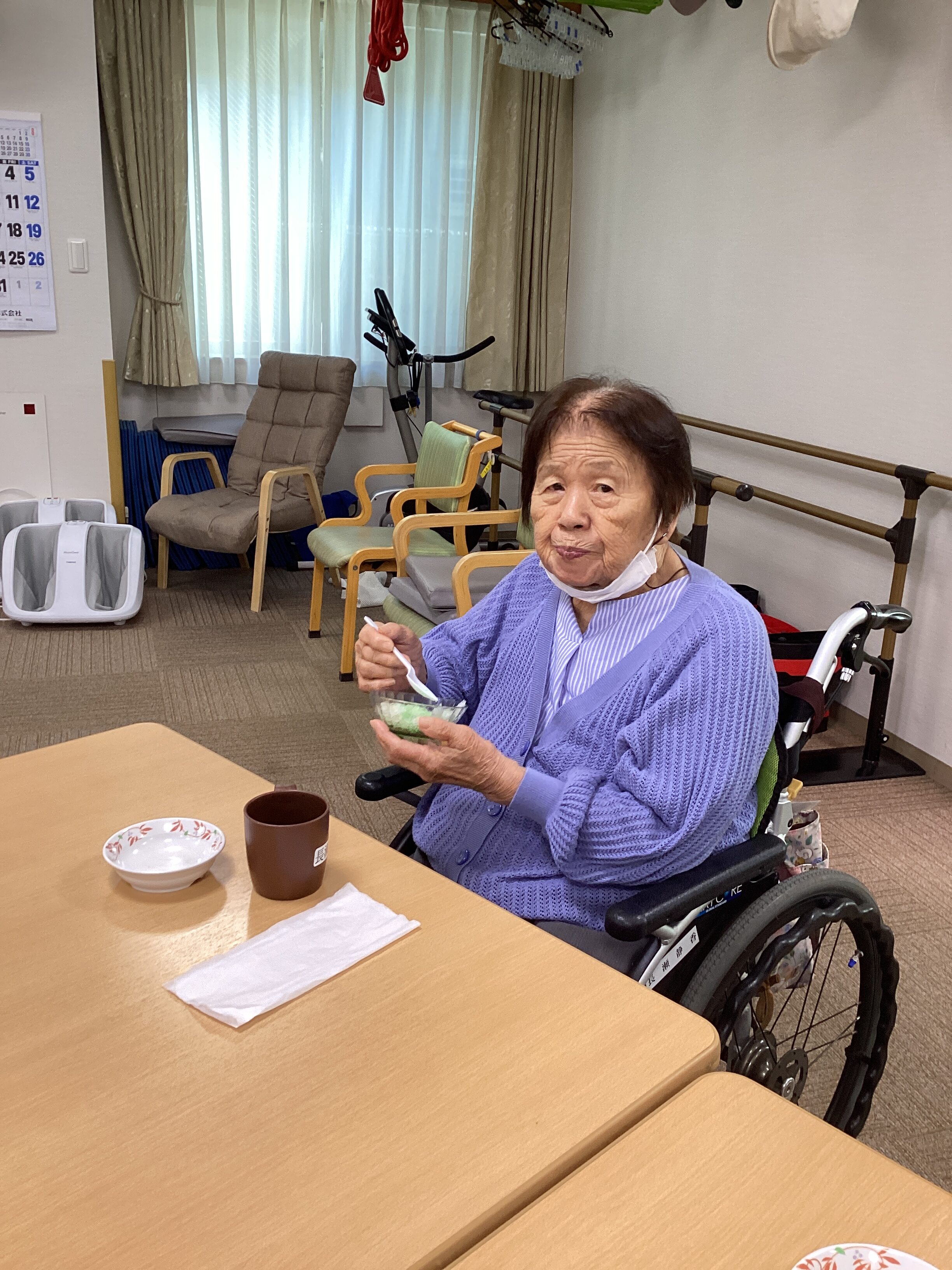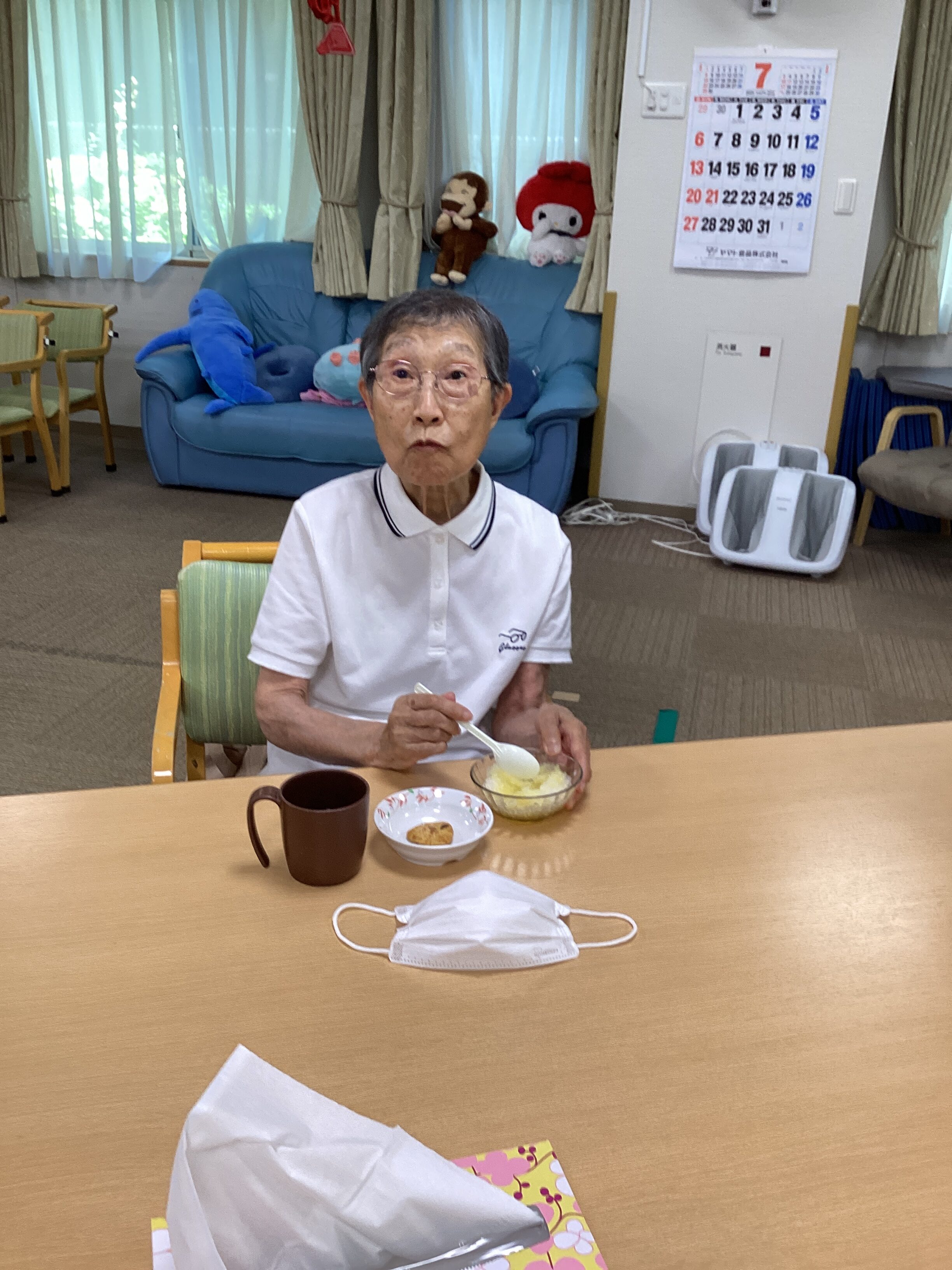 15時のおやつにカキ氷とおせんべい🍧🍘 定番のイチゴ・メロン・レモンに加えて、カルピスパイン味もありました。暑~い日にはカキ氷が沁みますね!美味しかったようです!!