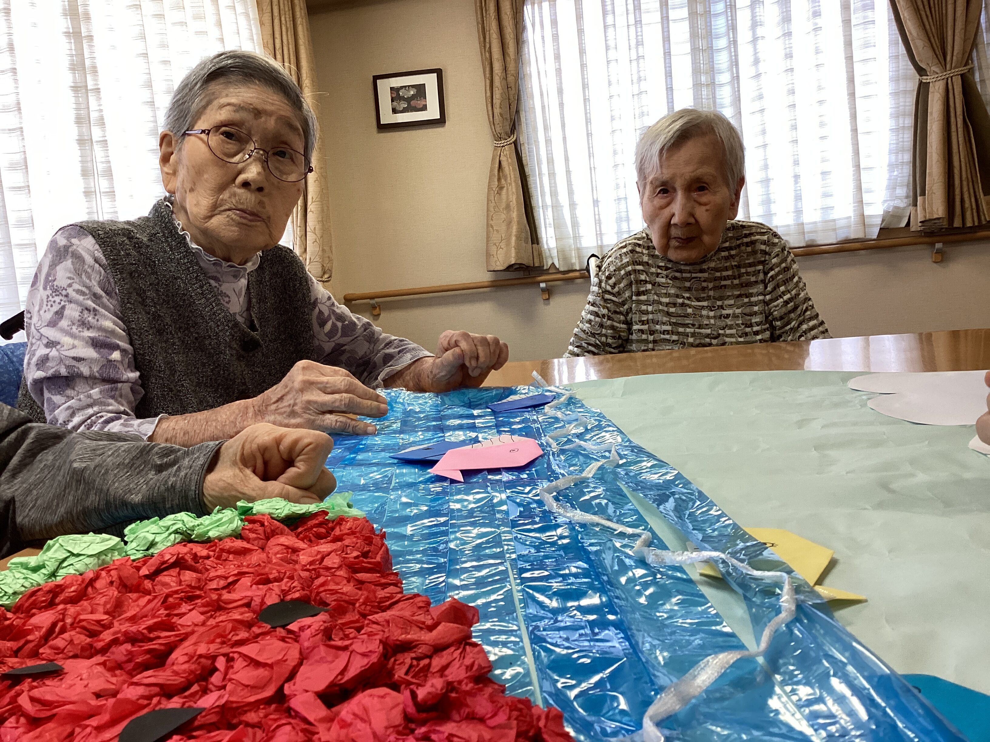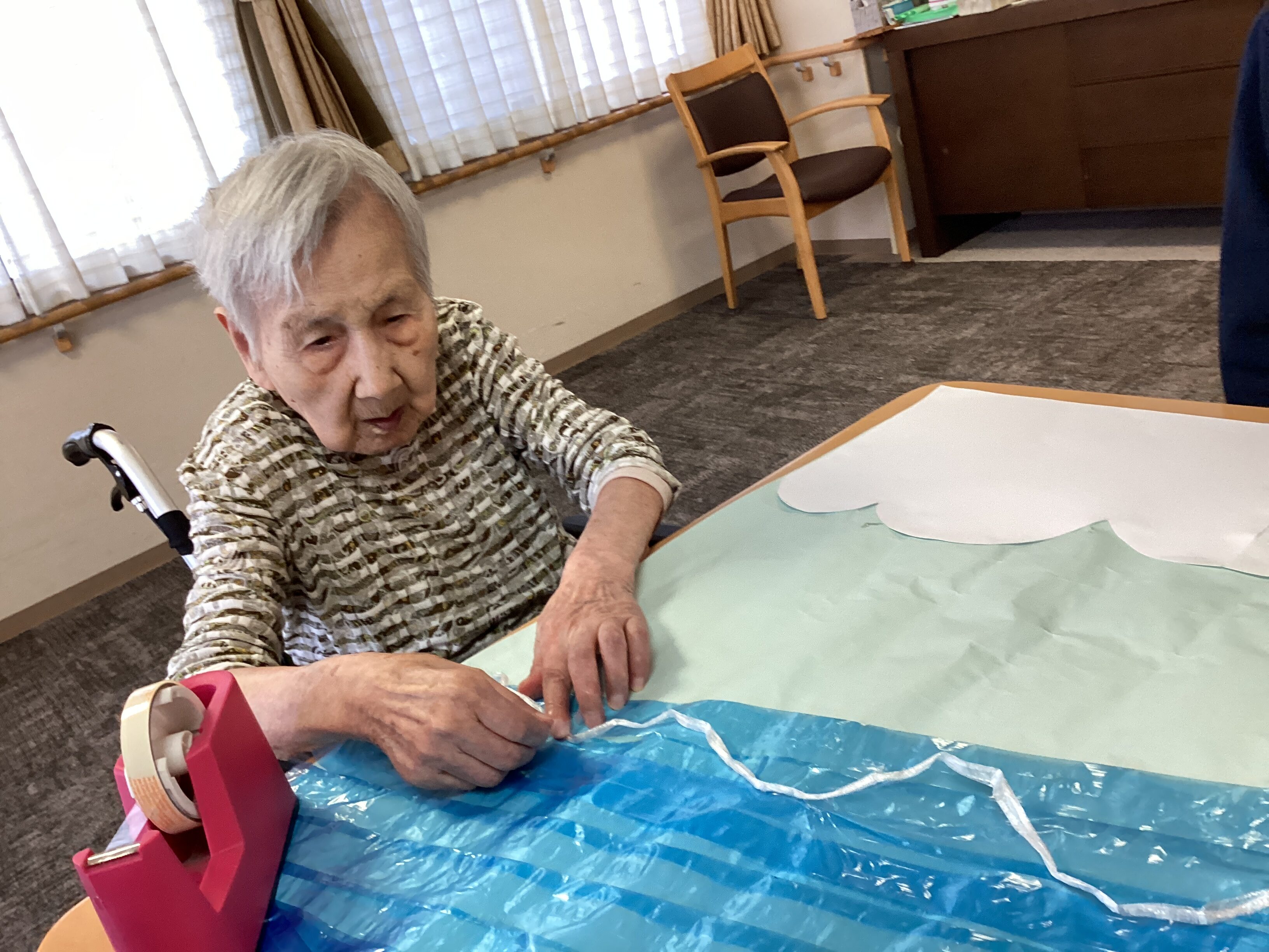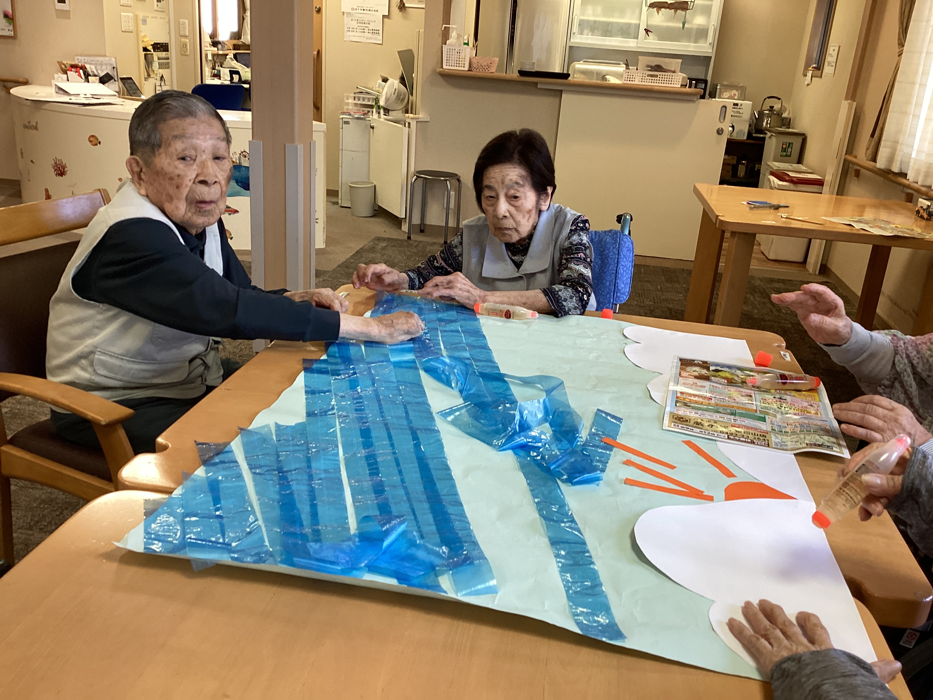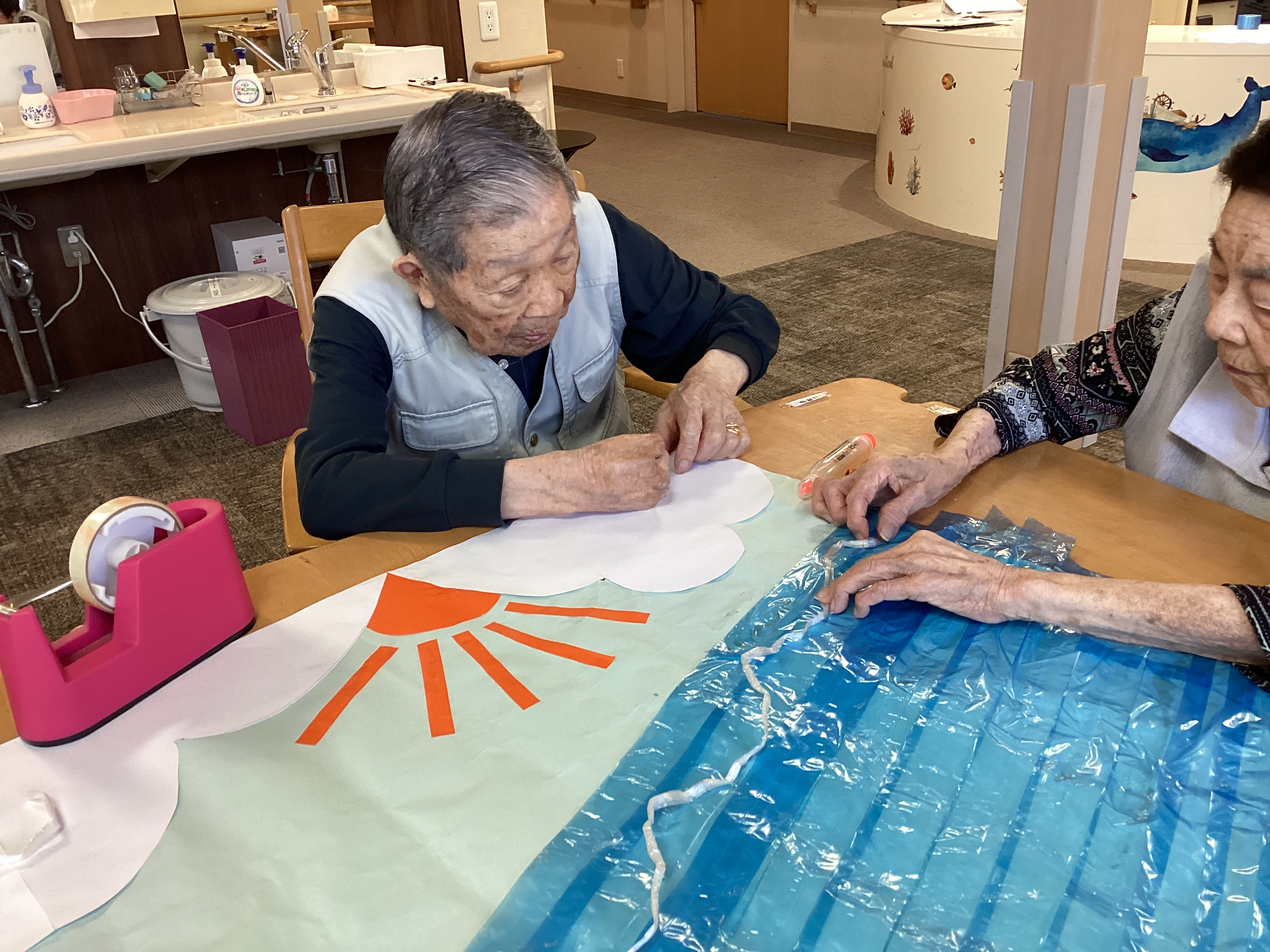 暑さに負けず、海や西瓜を模造紙に貼り付け夏日を凌いでいます。