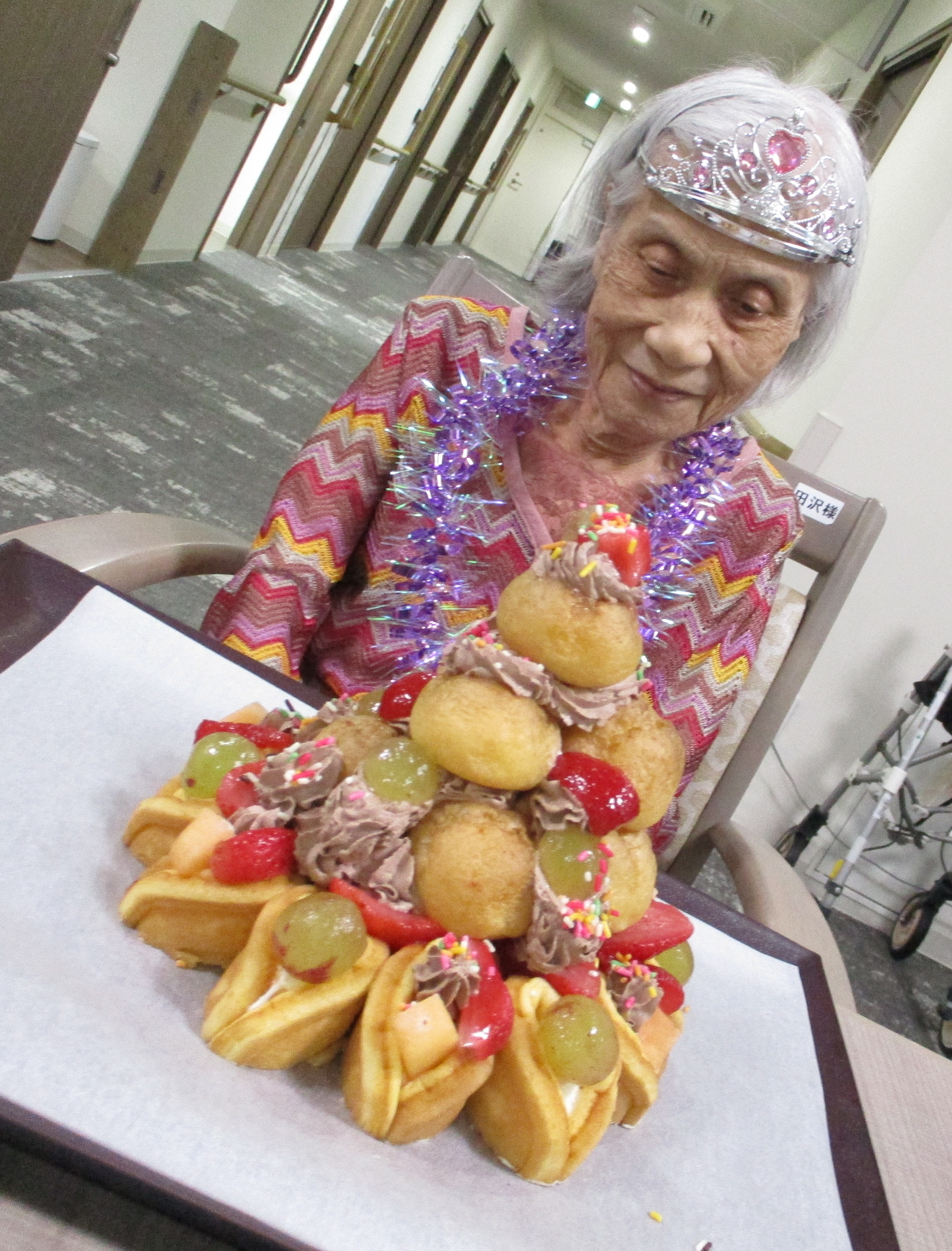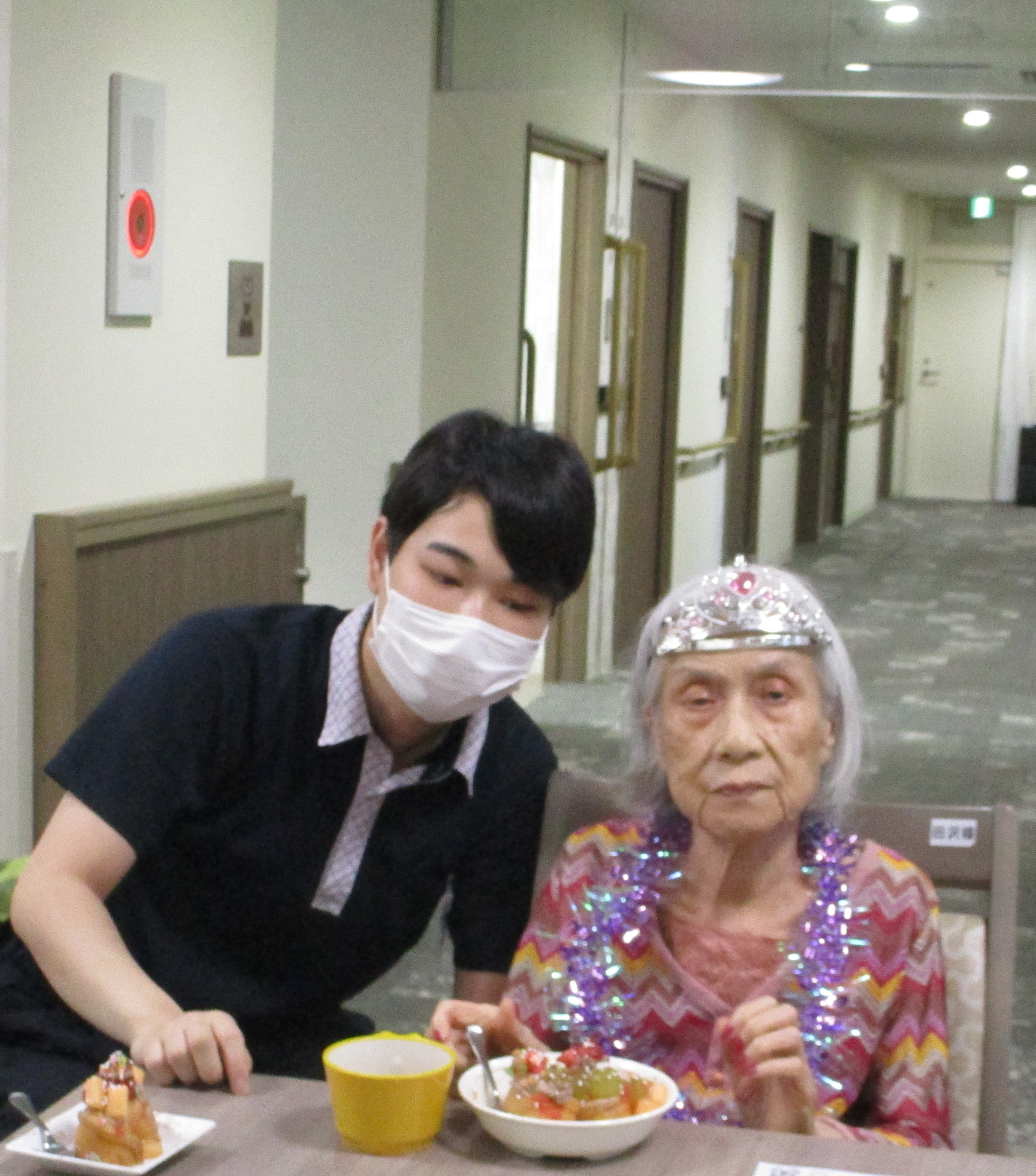 ご利用者様のお誕生日会を開きました。 手作りのケーキを皆様と一緒に職員もいただきました。