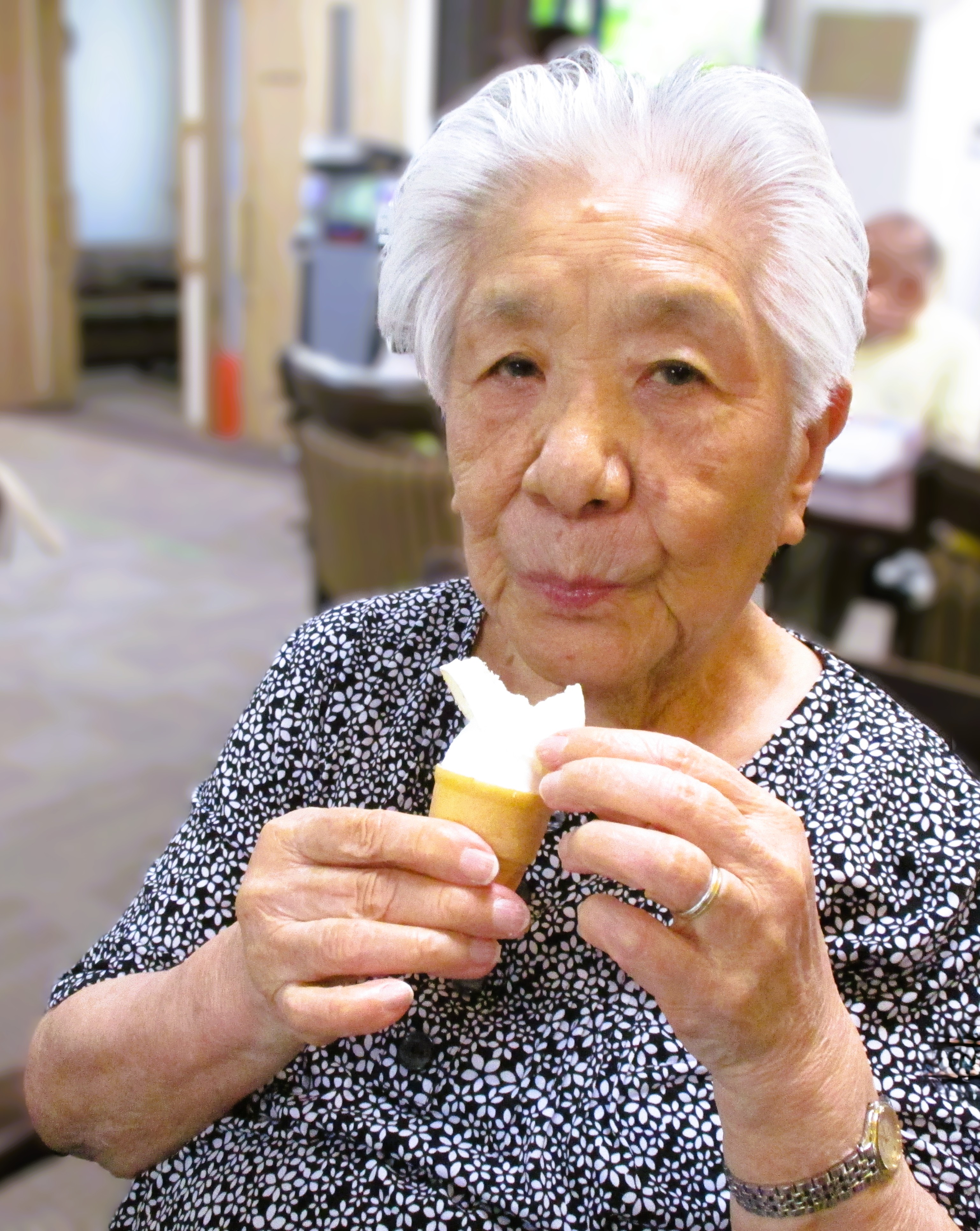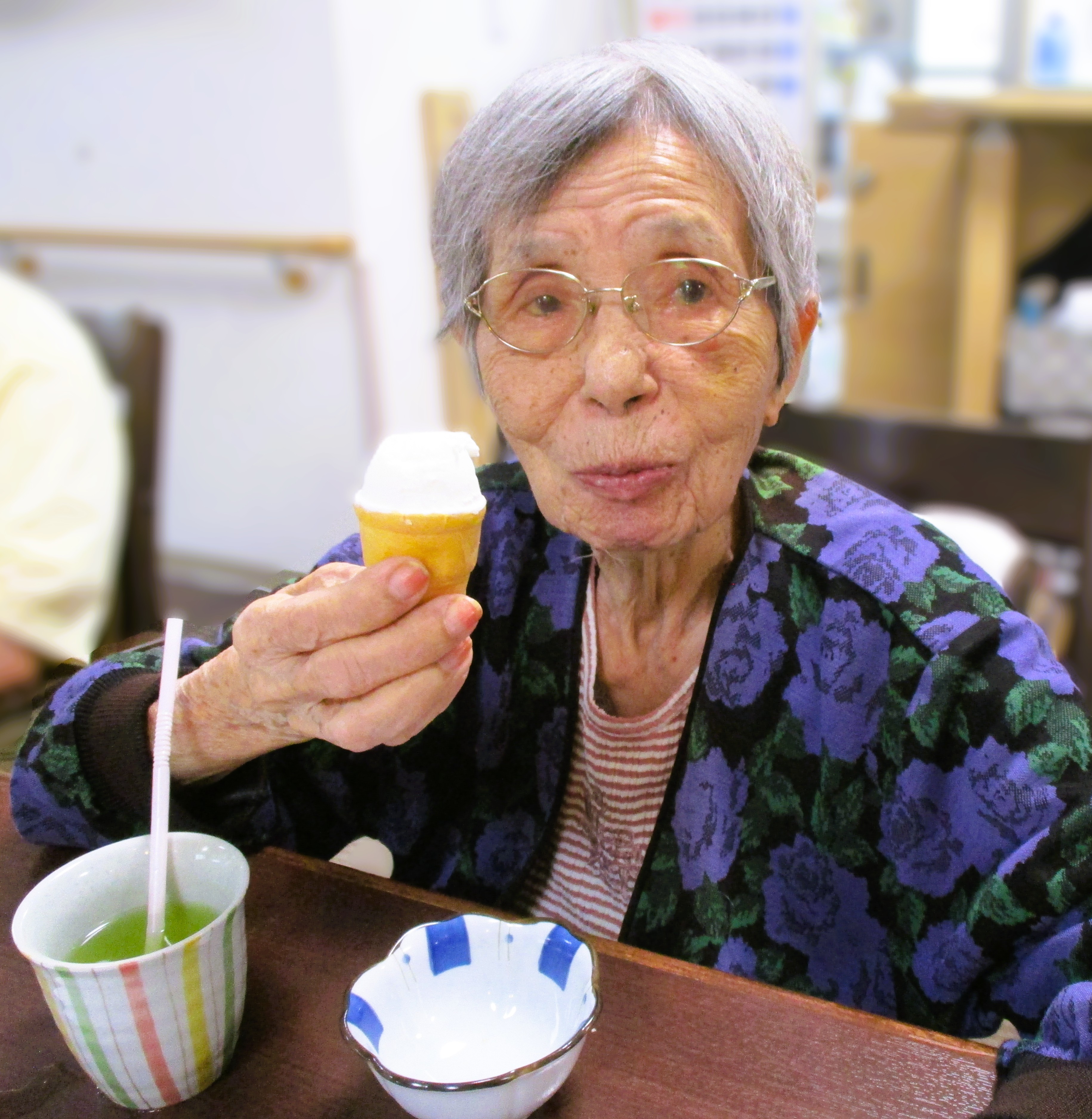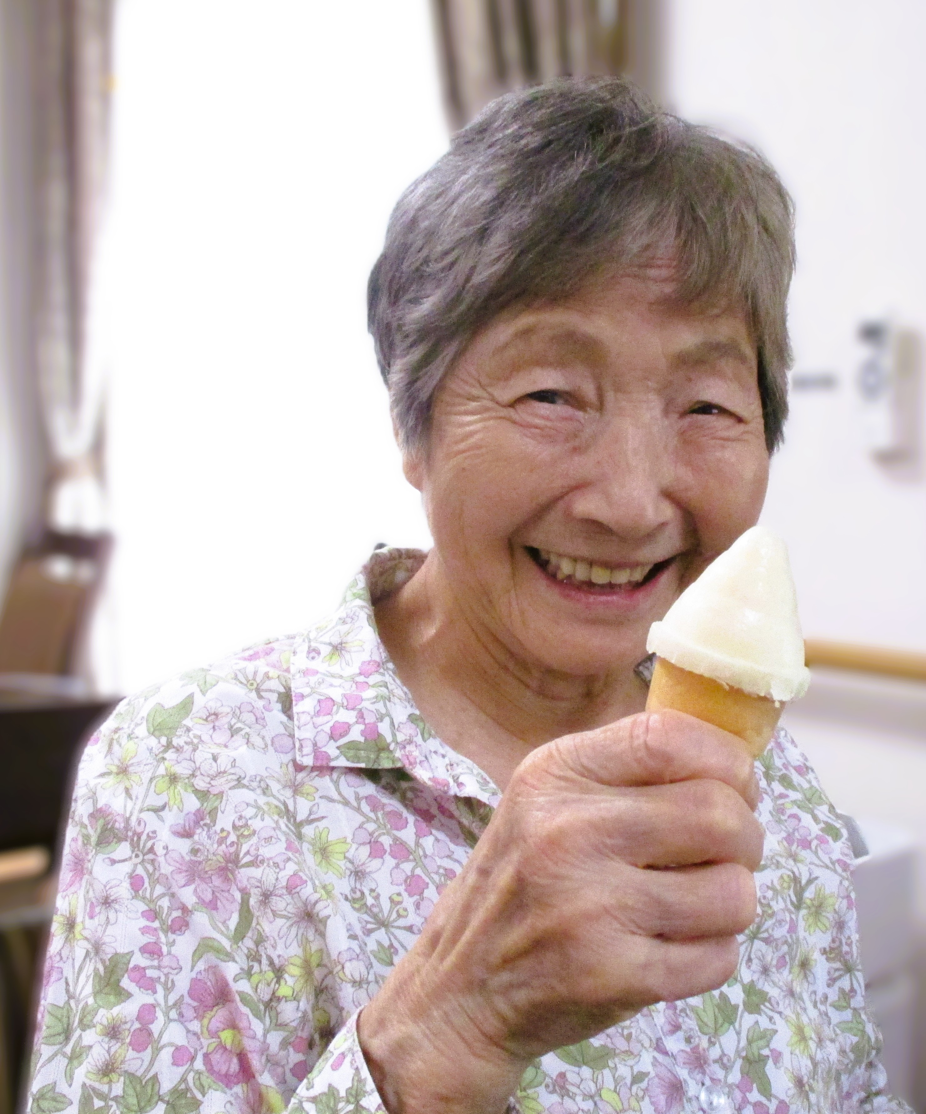 今日のおやつは冷た~いアイスクリームです♡ 暑い日のアイスクリームは格別ですね! 皆様とっても良い笑顔 (^-^)