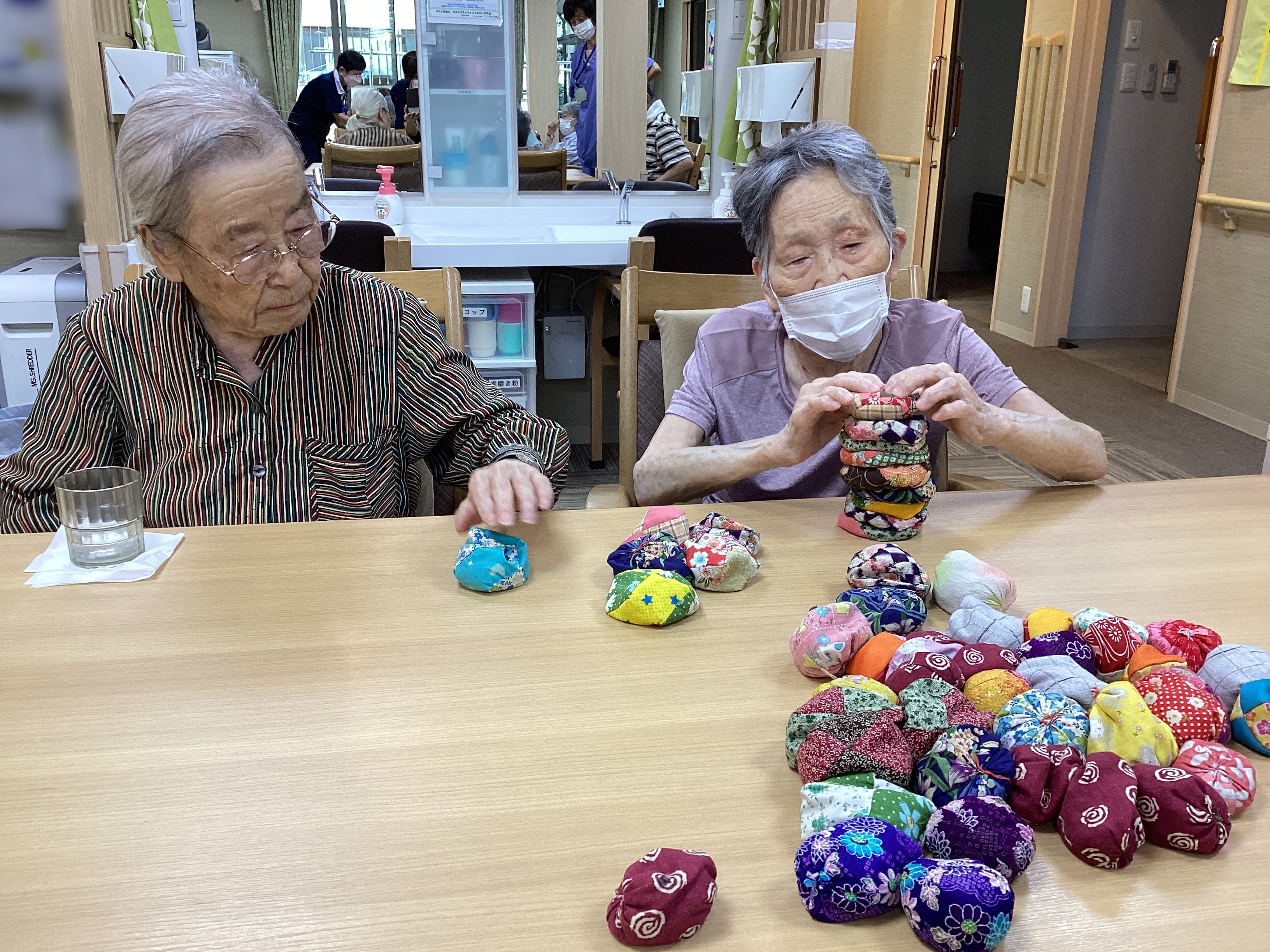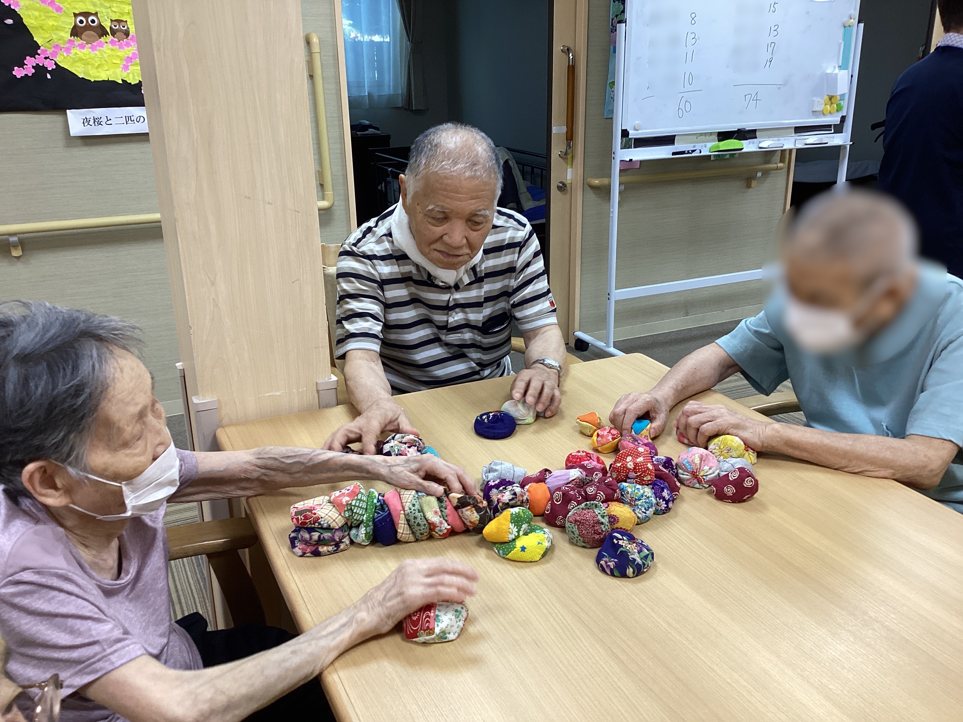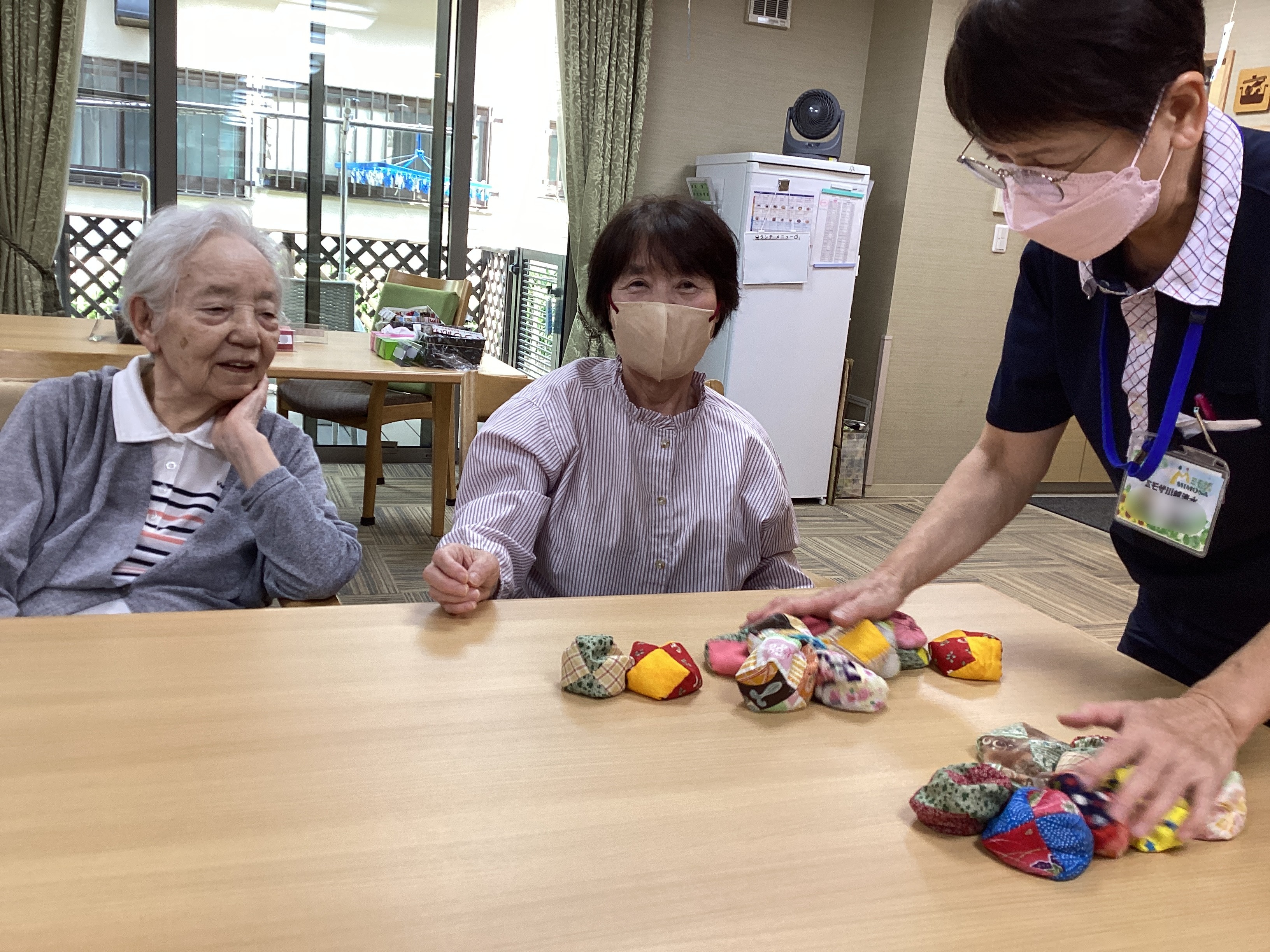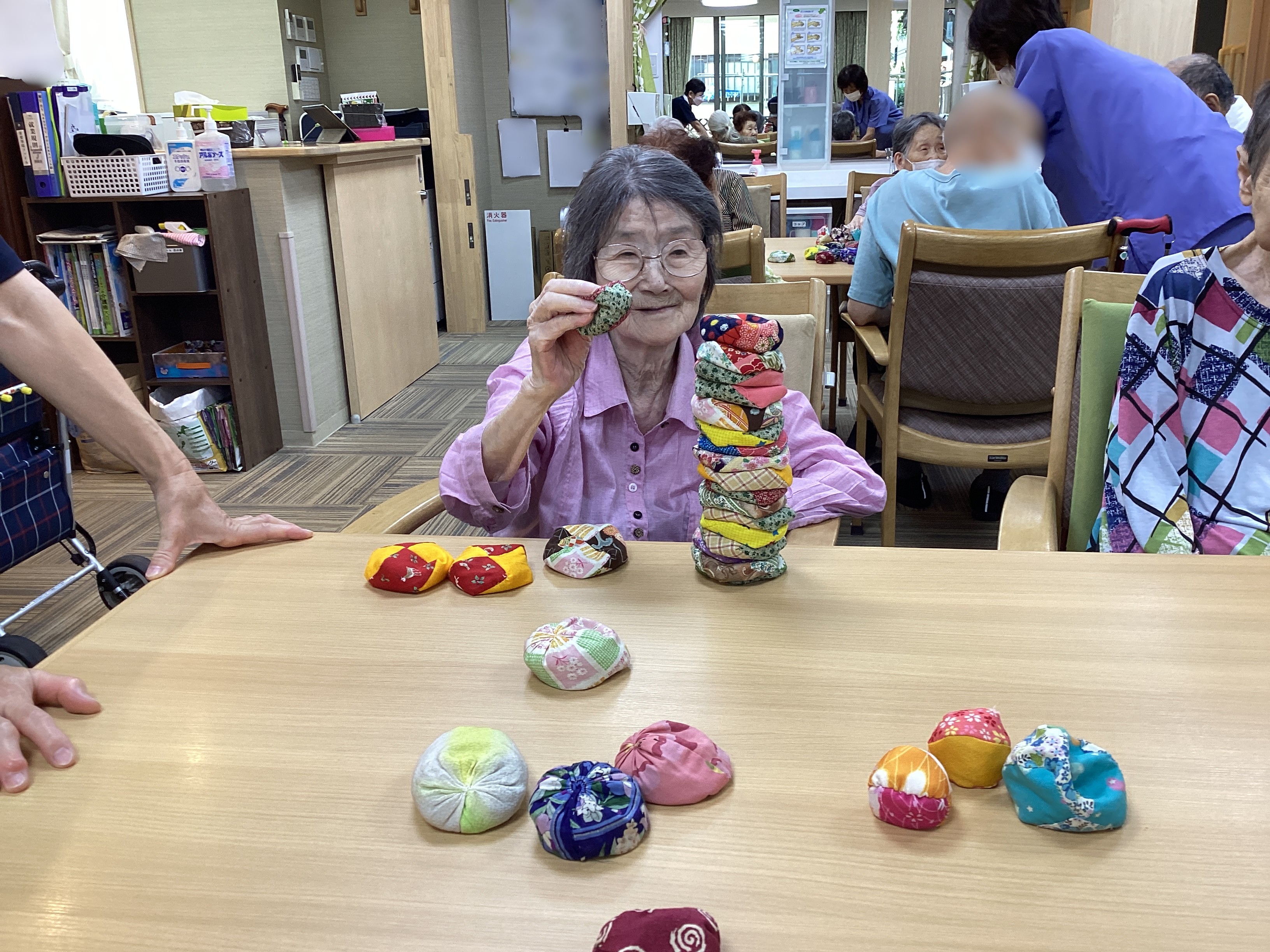 ルールはシンプル!誰が一番多くお手玉を高く積み上げられるかを競います⚡そっと置かないと崩れてしまうため皆さん真剣な表情で手元に集中🤨優勝者が決まったあとは🏆拍手と笑顔で締めくくり👏🏻手元の器用さや集中力も鍛えられる楽しい時間になりました🌻