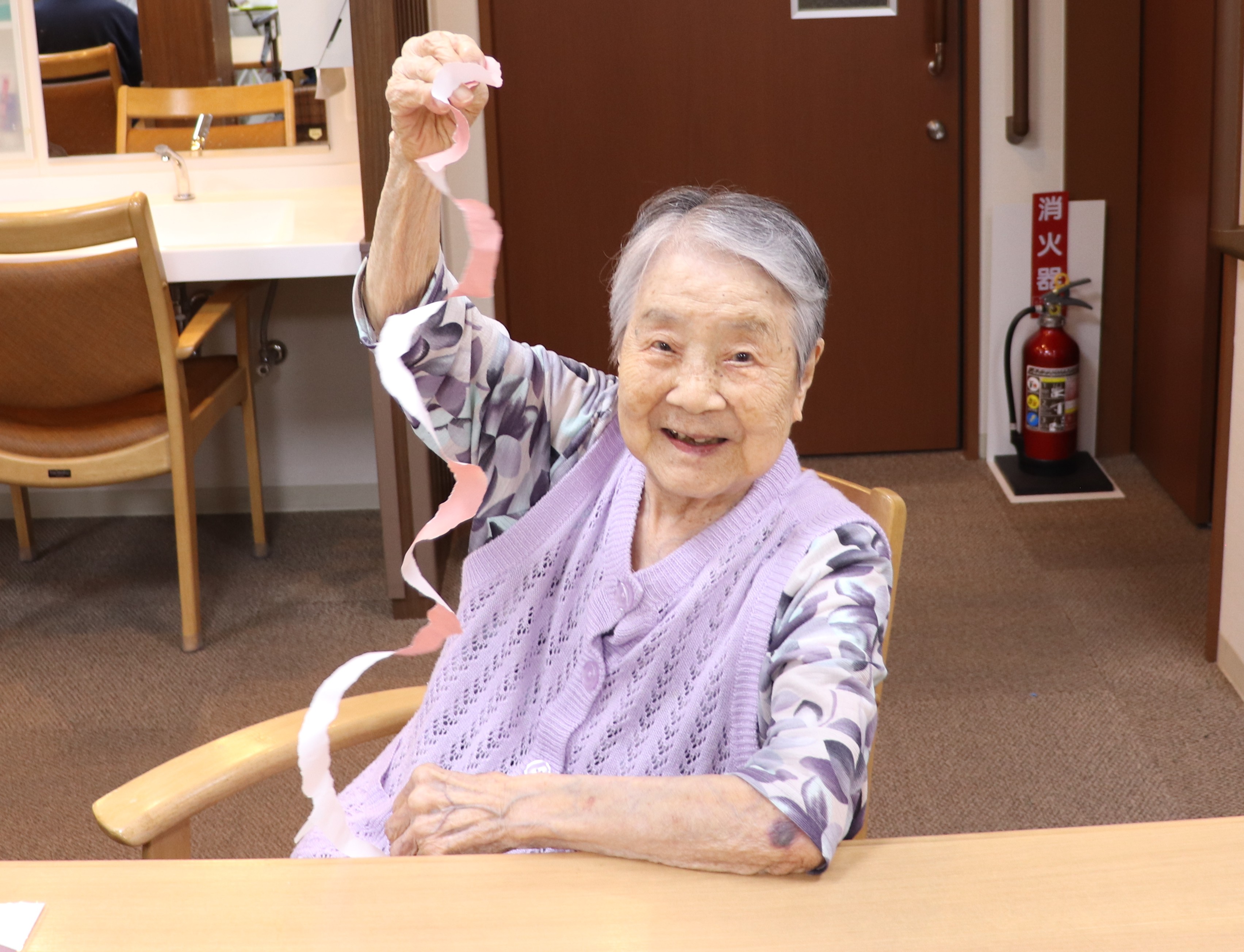 りんご🍎の皮むきって難しいですよね(#^.^#) 皆様で、どれくらい切れずにリンゴ🍎の皮がむけるかを競い合いました(≧▽≦)