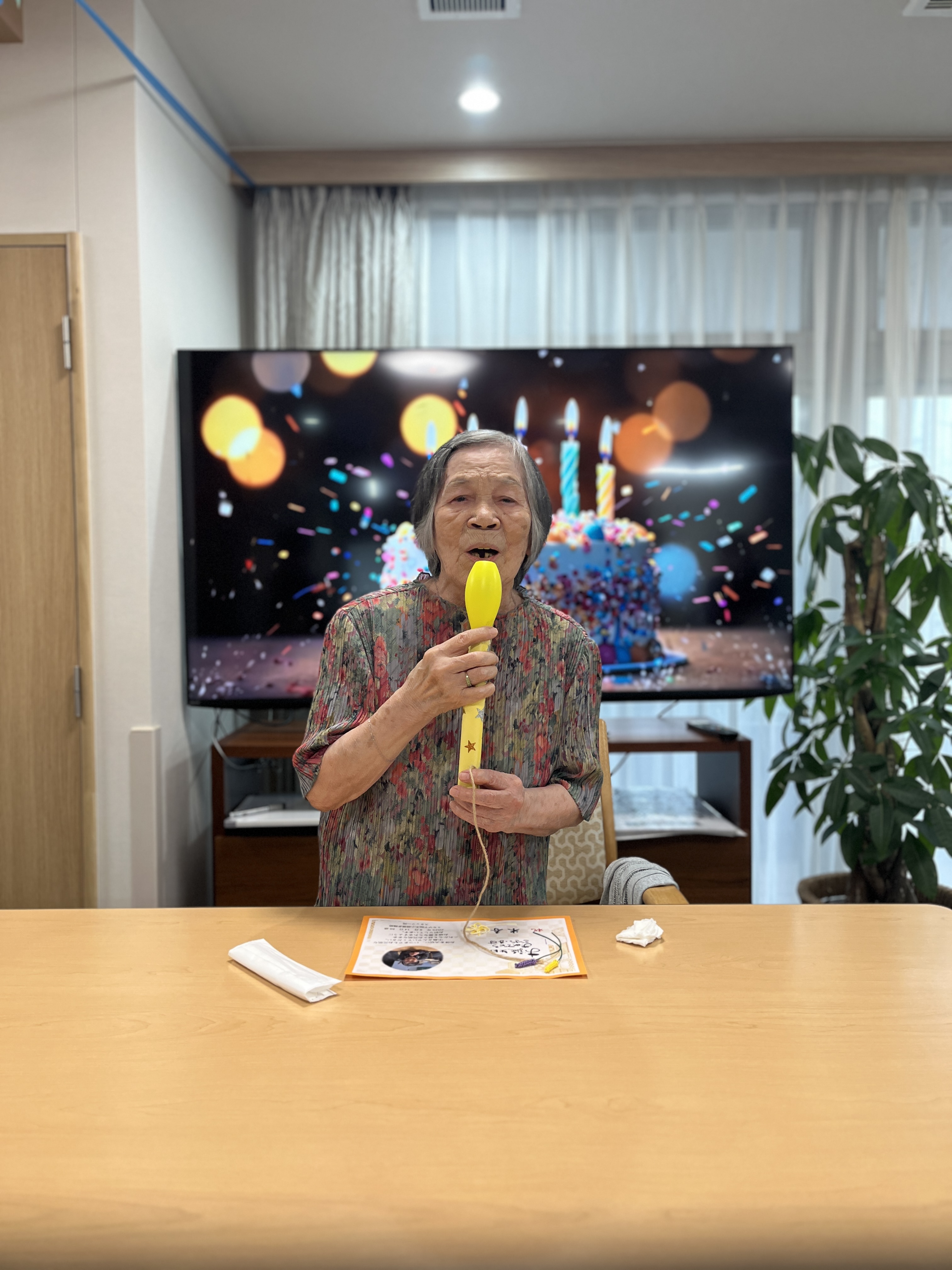 今日はお誕生日会を行いました。米寿のお祝いです!以前歌のレッスンを受けてらして、発表会には舞台に立ち歌っていたとのこと。今日はご自身の十八番を披露してくださり、それは大盛り上がり!さすがお上手でした!これからも元気で楽しく通ってきてくださいね♡