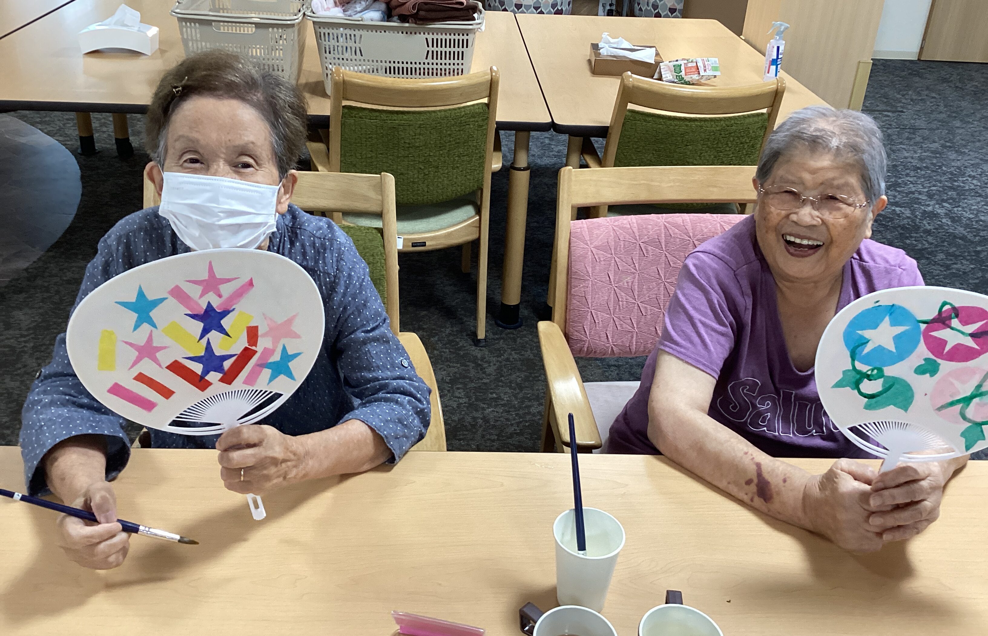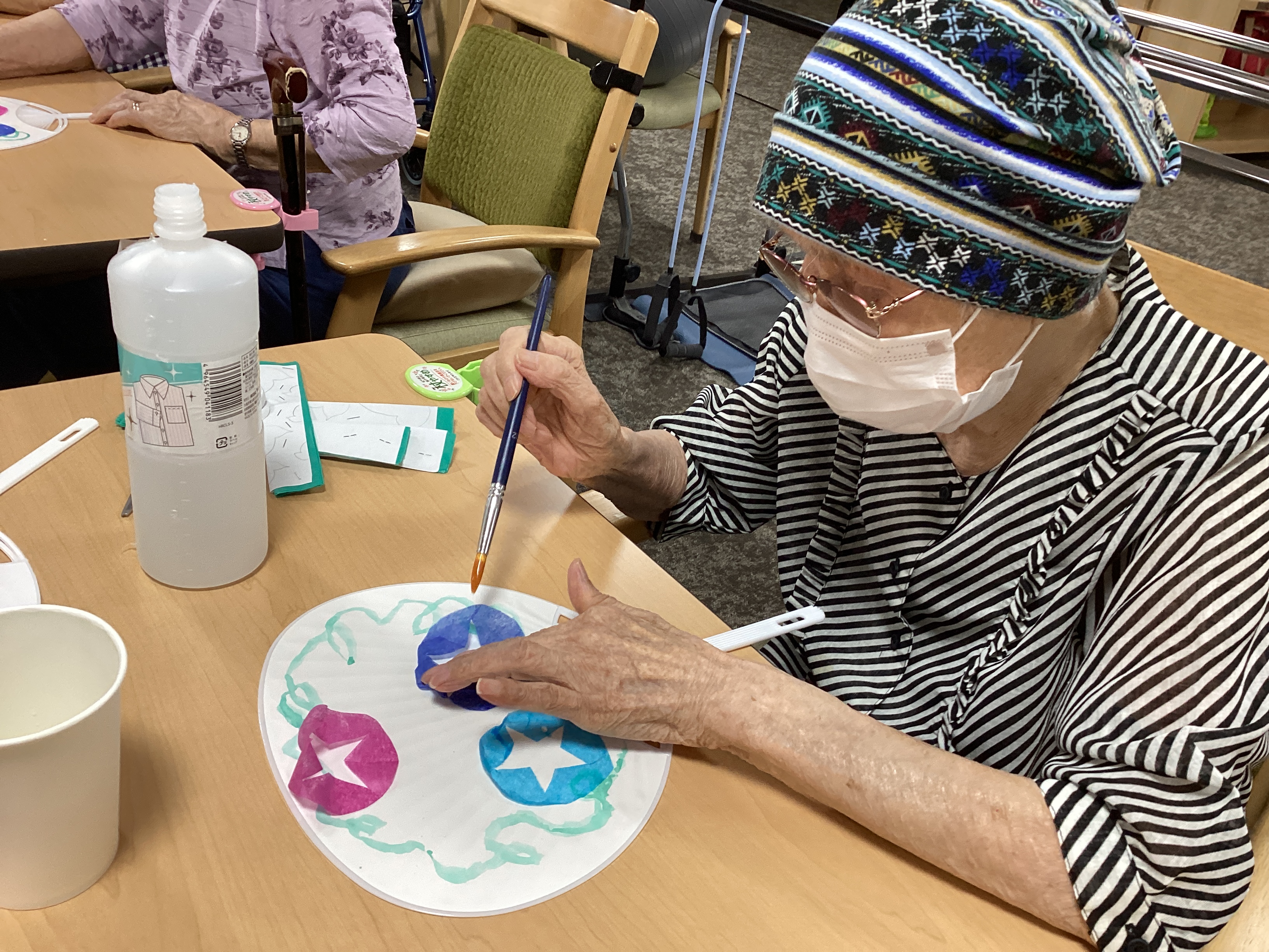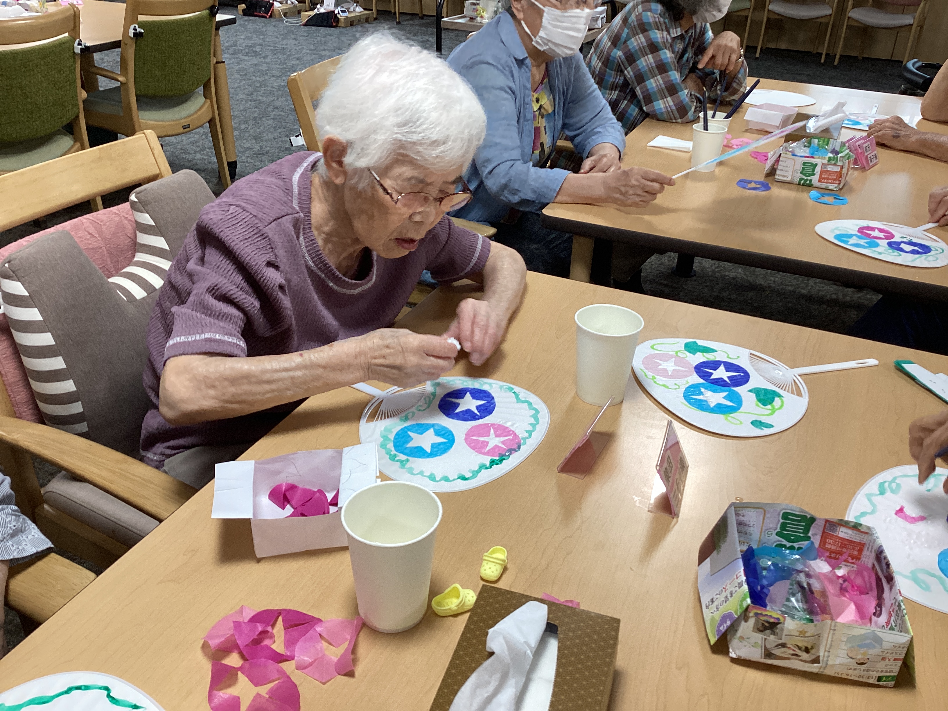 細筆で、繊細な濃淡を表現します。。。🖌️🎨 単色ですが、それだけで個人個人の表現豊かなオリジナルうちわの出来上がりです☺️ 花のバランス、蔓の躍動、思い思いに涼を感じる作品に皆さん仕上がりました!🎆