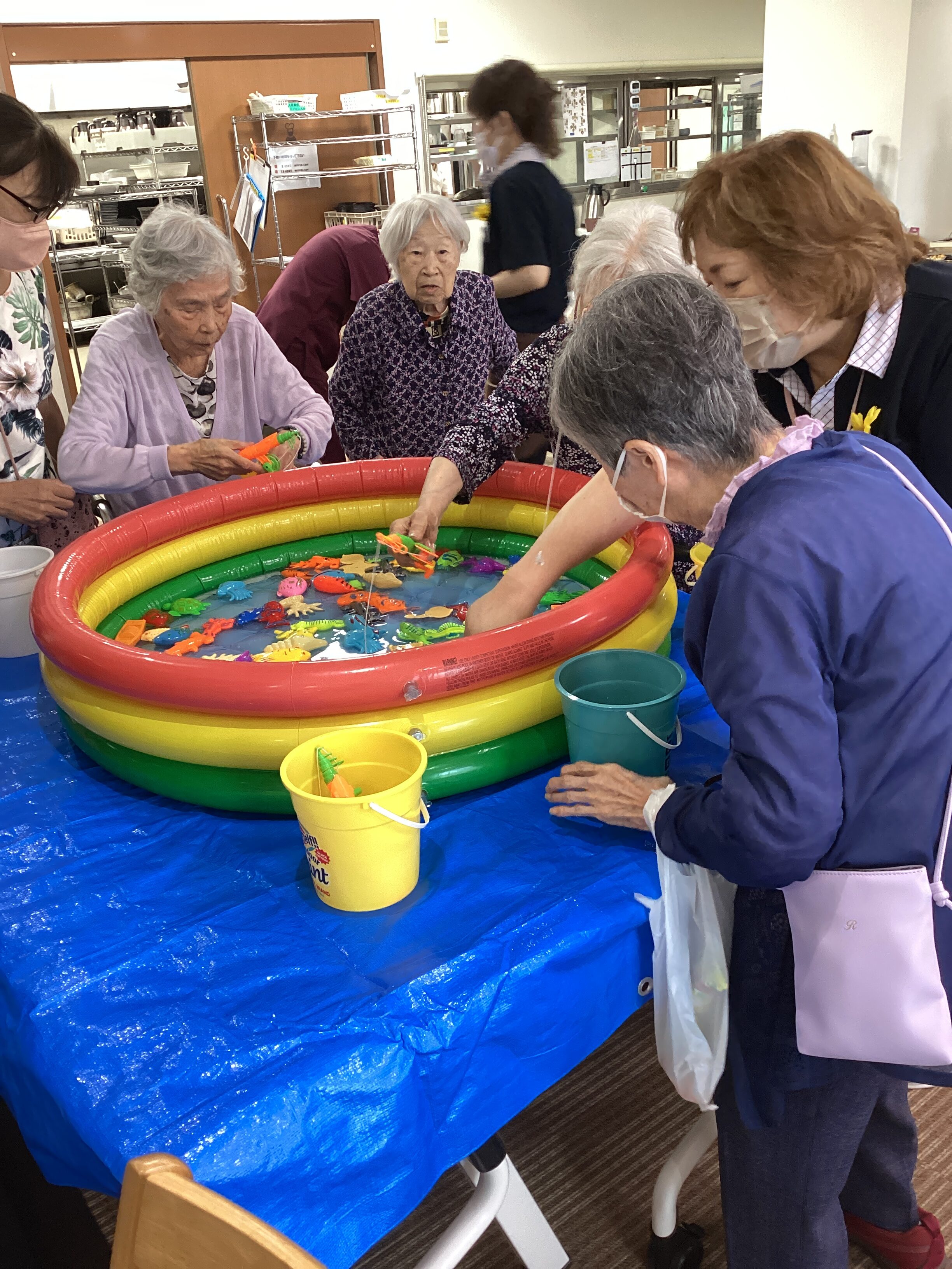 投稿が遅れてしまいましたが、先月末に夏祭りを開催いたしました!〈br〉定番のヨーヨー釣りや射的のみならず、お菓子のつかみ取り、魚釣りを出店。お昼ご飯の後の開始で、ご入居者の皆様に楽しんでいただけました✨スタッフも楽しかったです!