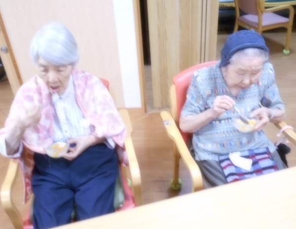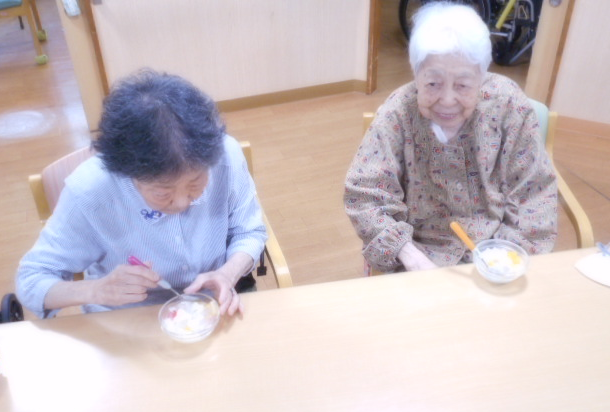 夏のおやつレクは、牛乳フルーツ寒天ゼリーを作りました。夏の涼しいゼリーでお腹も満たされ楽しい時間を過ごしました💕