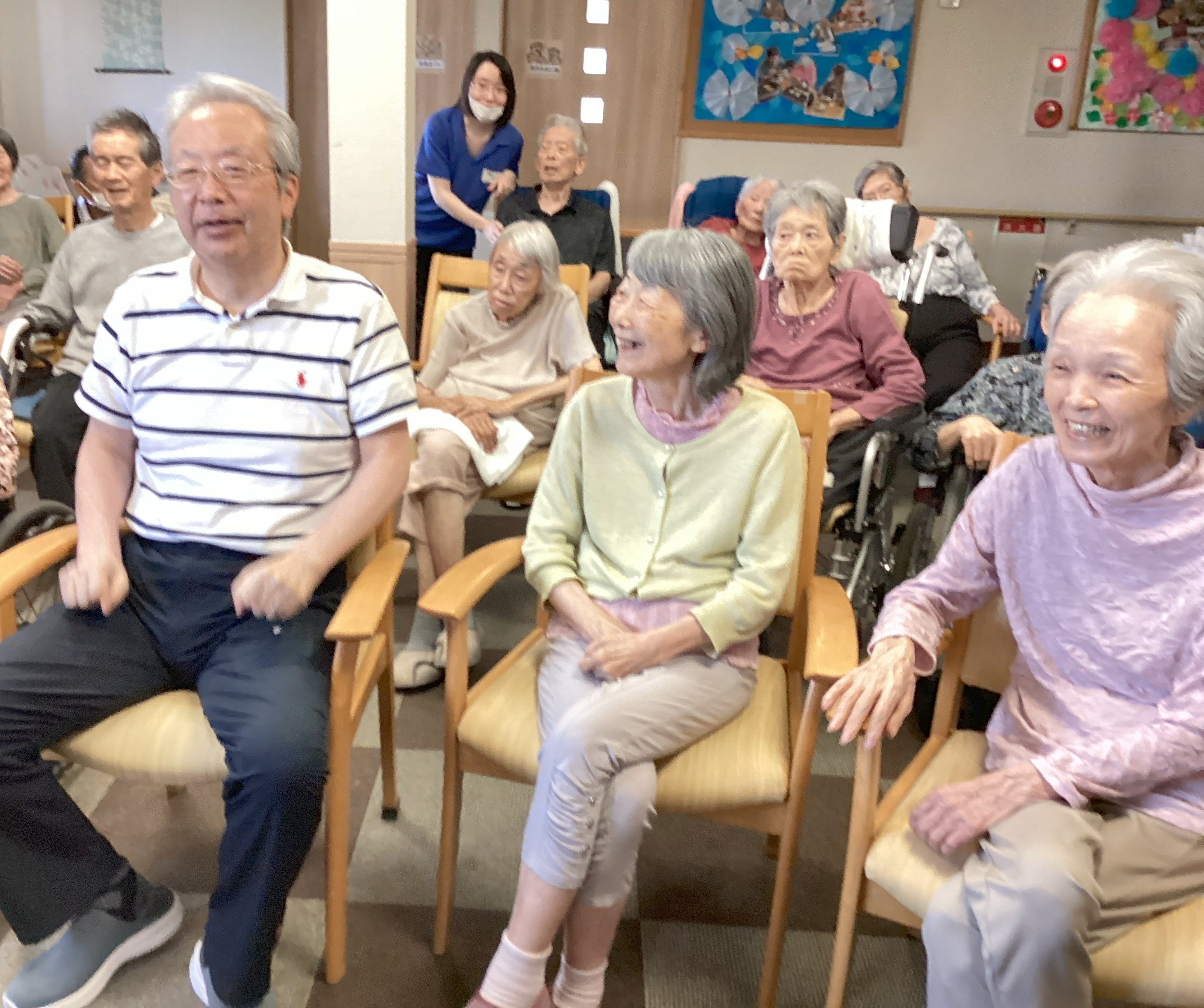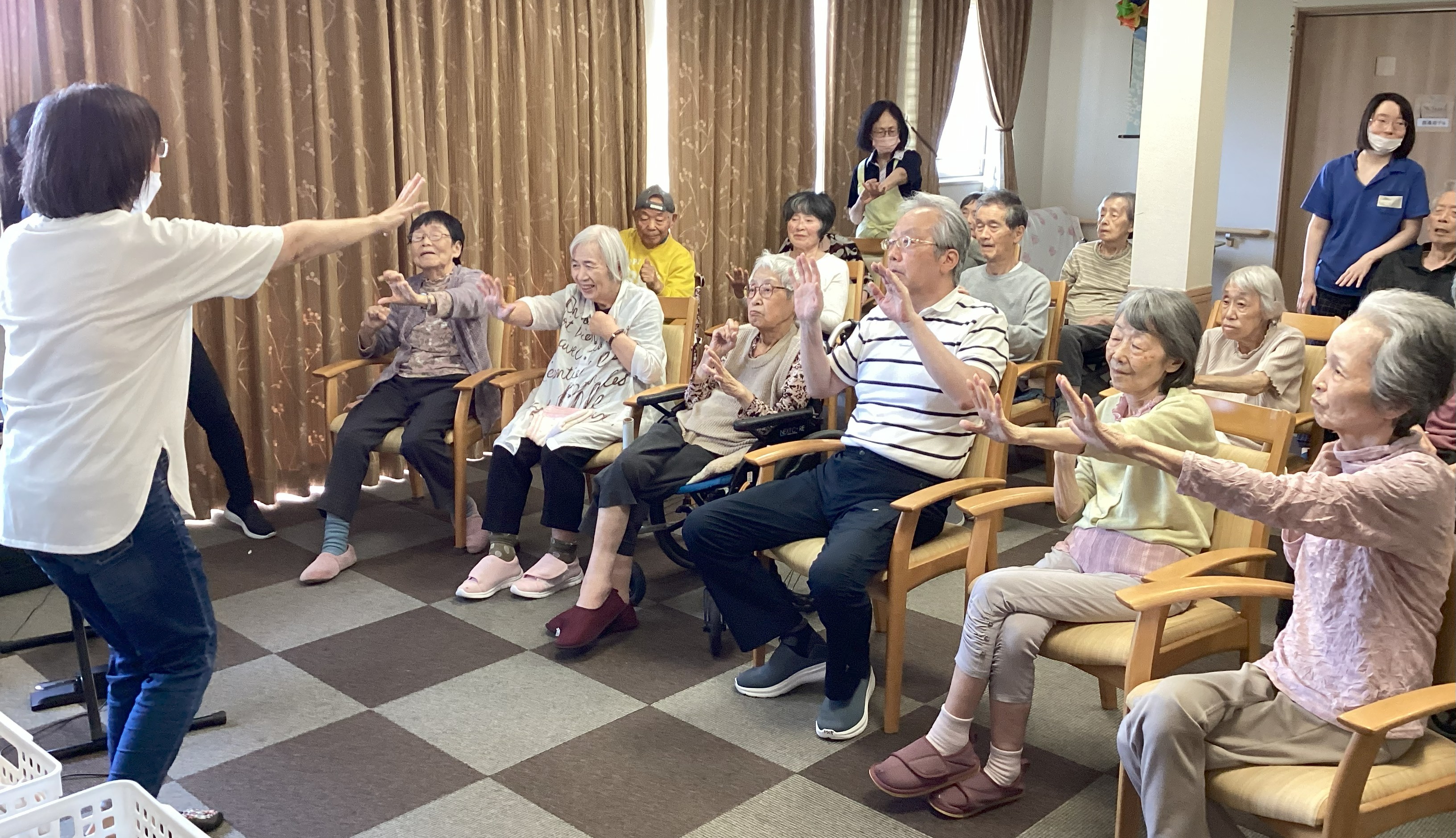 今月も音楽療法会開催されました!今月は「山」をテーマに様々な曲を歌ったりそれにまつわる話題で盛り上がりました!皆さん、歌を歌いながら体を動かしたり楽器を演奏したり、なかなか上手です!素敵な音楽療法会でした!また来月も楽しみです!