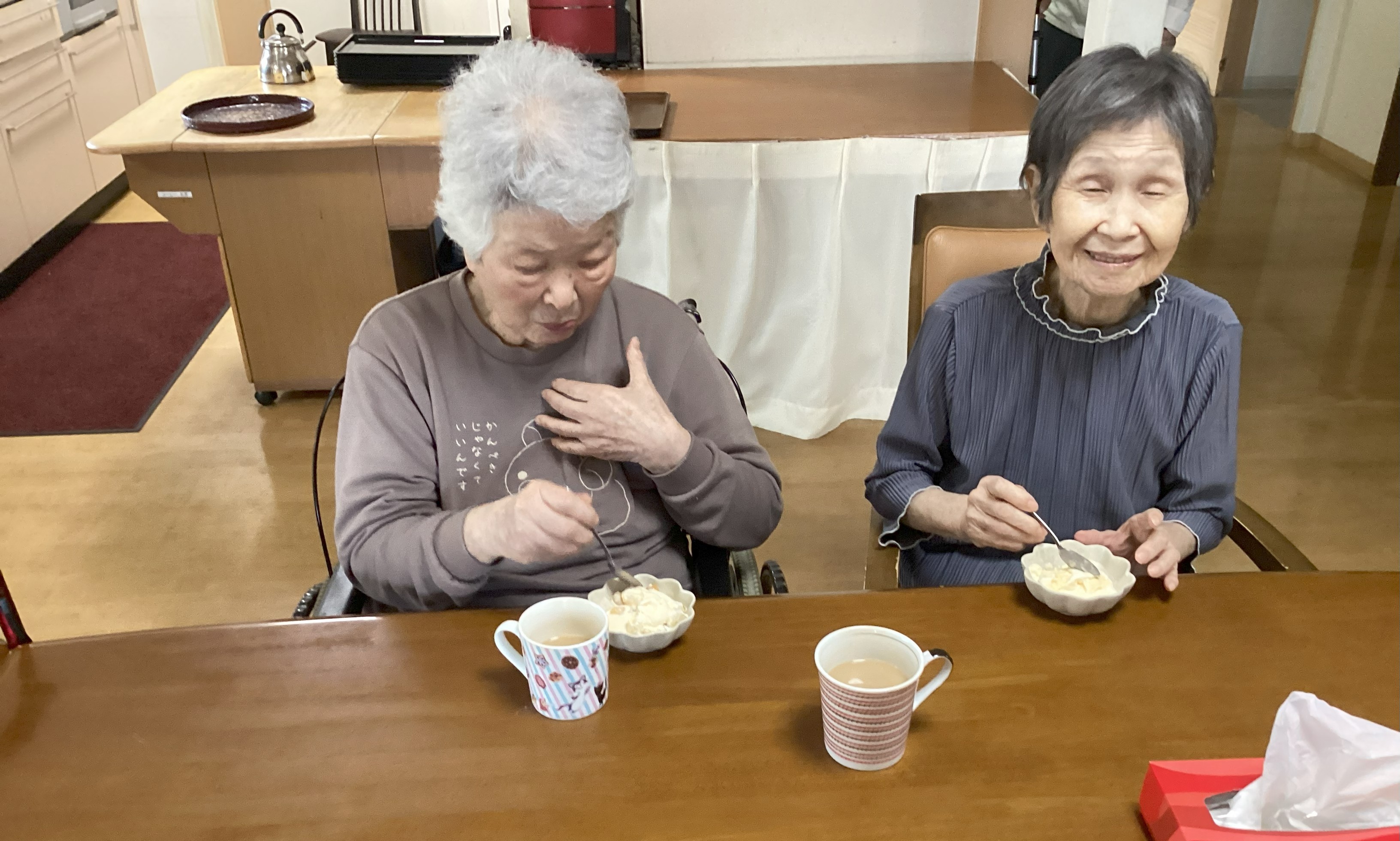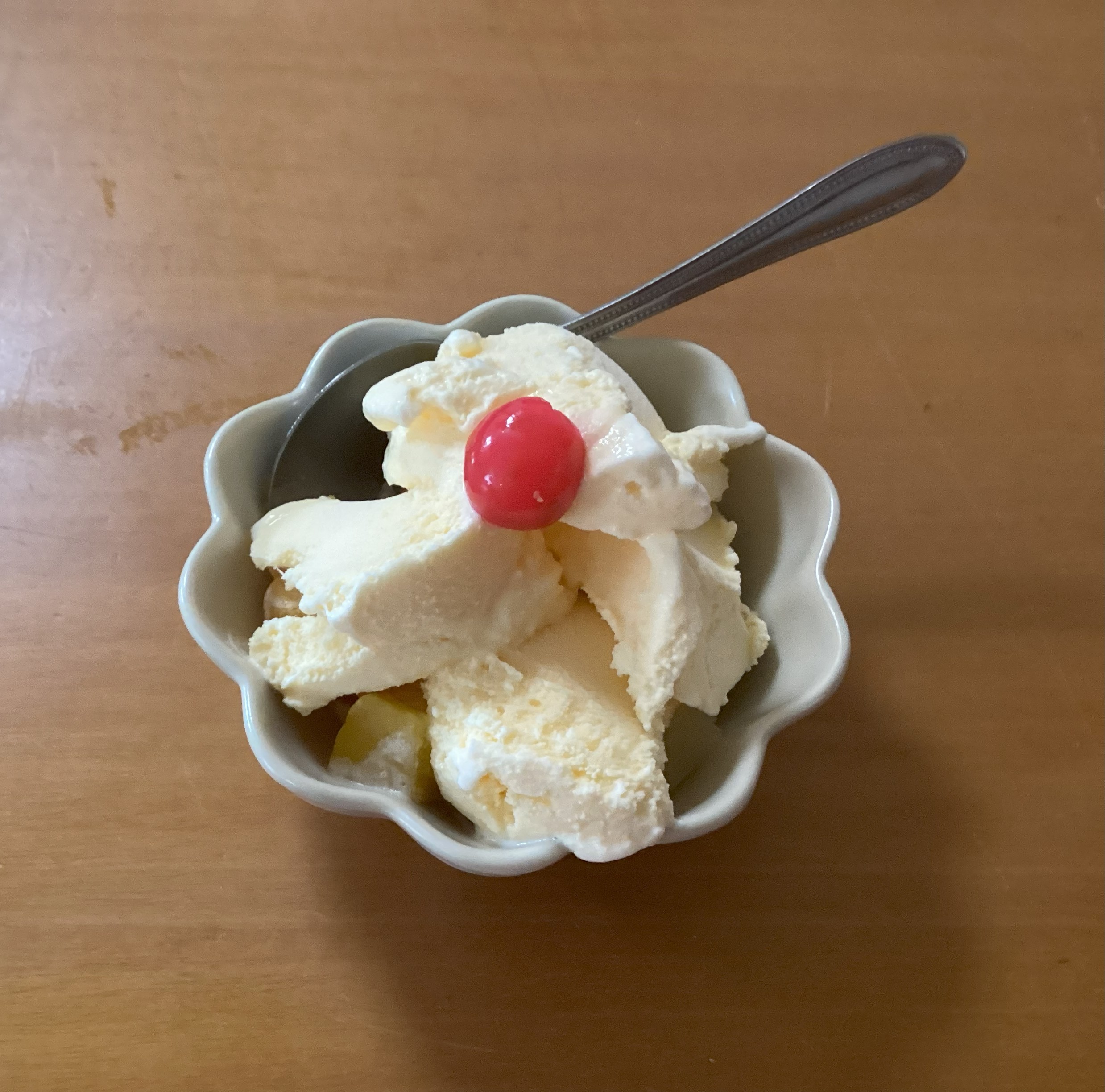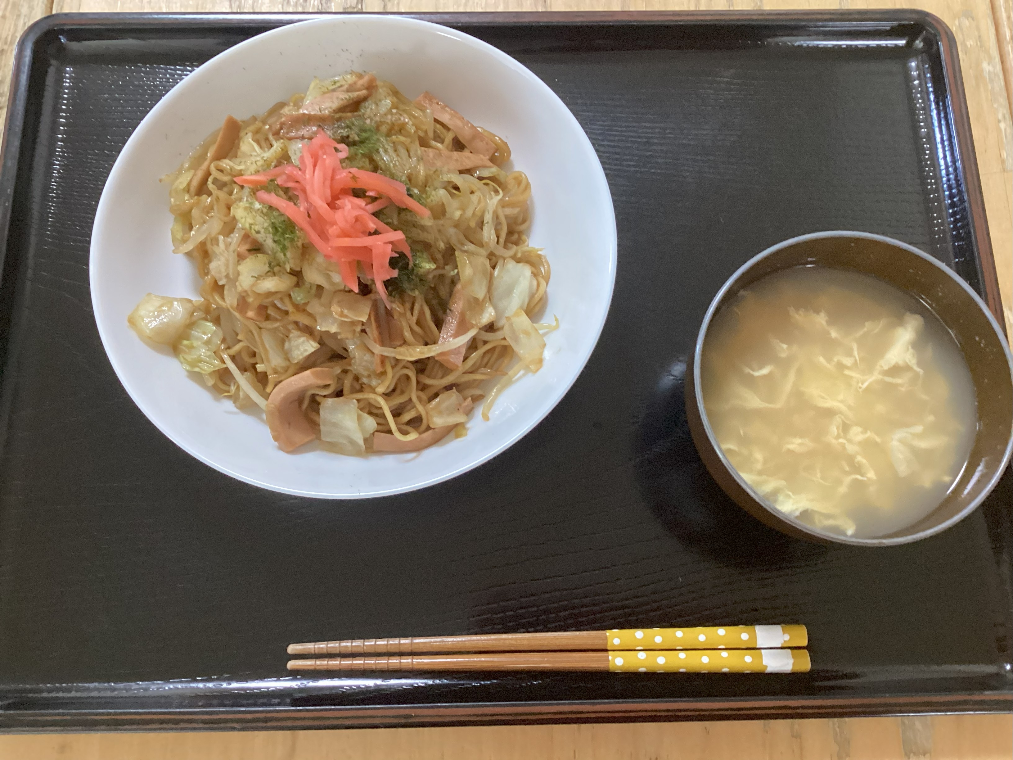 お昼に夏祭りの音楽を聴きながら焼きそばと、デザートにアイスを召し上がりました。