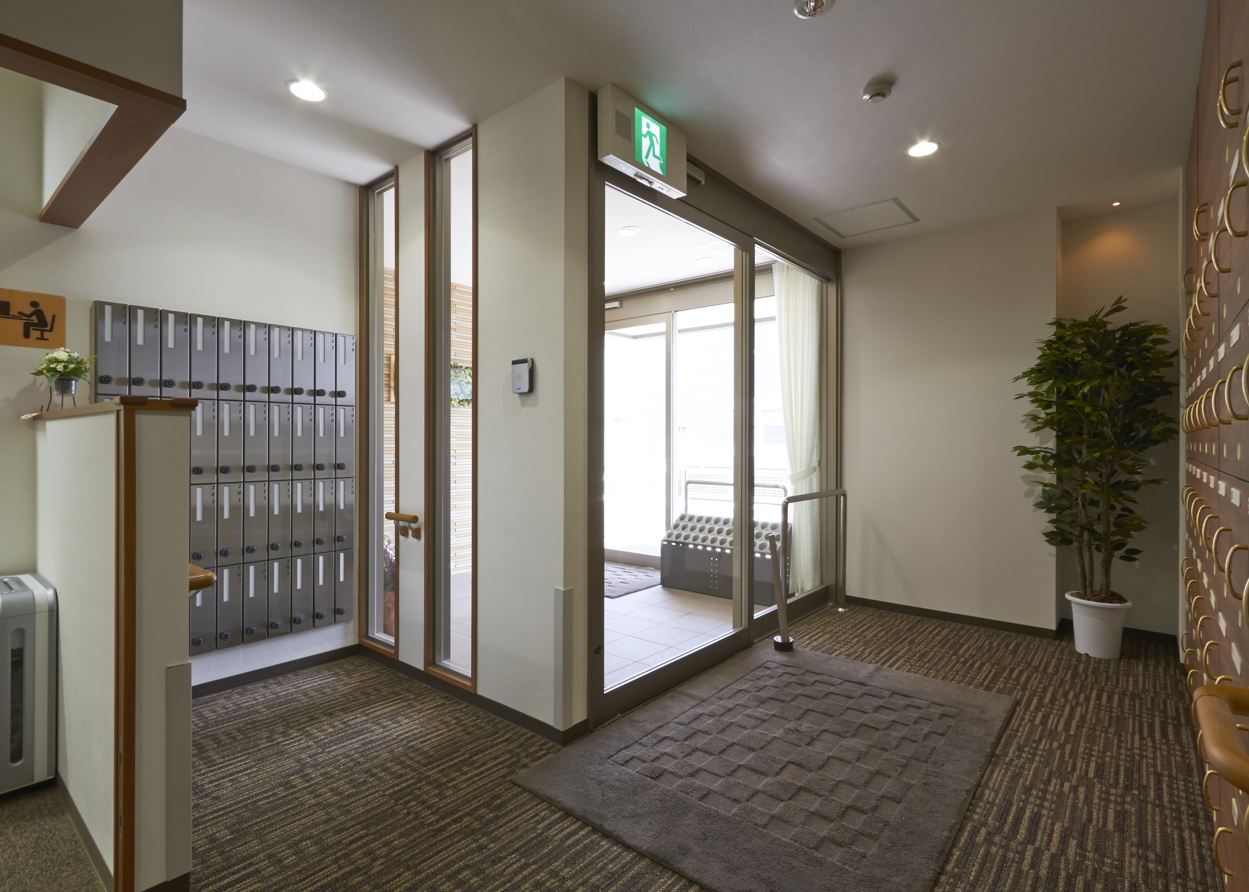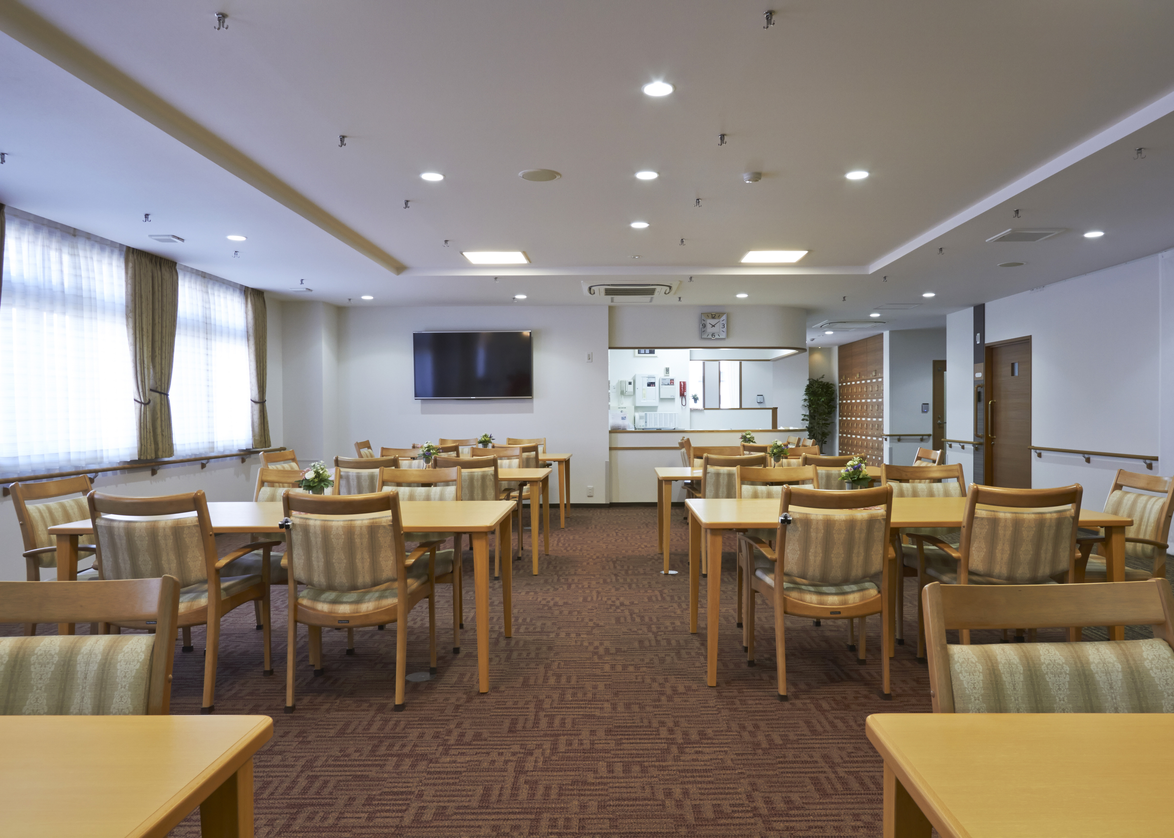 事務室・リビングルーム・談話室・一般浴室・機械浴室・脱衣室・キッチン・洗濯室・共有トイレ・エレベーター・駐車場