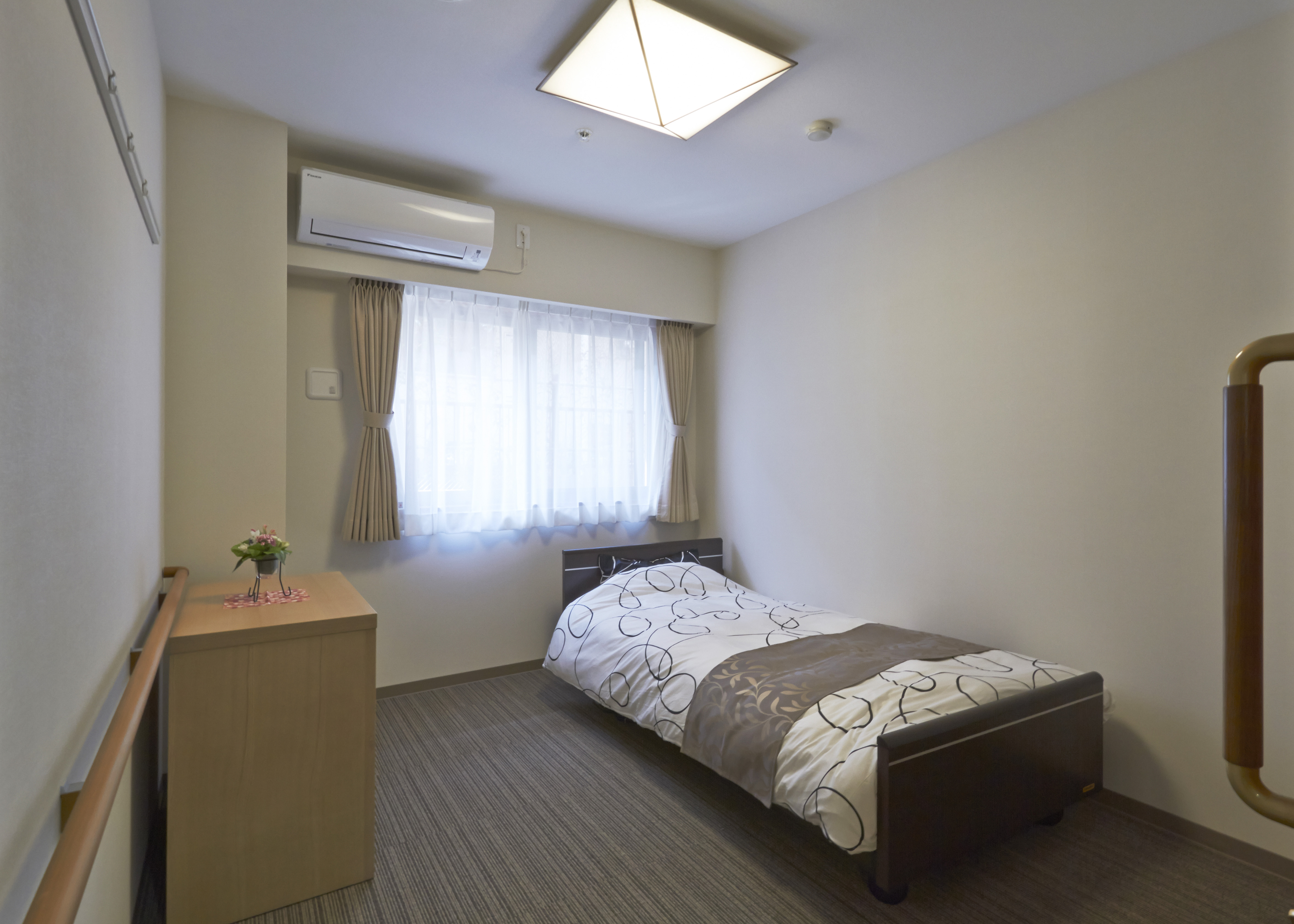 IHキッチン・トイレ・収納・浴室・エアコン・スタッフコール・介護ベッド(3モーター)・防炎カーテン・冷蔵庫・洗濯機・チェスト